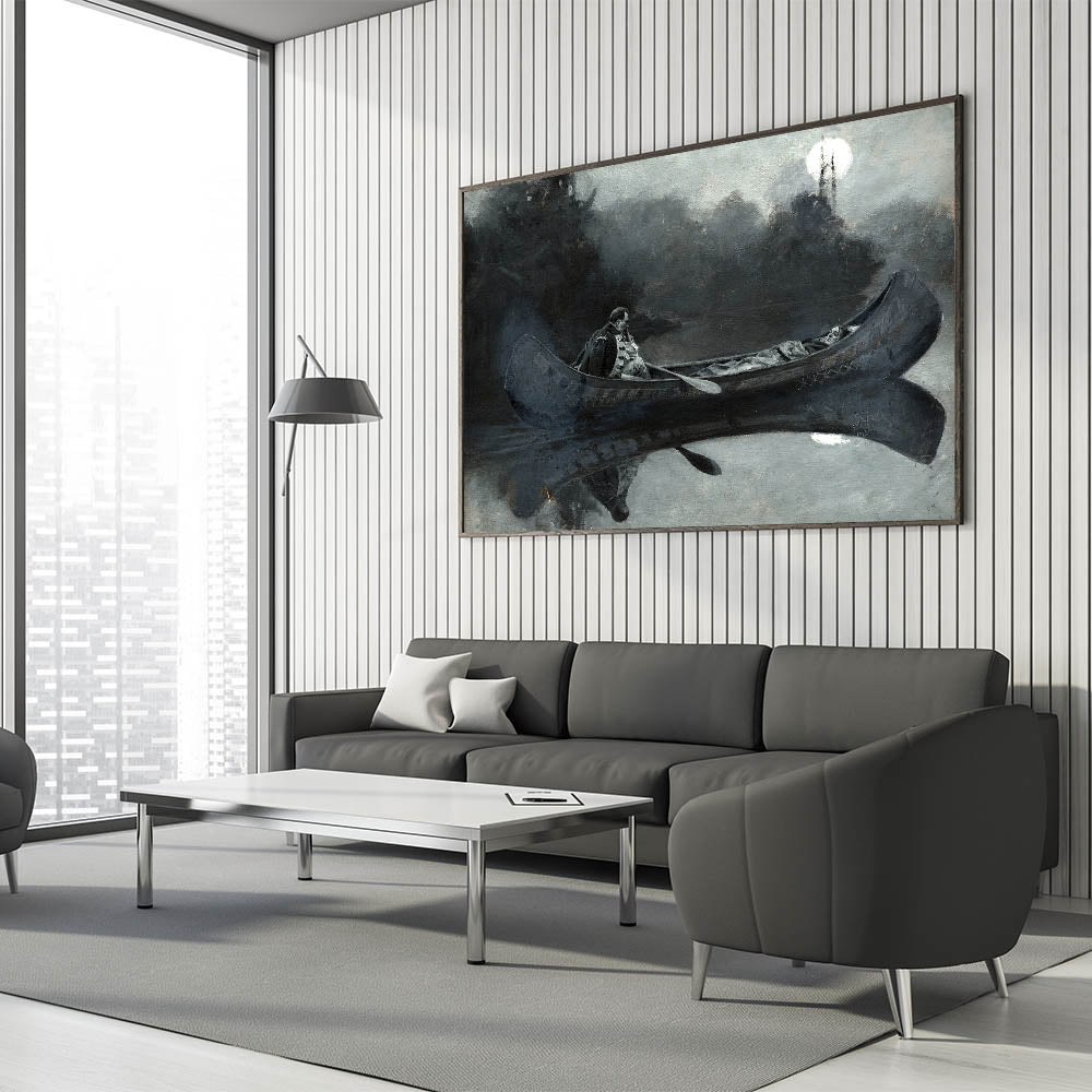 Dark Moody Wall Art - Moonlit River Journey - Moody Interior Art