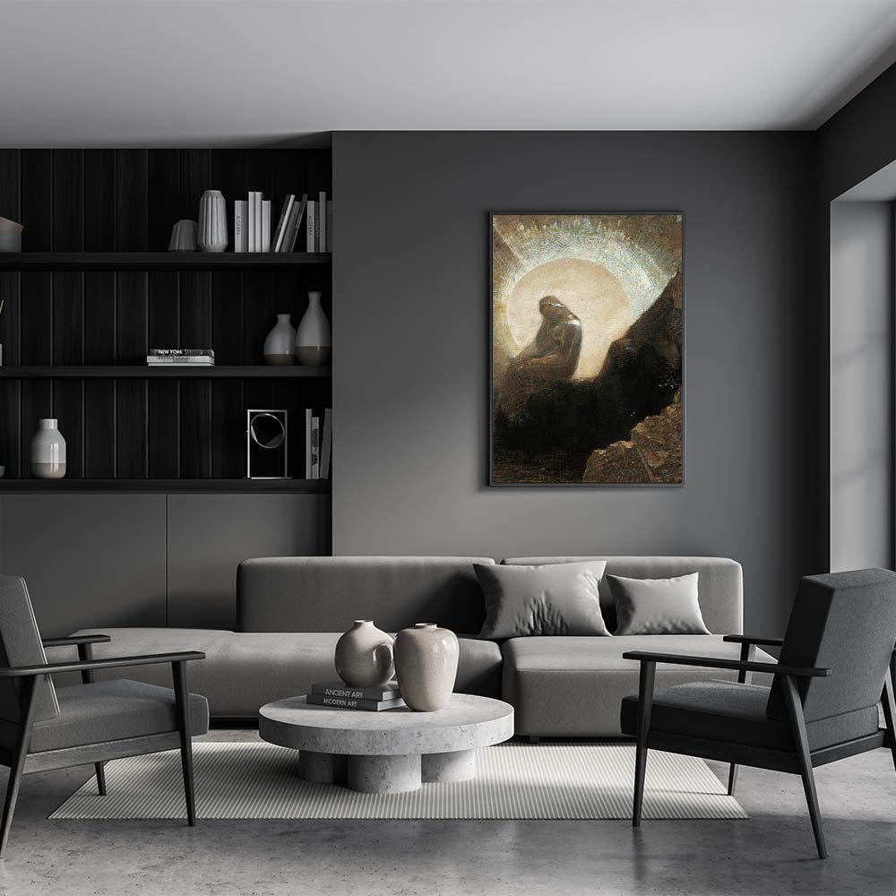 Embrace the enigmatic beauty of light and shadow with this Dark Moody Wall Art, featuring a mystical silhouette set against a glowing, ethereal backdrop. The intricate play of soft light encircling the figure highlights the mysterious and spiritual essence of the scene, making it an ideal choice for those who appreciate dark art decor that carries an aura of depth and symbolism. This piece invites viewers into a realm of contemplation and wonder, perfect for creating a focal point in any space.