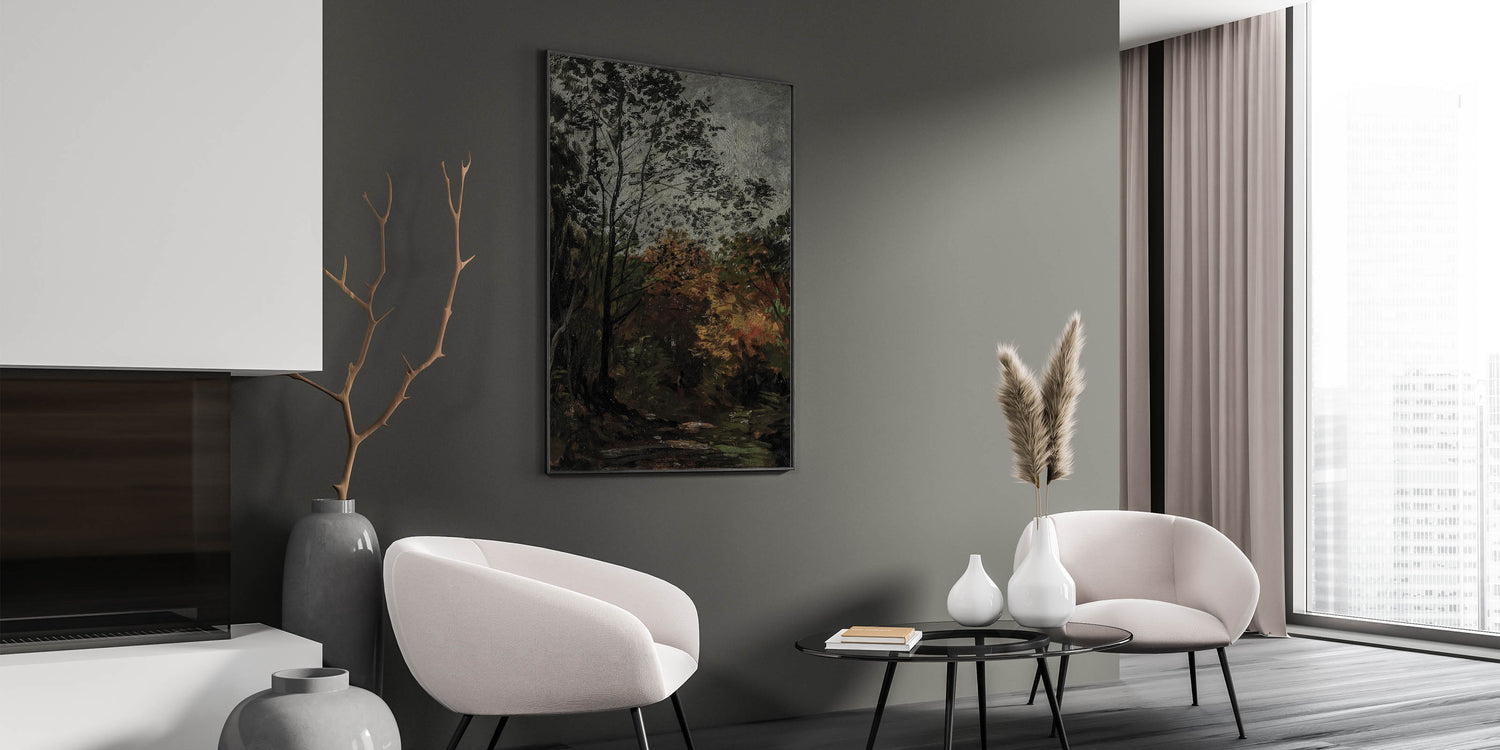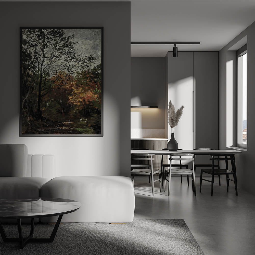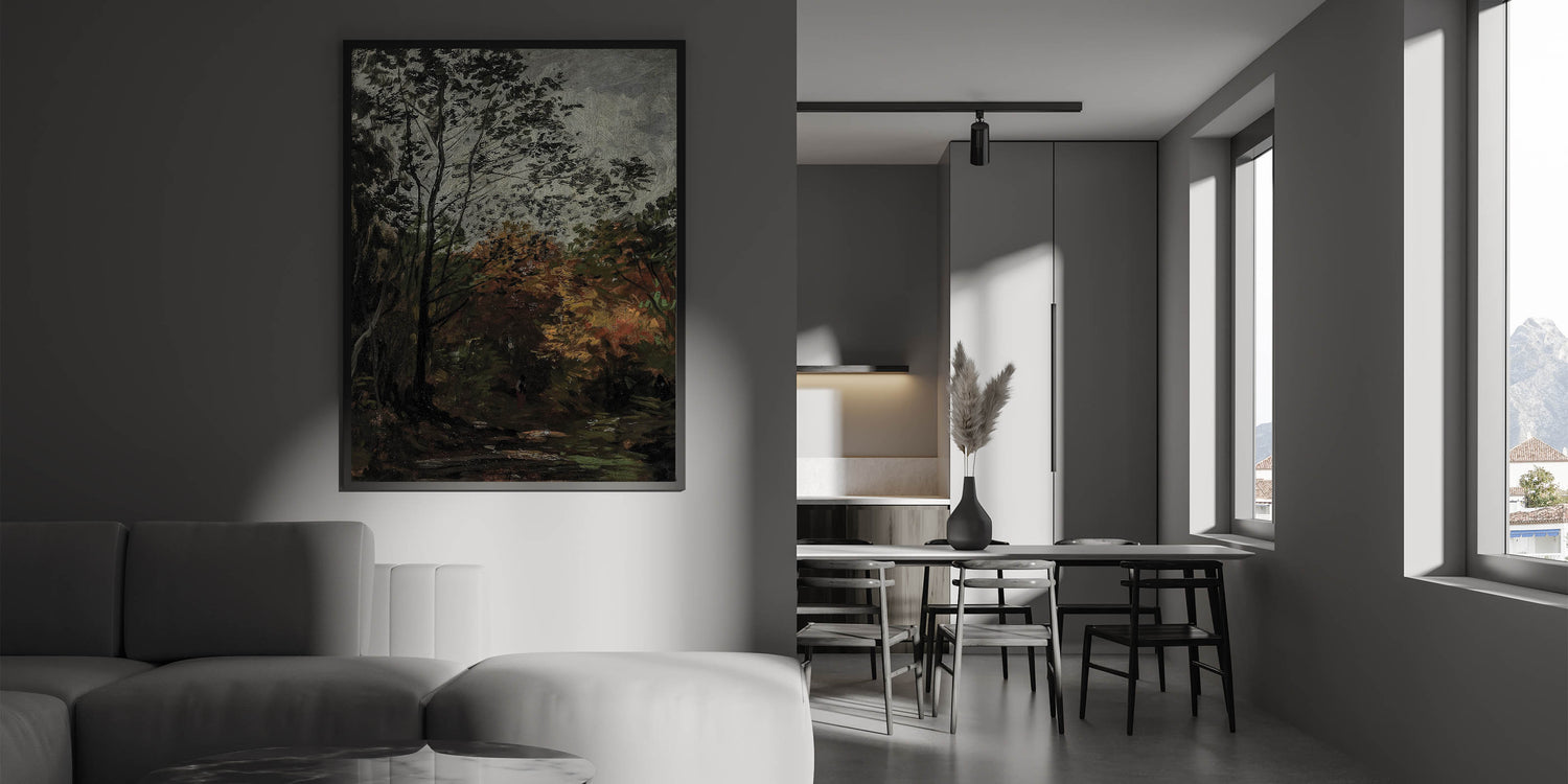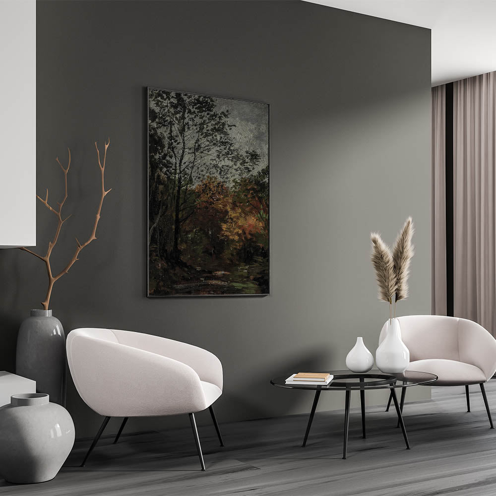Dark Moody Wall Art - Serene Forest Landscape for Dramatic Interiors