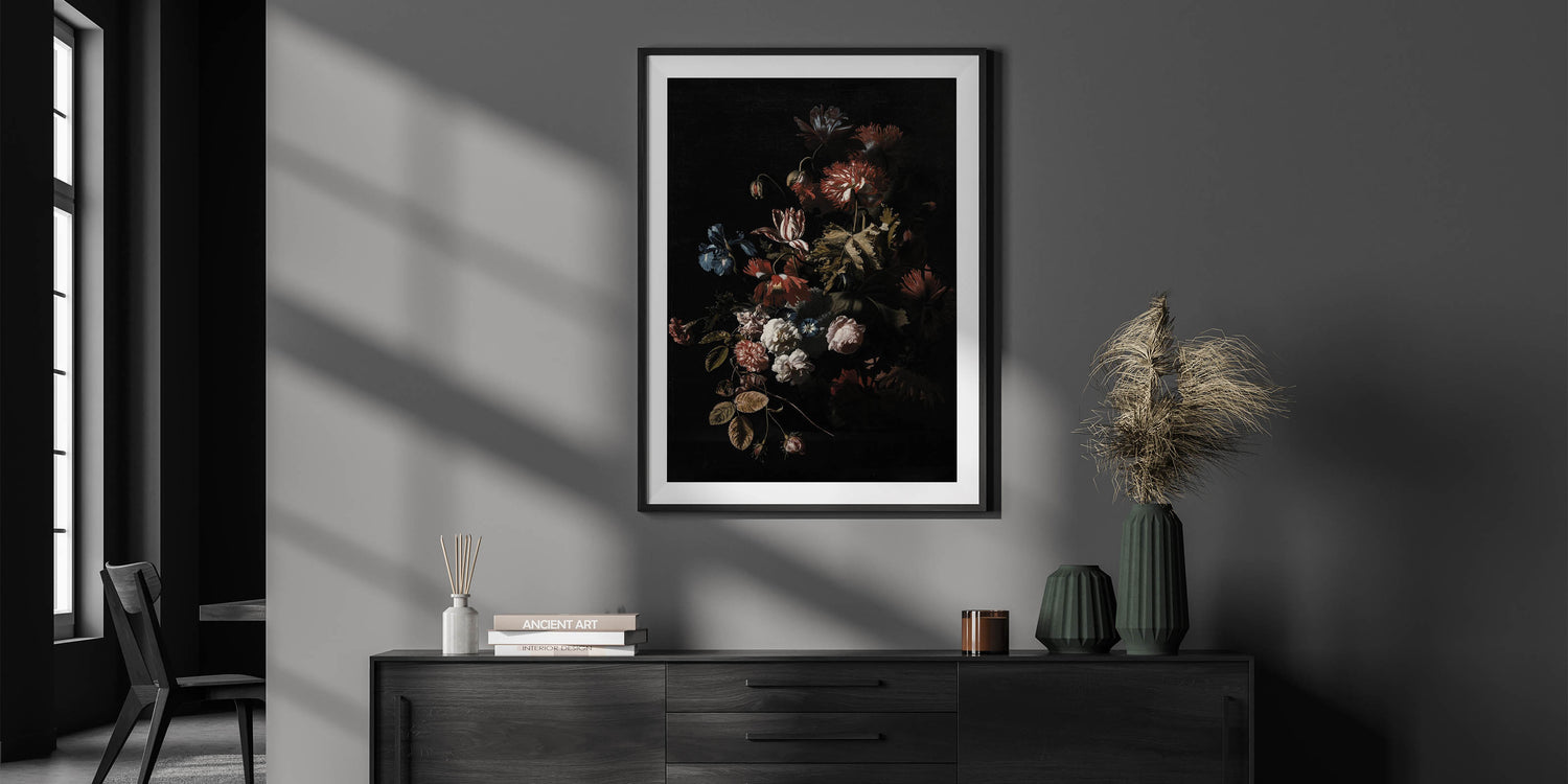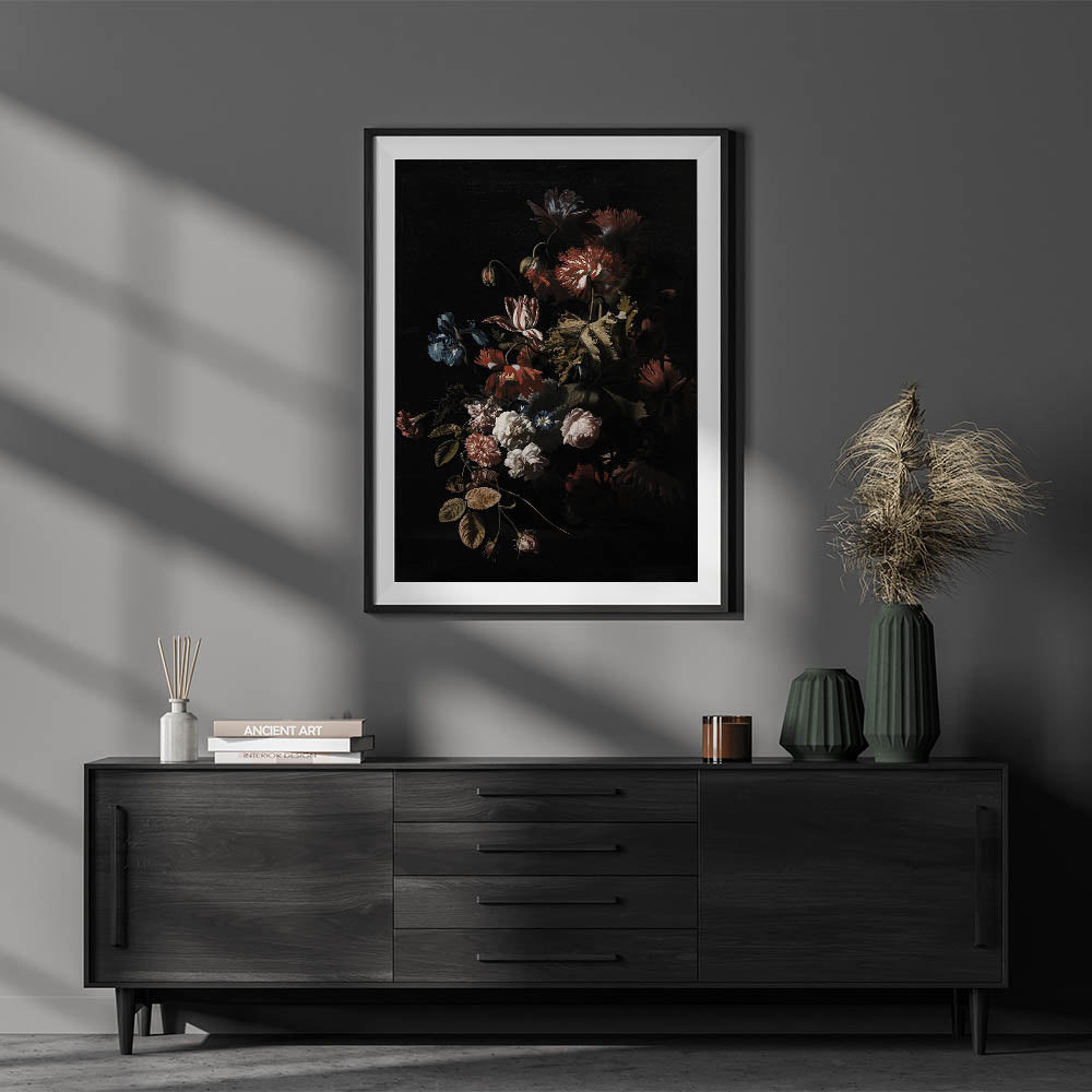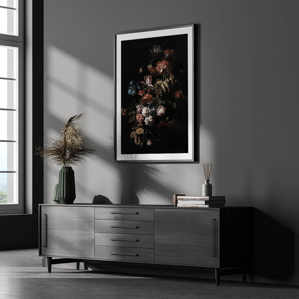 Dramatic Dark Floral Art: Moody Bouquet Wall Print for Interior Decor