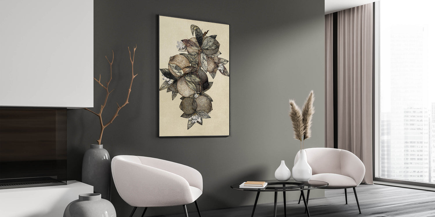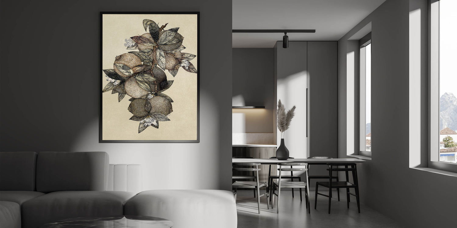This artistic grunge print merges the freshness of citrus with an urban, edgy vibe, making it a must-have for anyone looking to elevate their space with grunge wall decor for modern homes. It adds character and depth, transforming any wall into an artistic statement.