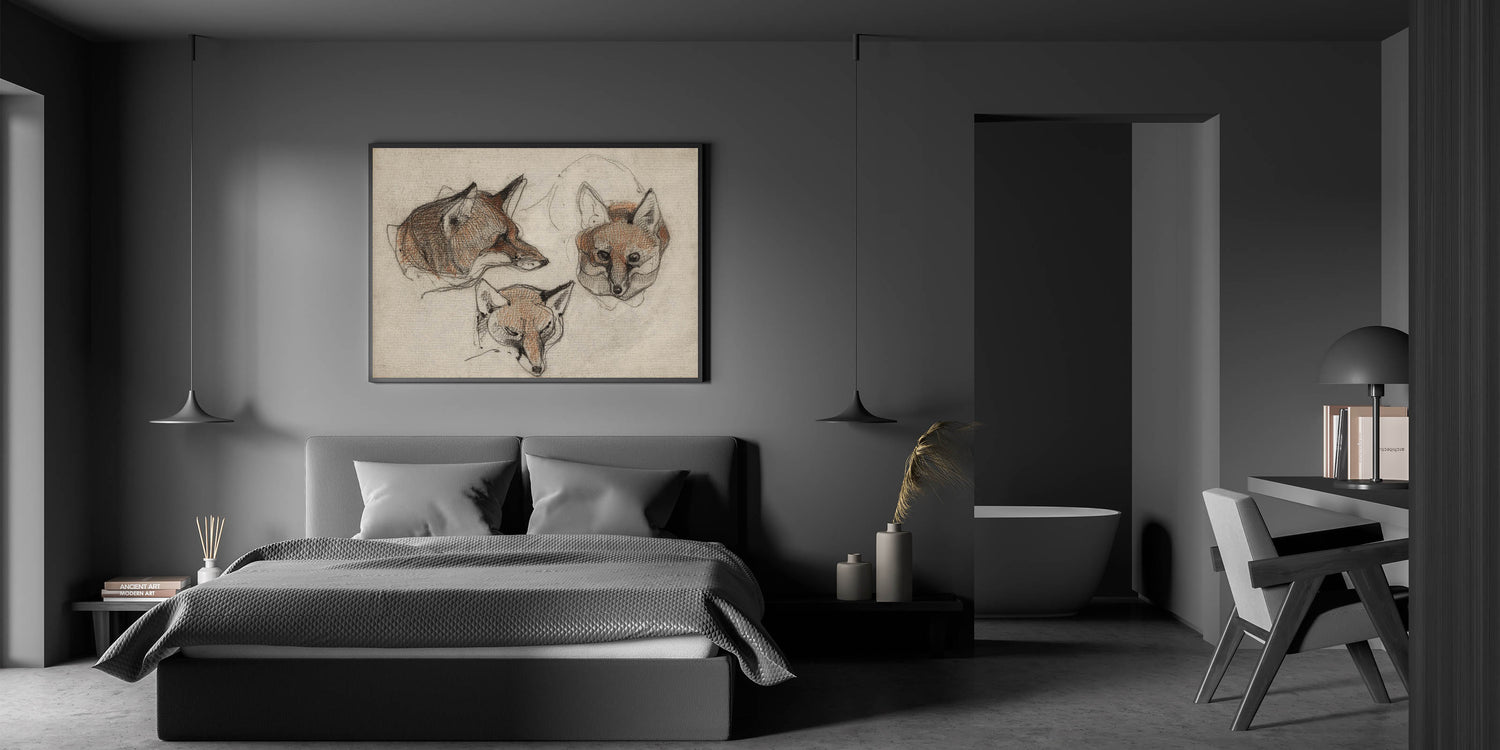 With its dark, moody tones and minimalist design, this fox sketch wall art is perfect for adding a touch of vintage grunge aesthetic to your home. The abstract sketches are ideal for nature lovers with an appreciation for edgy and modern decor.