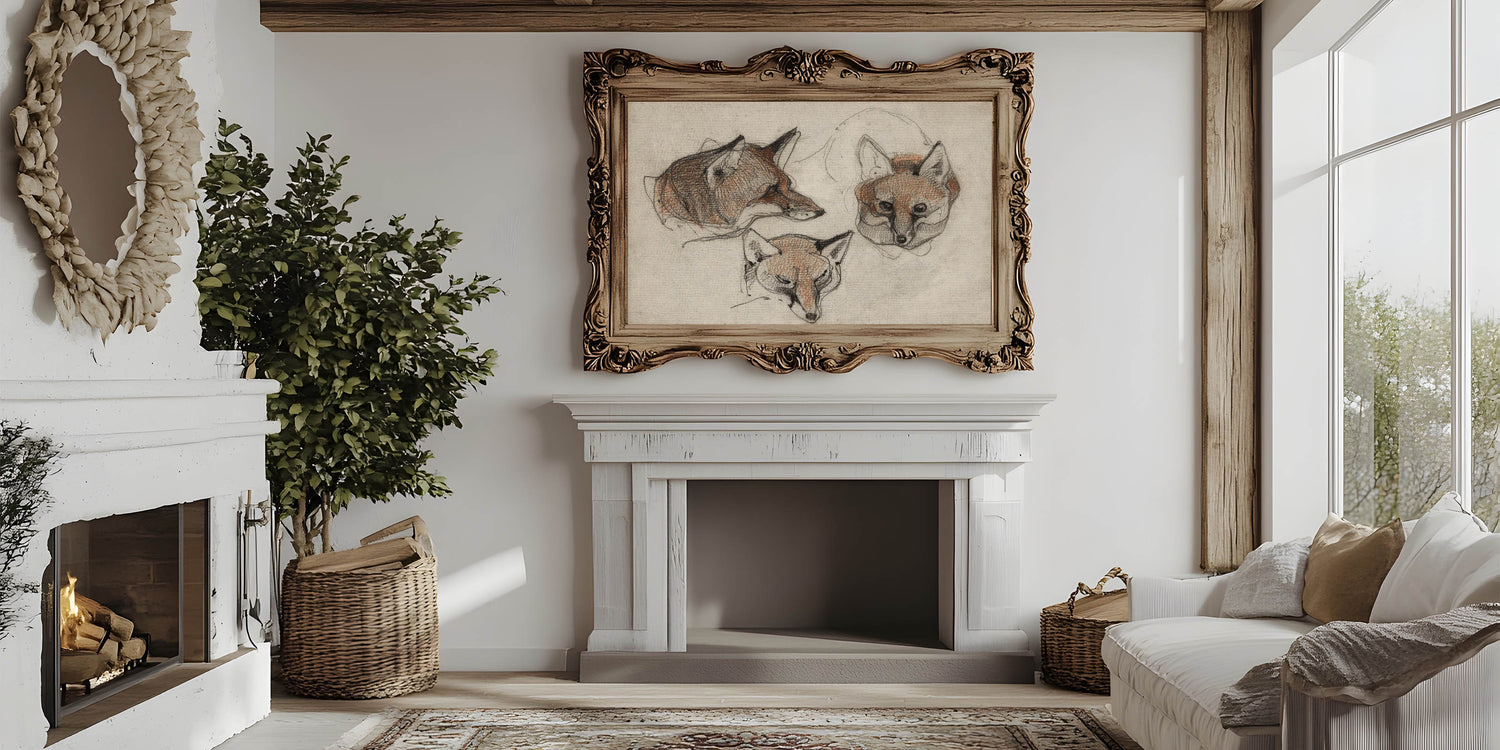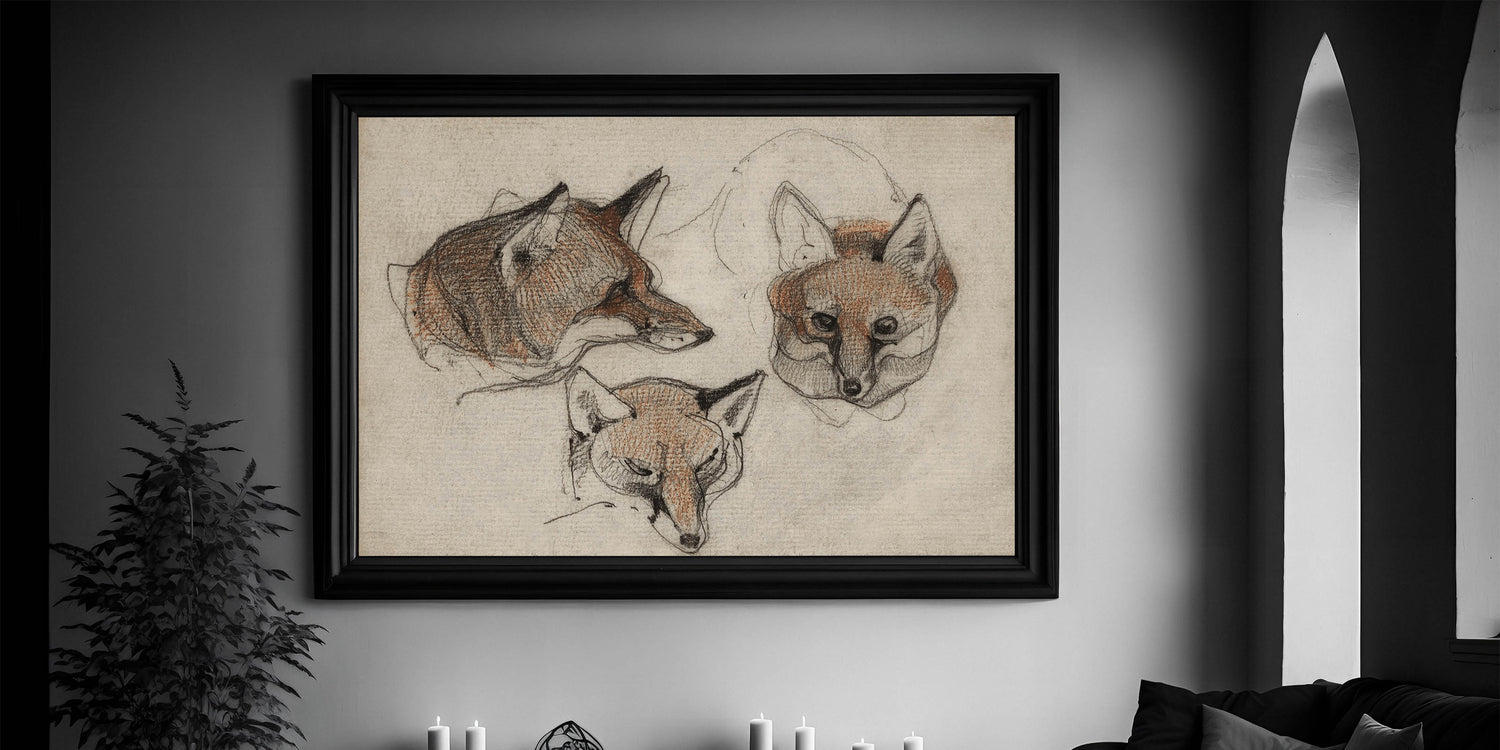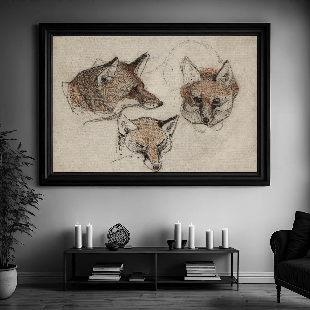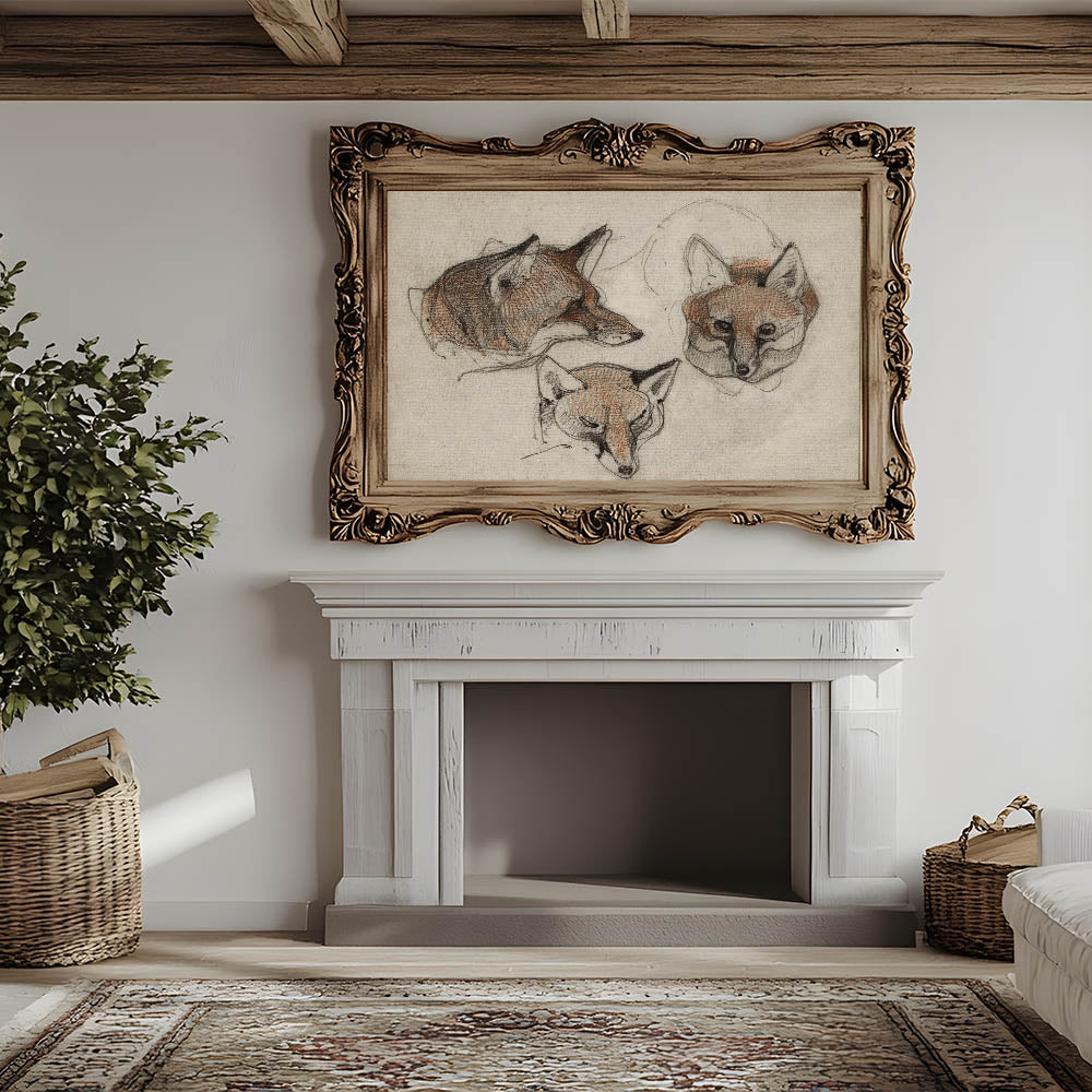 This artistic grunge wall art features a series of fox sketches with a distressed and vintage aesthetic. Perfect for those who admire grunge-inspired wall decor, this piece captures the raw beauty of nature with an edgy, urban twist. The minimalist sketch style combined with the rustic, earthy tones creates a unique and moody vibe that can elevate the look of any room, from living spaces to studios.