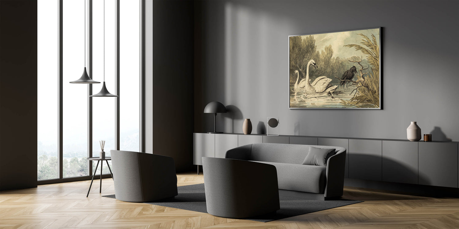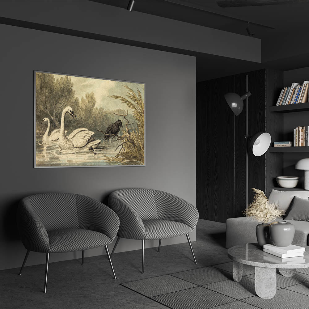 Grunge Wall Art - Unique Swan and Crow Scene for Edgy Home Decor