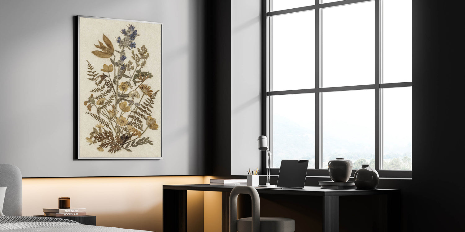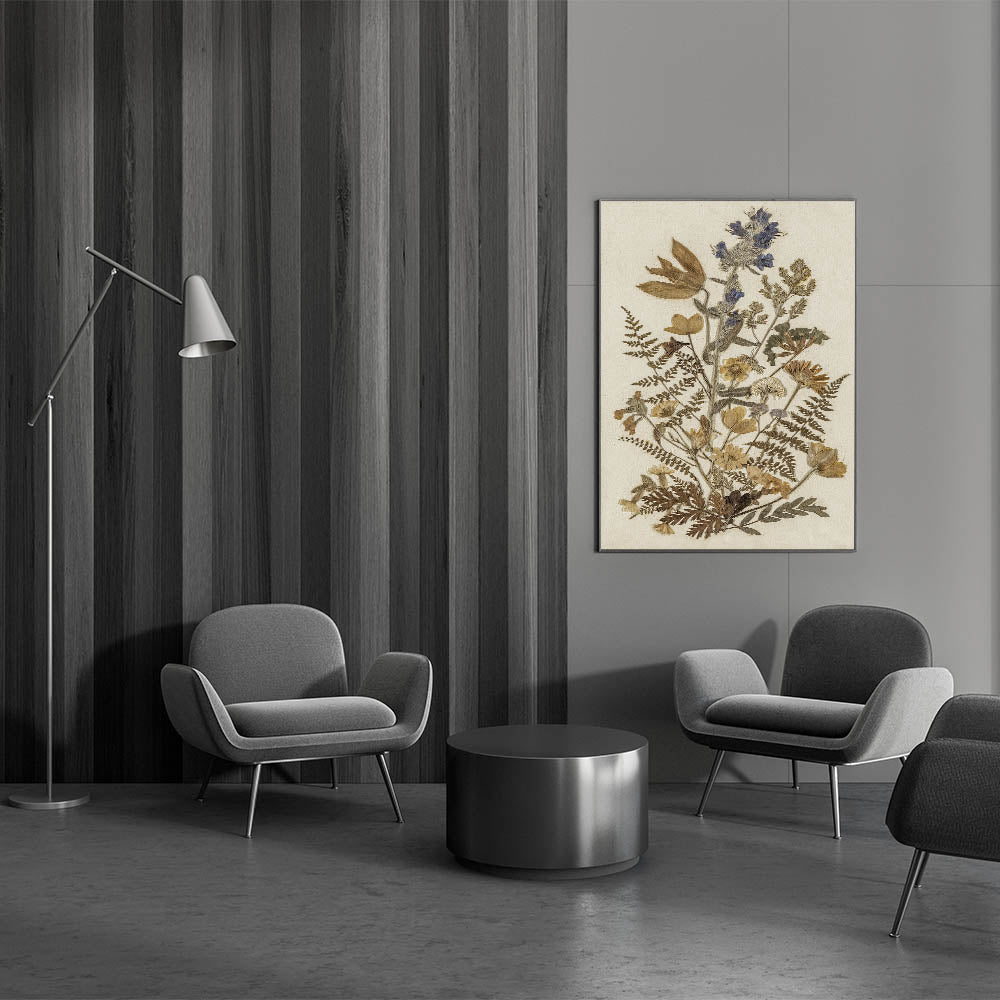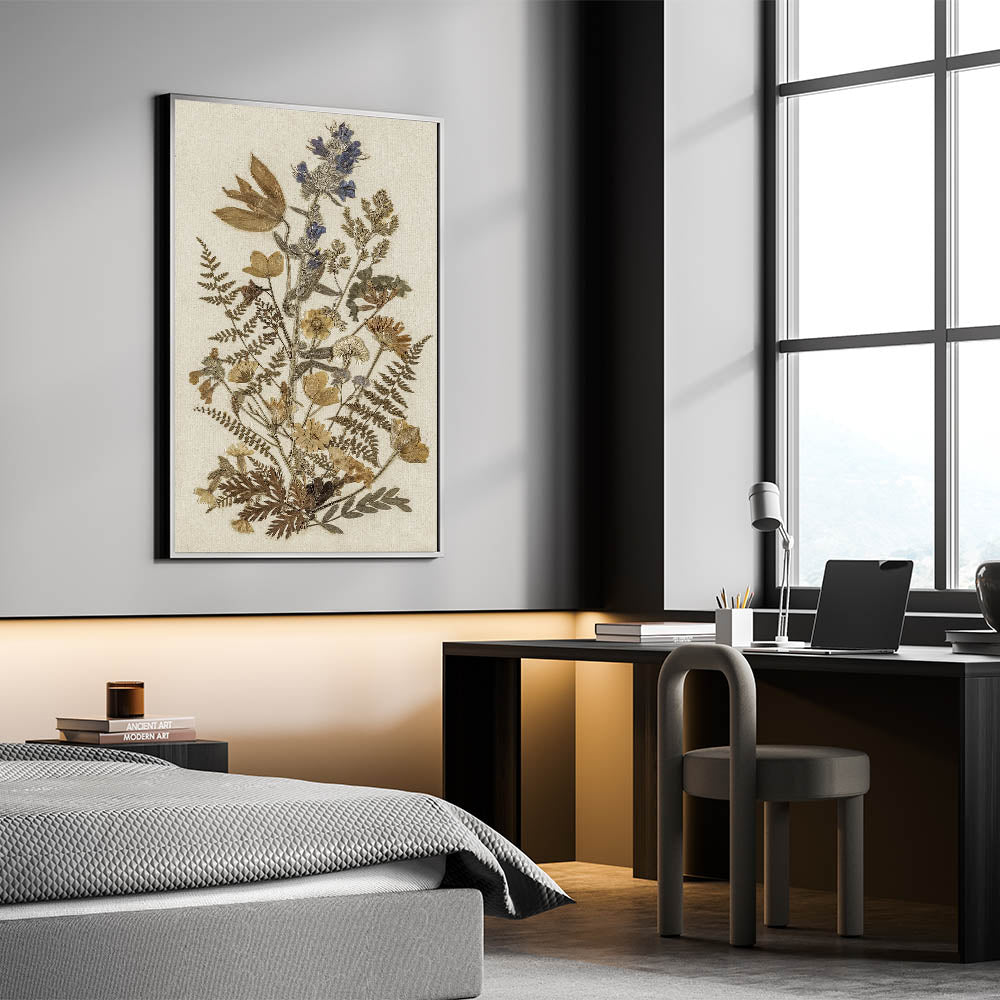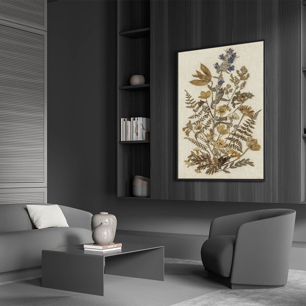 - High-quality print that highlights the fine textures of the pressed flowers and foliage