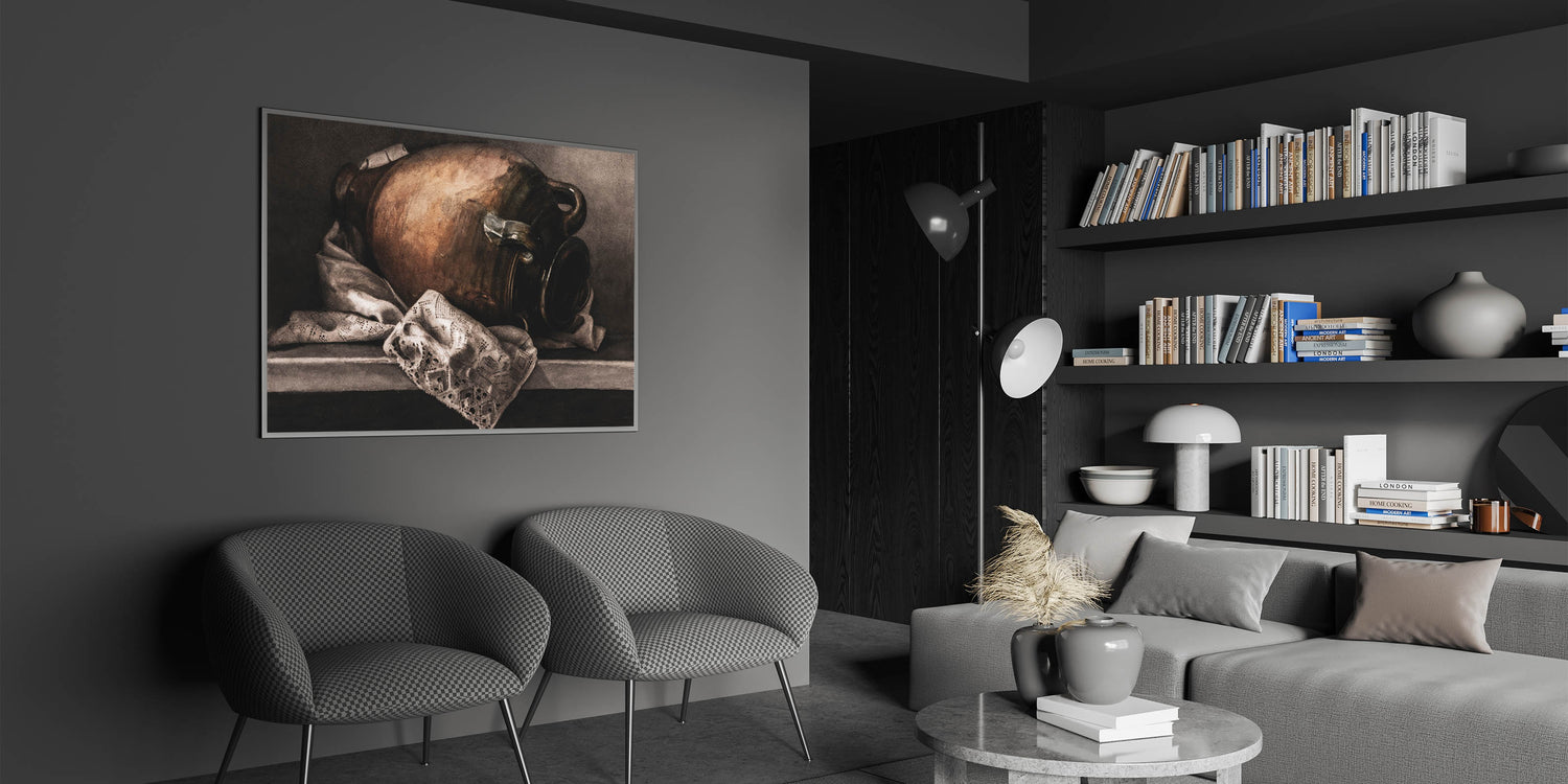 Moody Still Life Vase Art - Dark Timeless Decor for Elegant Interiors