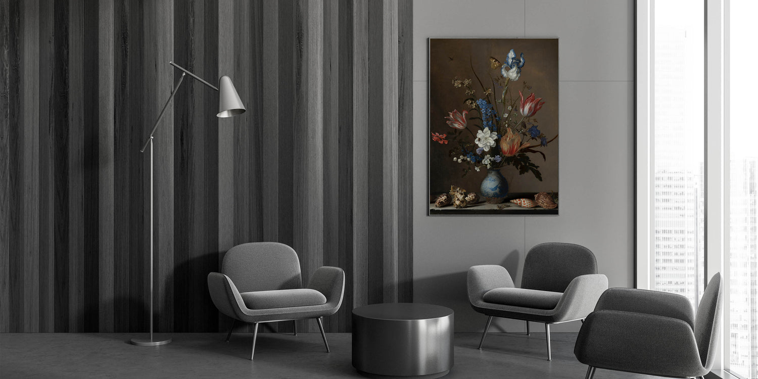 This dramatic art print brings the elegance of classic still life into your home, blending vibrant florals with dark tones for a captivating look. Whether used as a standalone centerpiece or as part of a gallery wall, this piece enriches any interior with its artistic beauty and depth.
