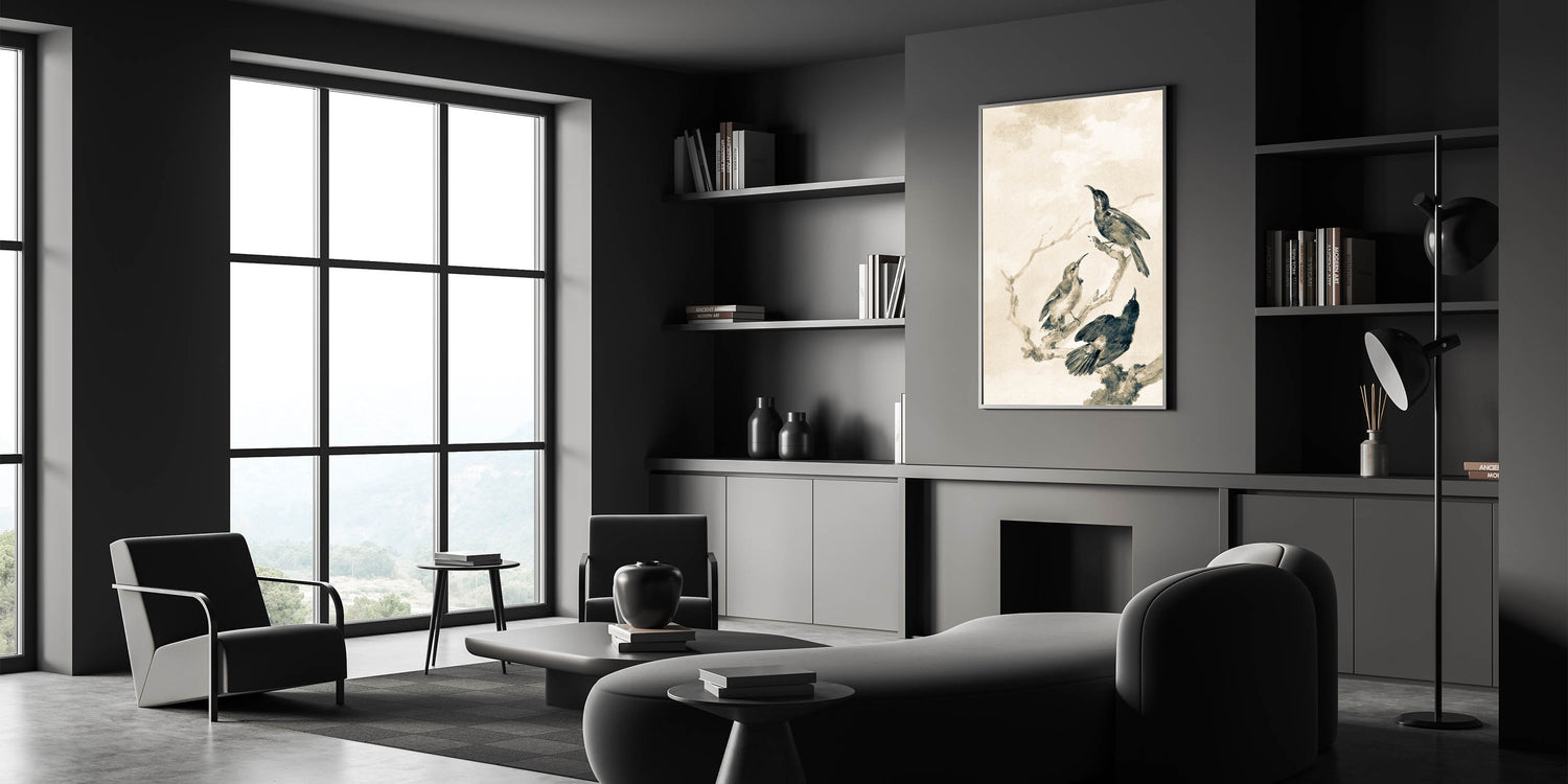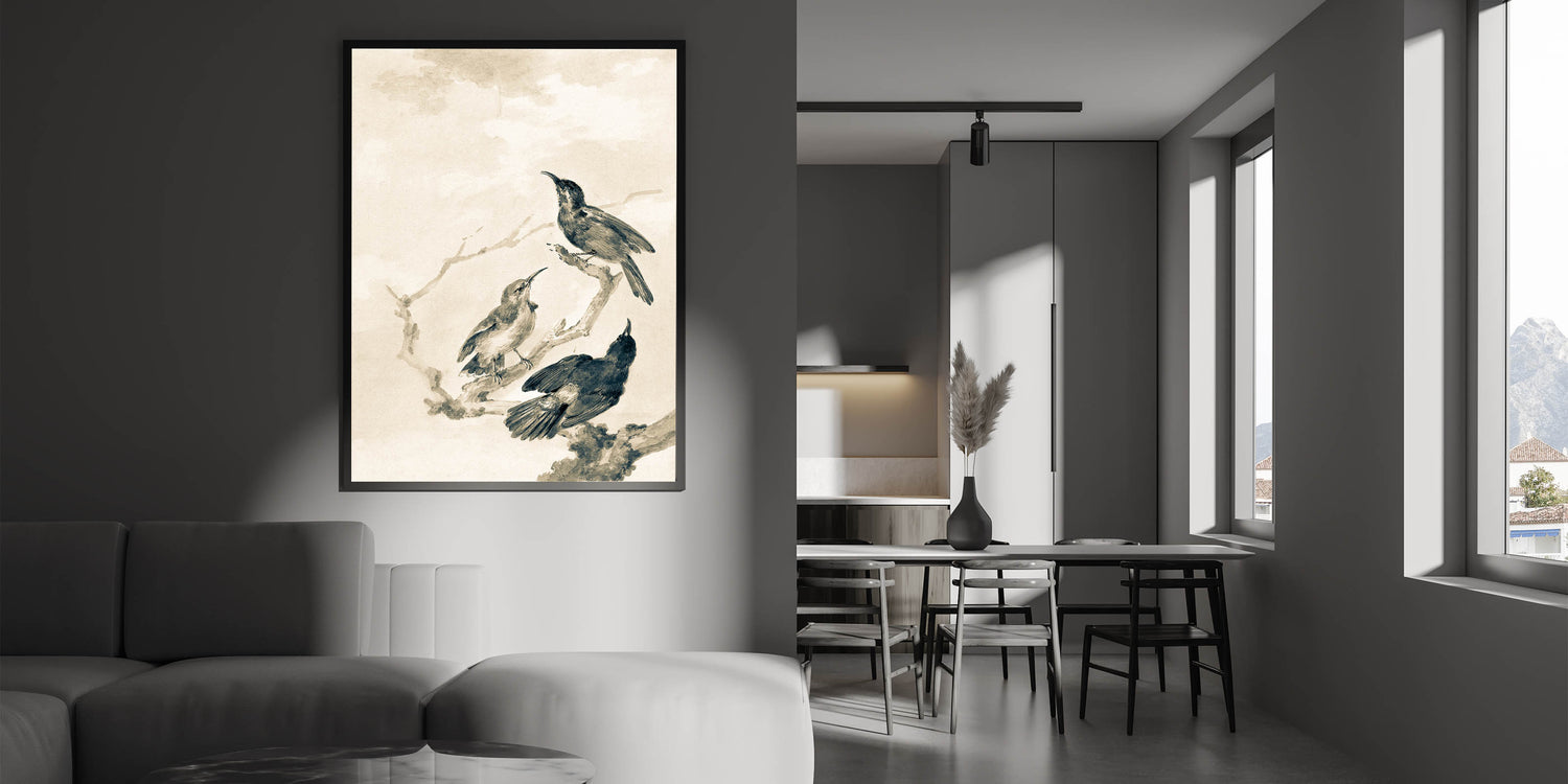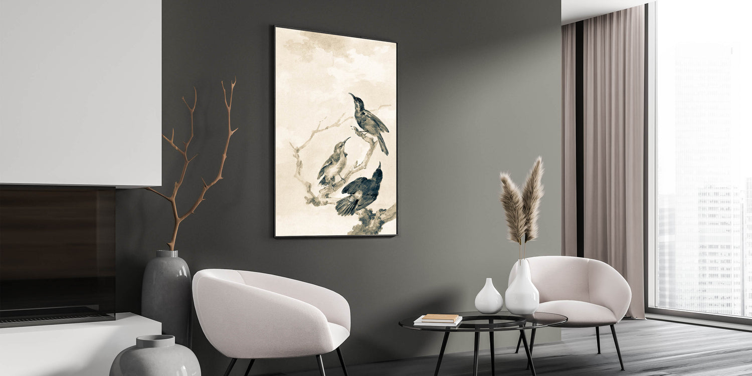 Bring a touch of nature with an urban edge to your space with this grunge-inspired wall decor featuring an abstract depiction of birds perched on branches. The muted monochromatic tones and textured brushstrokes create a vintage and distressed effect, perfect for lovers of industrial-style grunge canvas. Ideal for living rooms, bedrooms, or offices, this piece blends modern grunge decor with a natural theme, adding depth and character to any wall.
