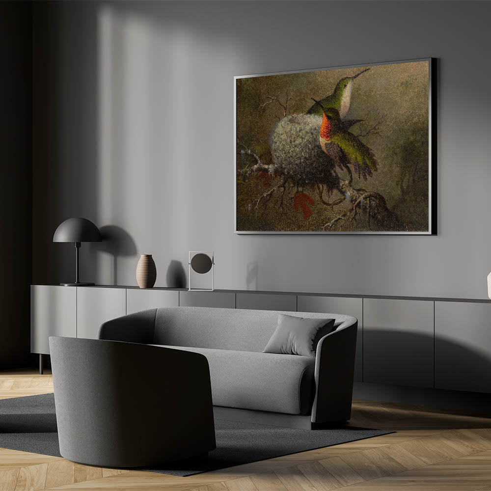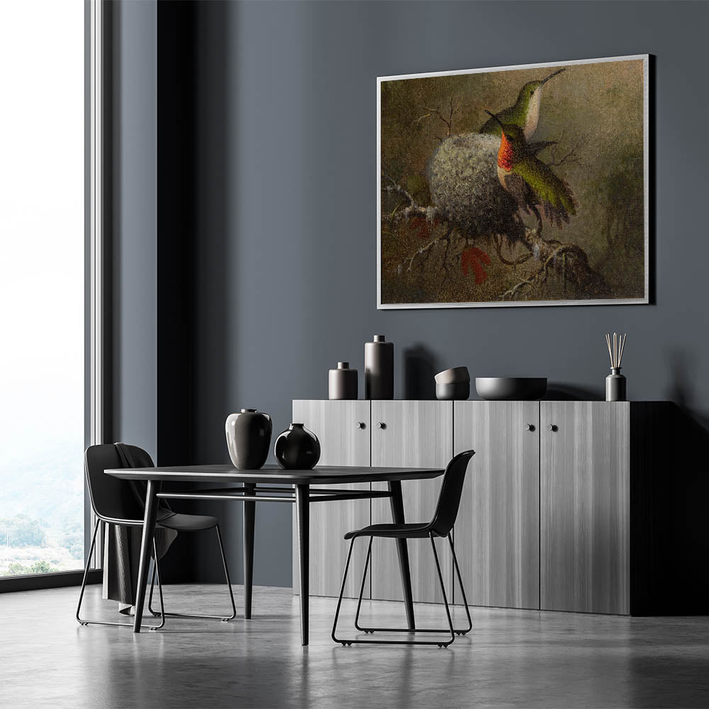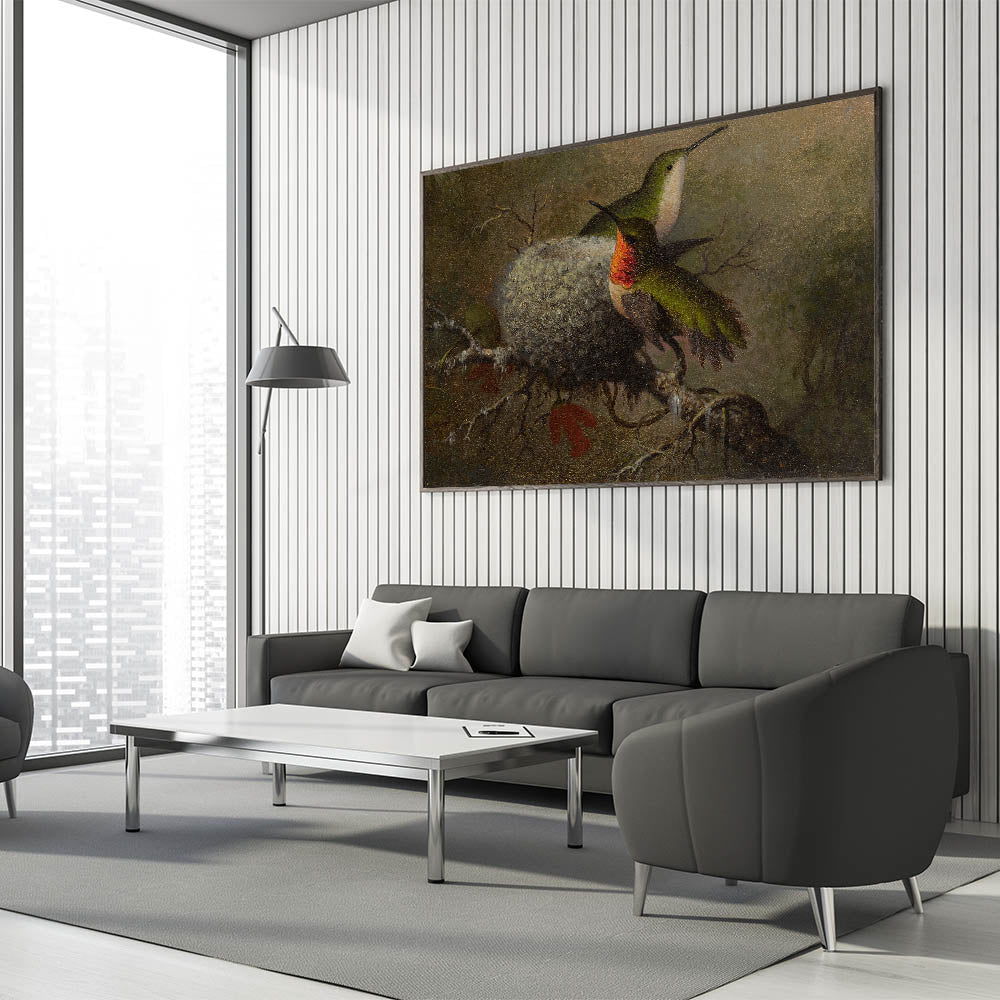 This unique grunge wall art piece features a pair of vintage-style hummingbirds perched on a textured branch, surrounded by an earthy, distressed background. Ideal for those seeking grunge-inspired wall decor with an industrial twist, this artwork blends nature with an edgy aesthetic, perfect for enhancing a modern living room or workspace.