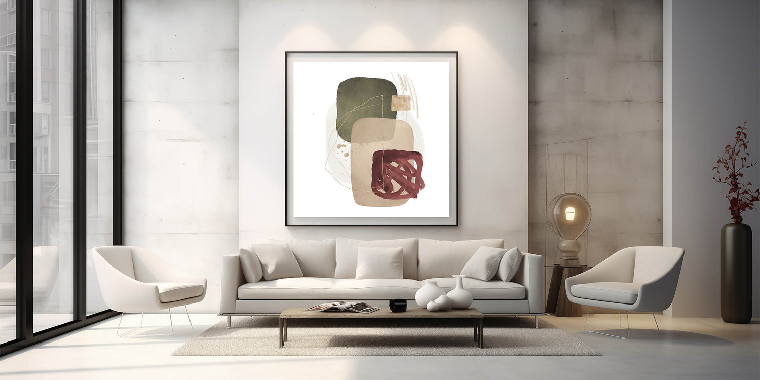 Let this minimalist wall art enhance your home or office with its striking geometric shapes and sophisticated color palette. Whether you're creating a focal point in your living room or adding a subtle statement piece to your office, this artwork brings modern elegance and style to any interior.