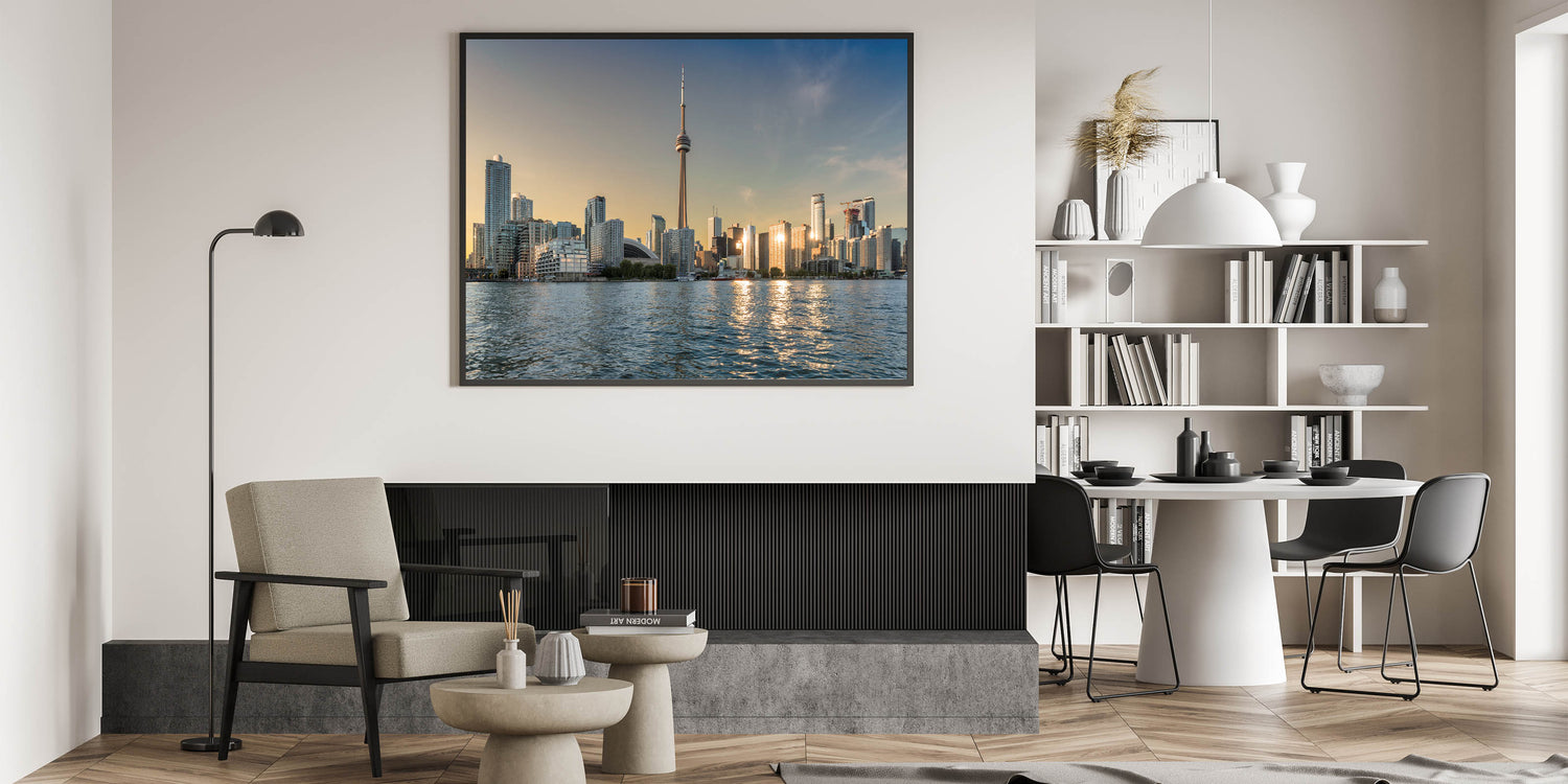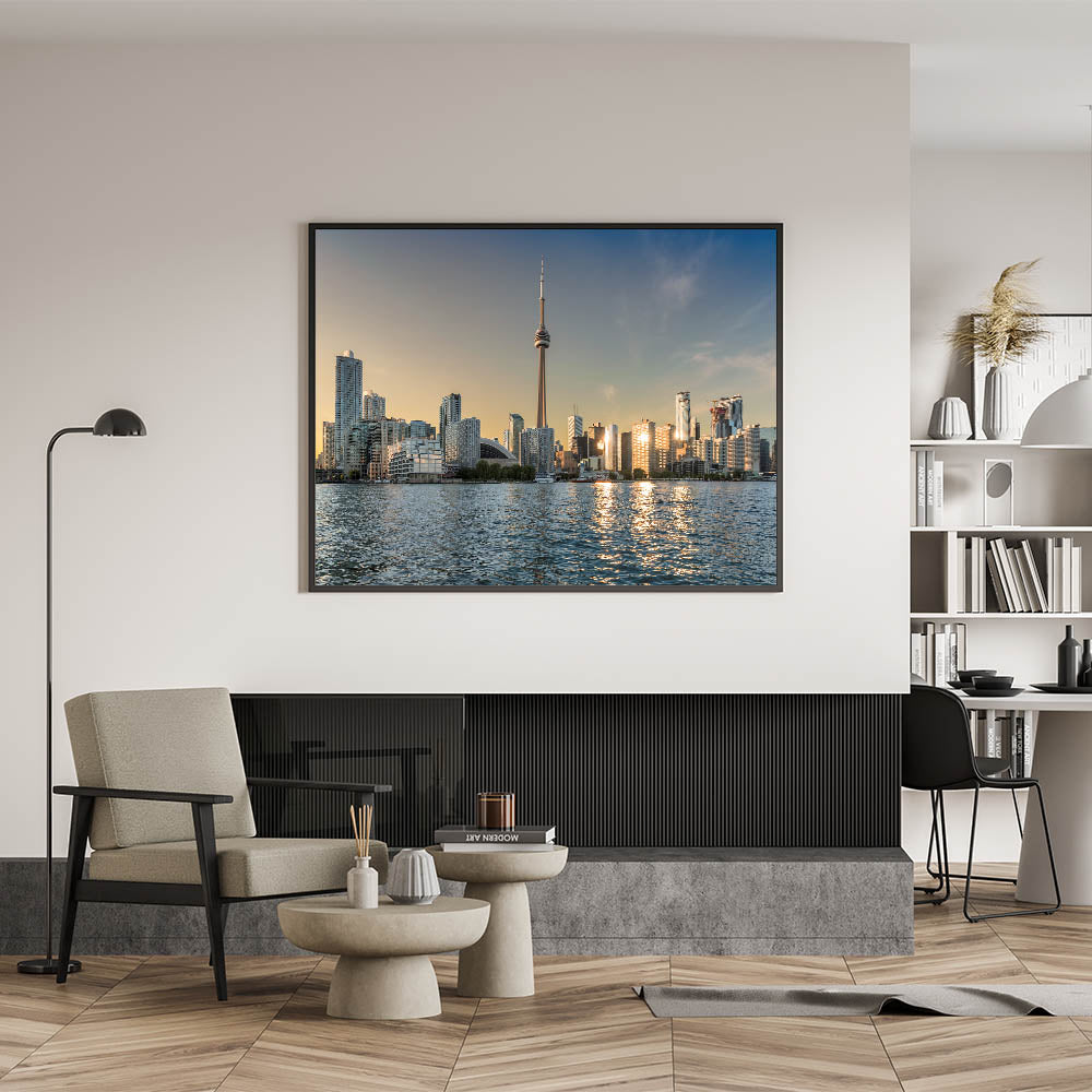 Whether you're drawn to the beauty of cityscapes or the serene ambiance of the golden hour, this Toronto skyline art is the perfect addition to your collection. Its glowing colors and tranquil composition make it a standout piece that brings a sense of peace and harmony to any space.