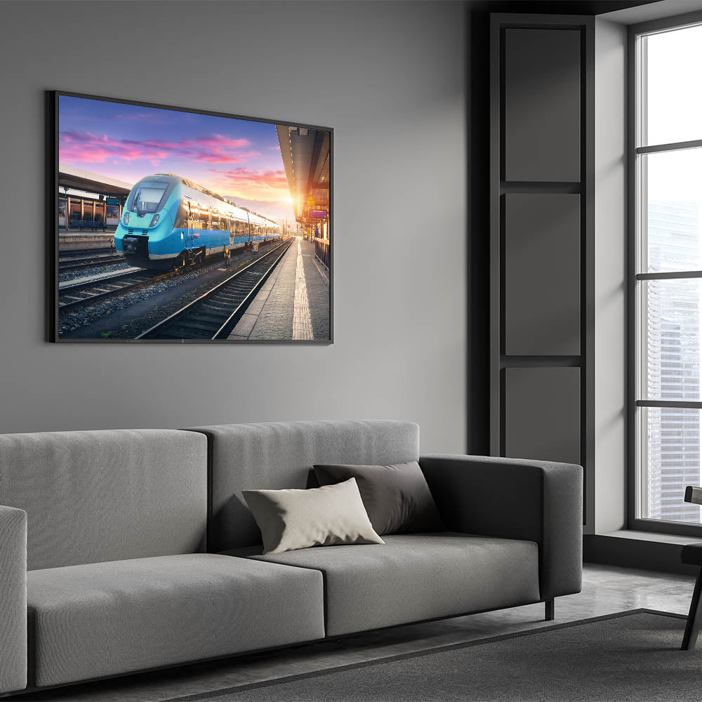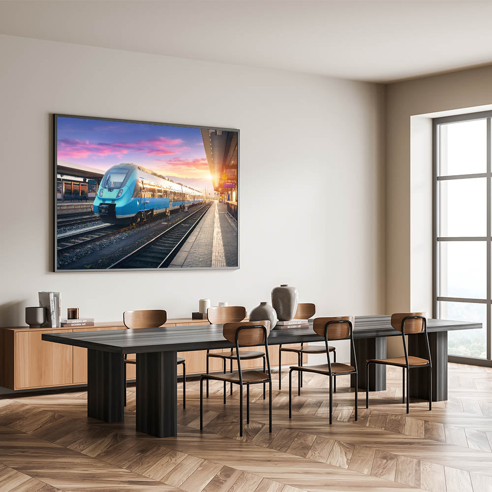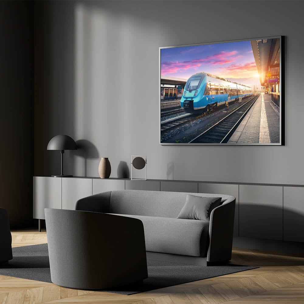 Enhance your decor with this vivid and lively urban transit canvas that captures the essence of modern train travel at its most beautiful. Whether you’re a railfan or just love stunning sunsets, this artwork is sure to become a favorite.