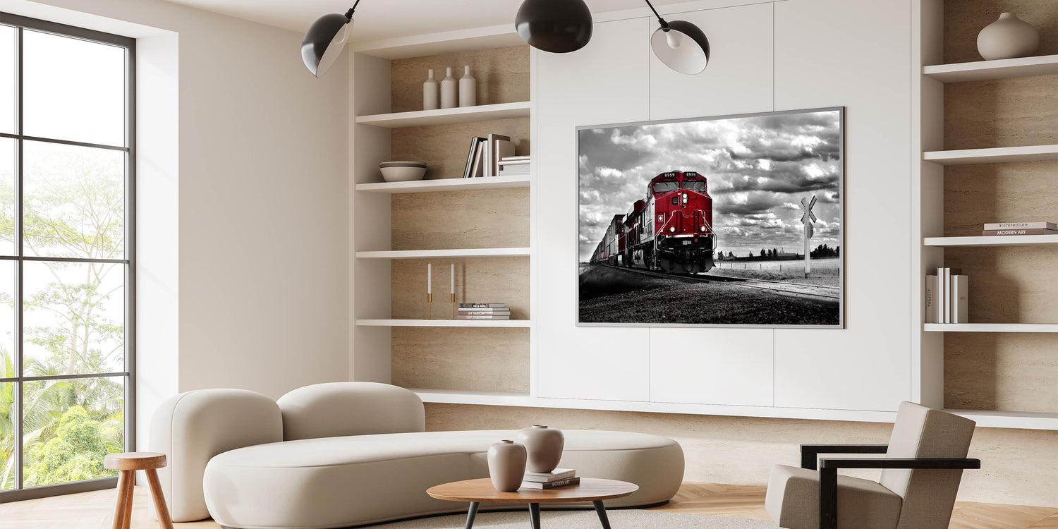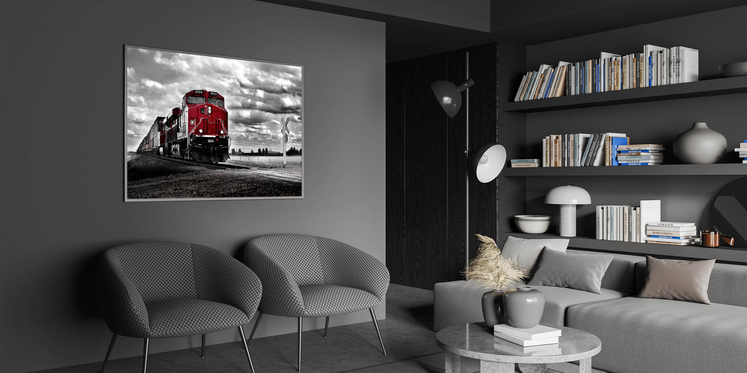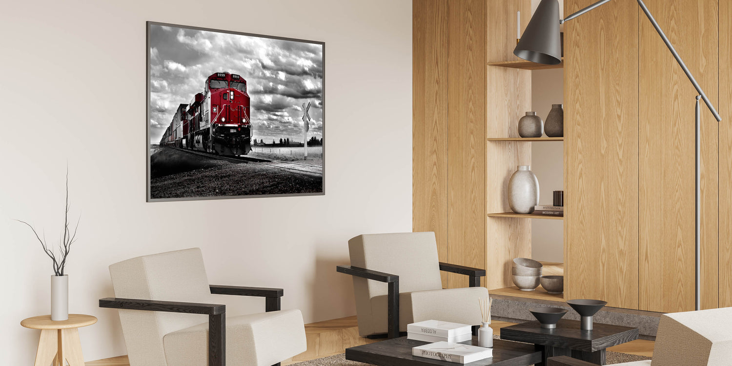 - Bold and Dramatic: The vivid red locomotive against the grayscale background makes for a striking focal point in living rooms, offices, or any area needing a visual impact.