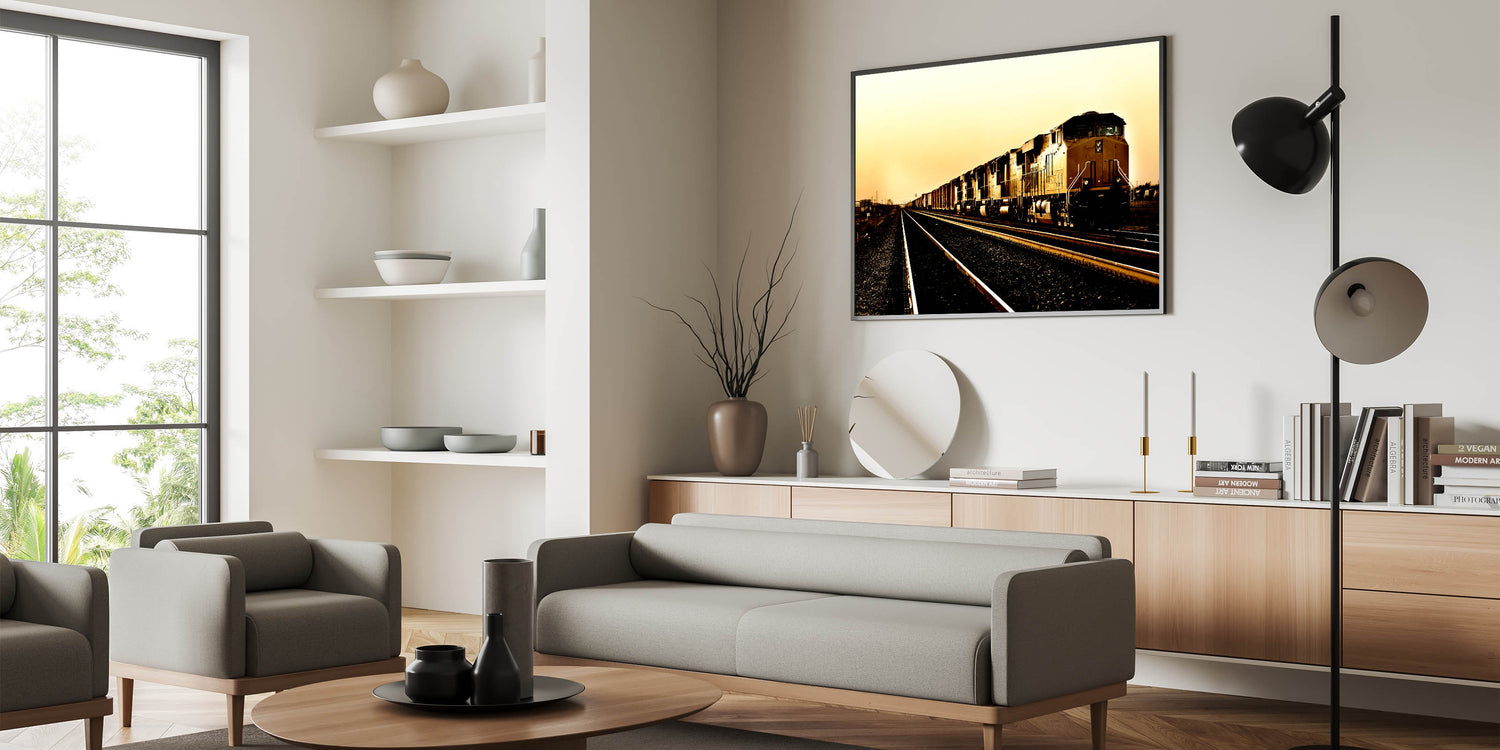 Sunset Freight Train Wall Art - Railroad Poster for Modern Decor