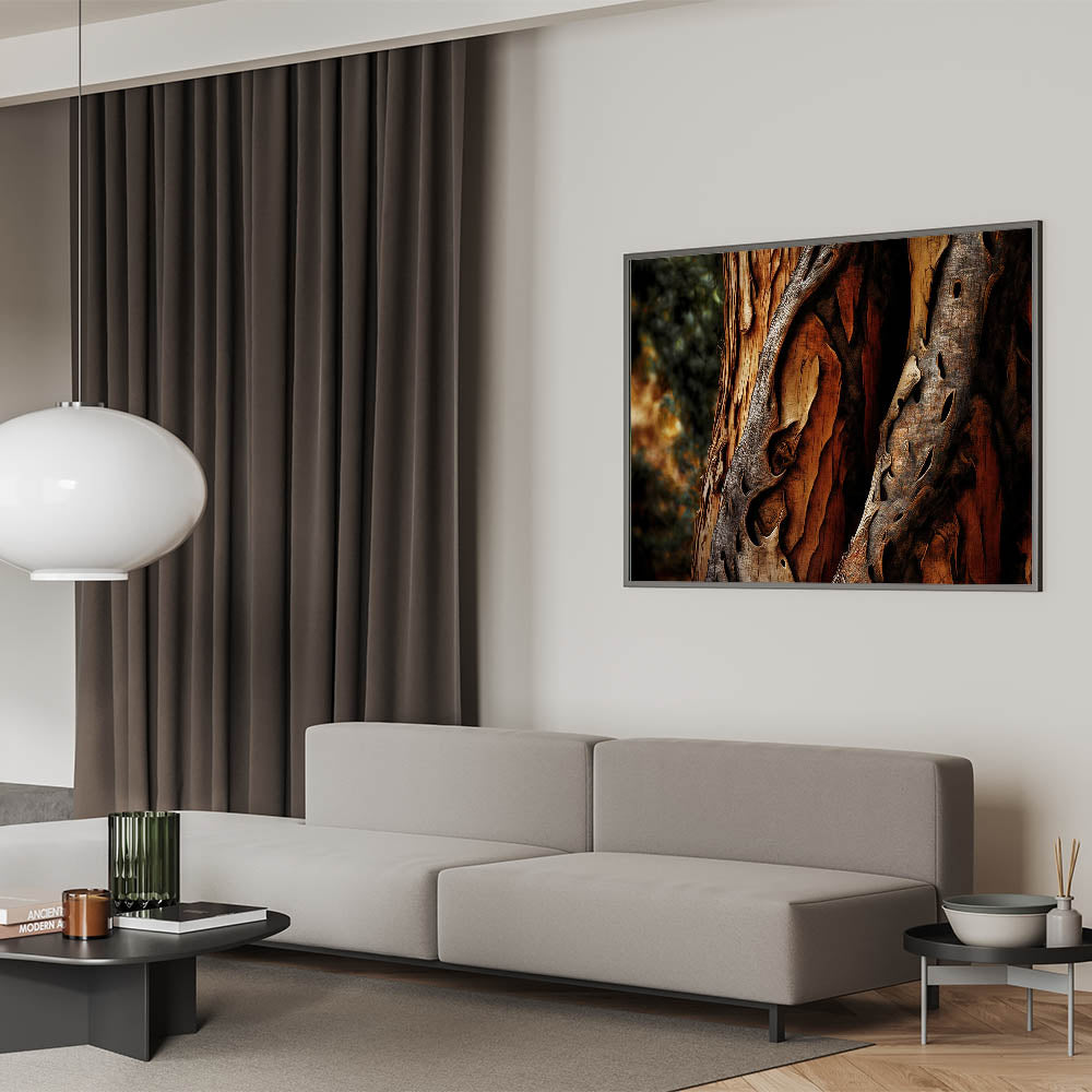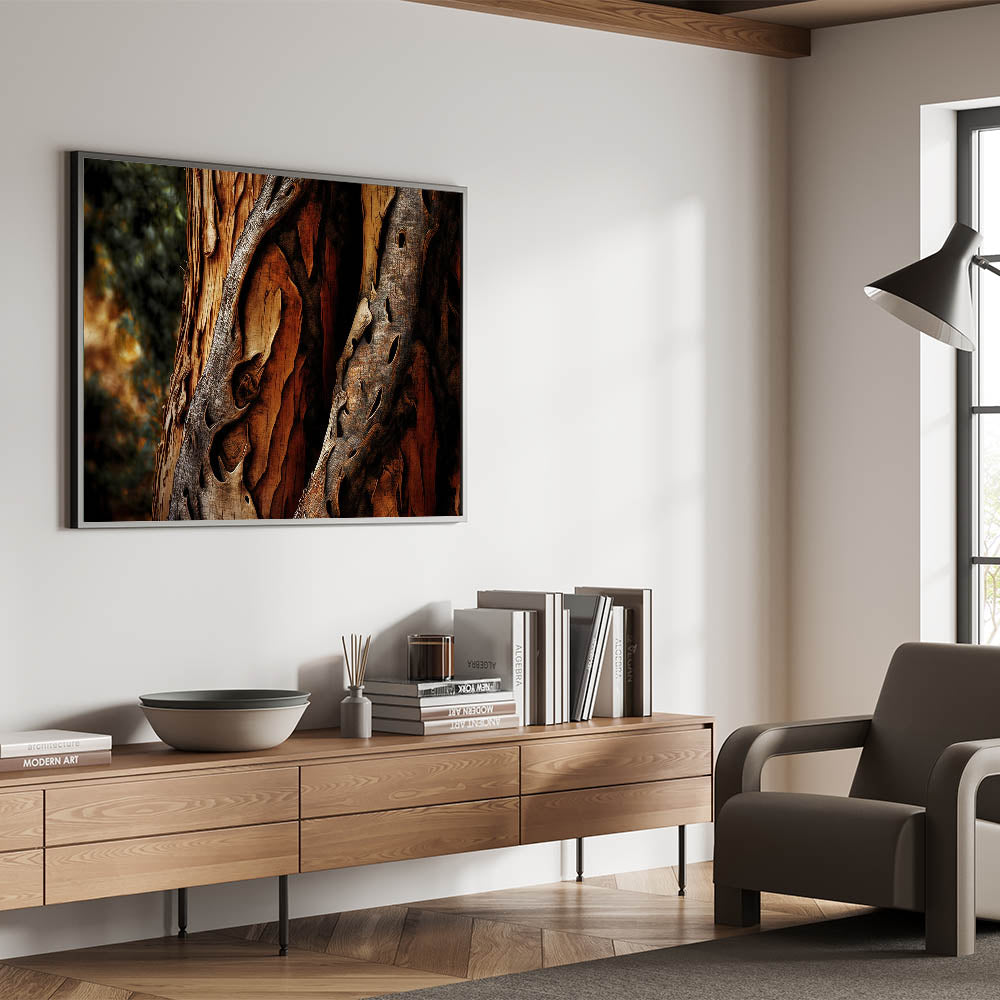 Add the raw beauty and mystery of nature to your home with this abstract close-up of tree bark. The deep, rich tones and intricate textures of this nature-inspired wall art capture the organic details of tree bark, offering a stunning and rustic aesthetic. This tree canvas print is perfect for adding a sense of depth and warmth to any space, whether in the living room, bedroom, or office.