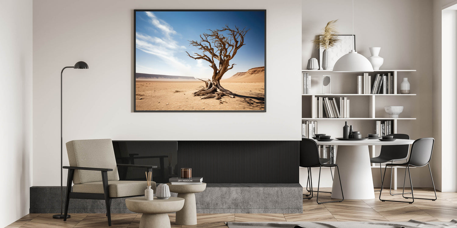This desert tree canvas art print is more than just a decorative piece; it’s a statement of endurance and natural beauty, making it a perfect addition to any room where you want to inspire strength and resilience.
