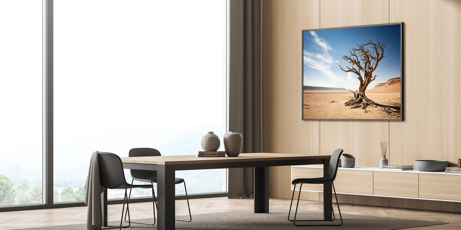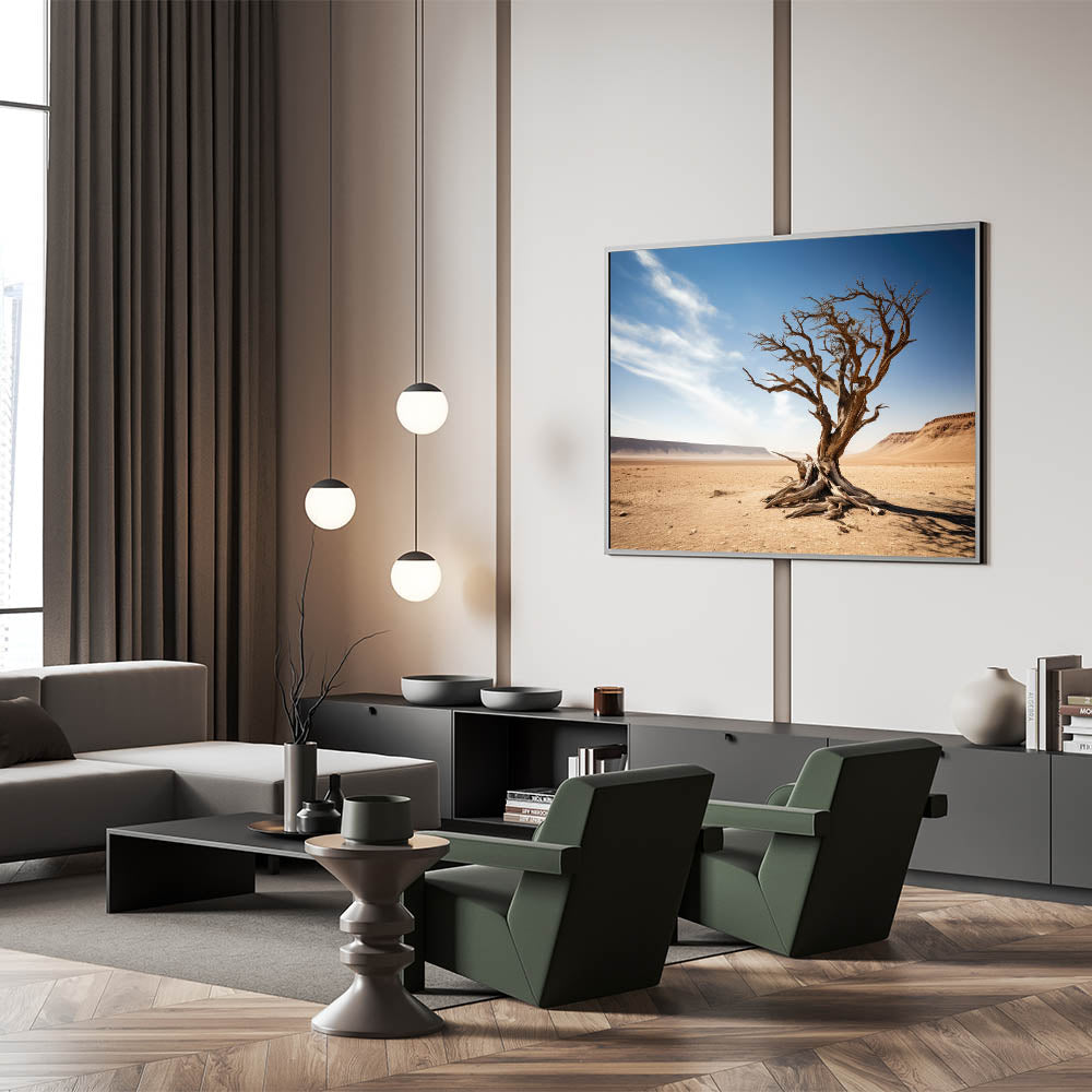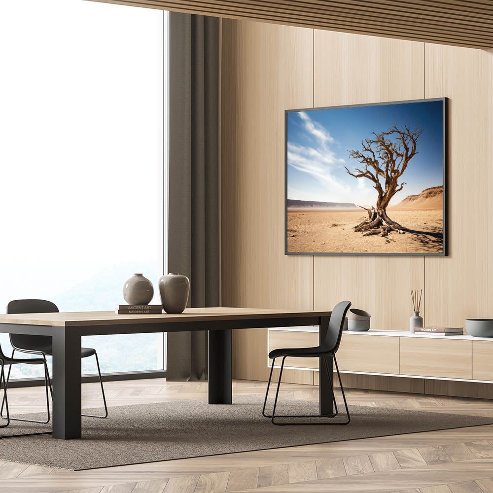 - Bold Design: The solitary tree and expansive desert landscape create a dramatic focal point, ideal for enhancing your living room, office, or bedroom with a touch of nature’s raw beauty.