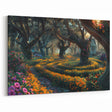 Step into a world of wonder with this enchanting wall art that captures a magical forest pathway winding through twisting trees and vibrant flowers. Bathed in soft sunlight and adorned with blooming flora, this artwork brings the beauty of a fantasy landscape to life. It’s perfect for those who dream of stepping into a storybook setting, adding a touch of whimsy and charm to any space.