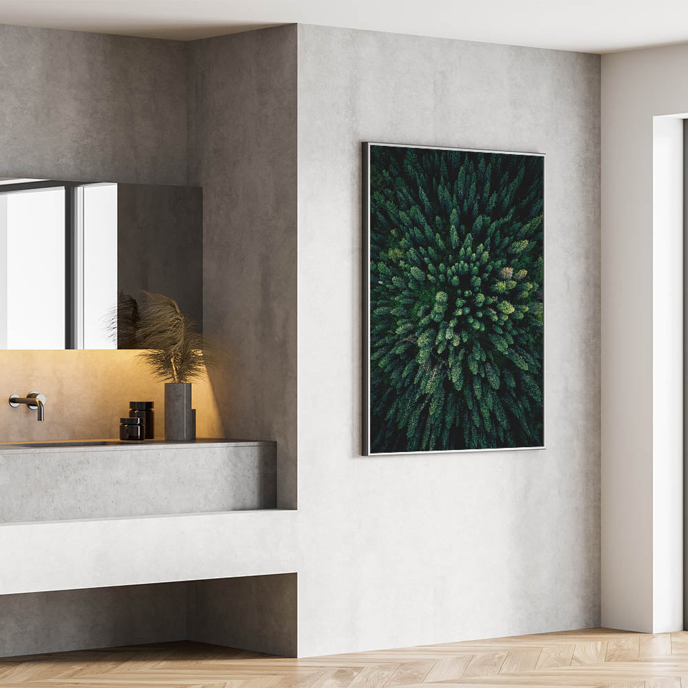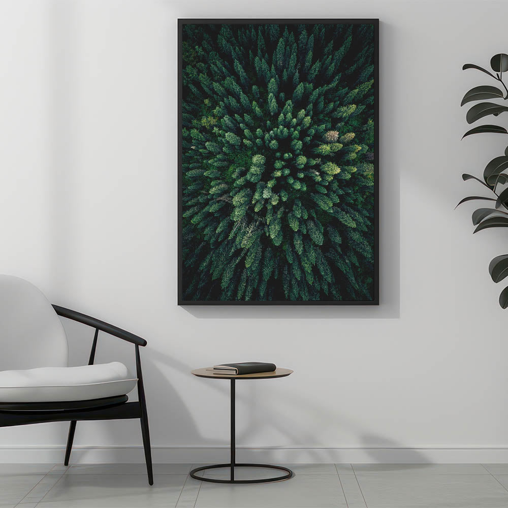 Discover the beauty of nature from a new perspective with this striking Forest Canopy Aerial View wall art. This mesmerizing artwork showcases the dense, rich green foliage of towering trees as seen from above, creating a unique and captivating view. Perfect for modern home decor, this piece will bring a sense of serenity and connection to nature into any space, whether in a living room, bedroom, or office.