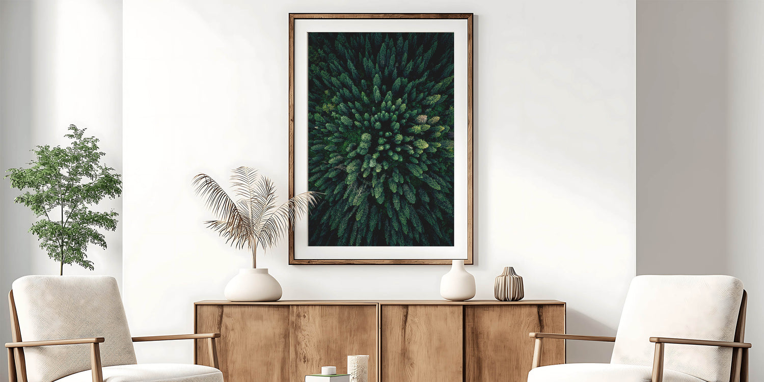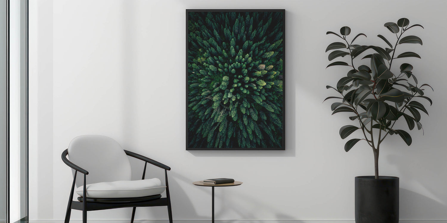• High-quality tree wall decor with a detailed and refreshing aerial view of a lush forest