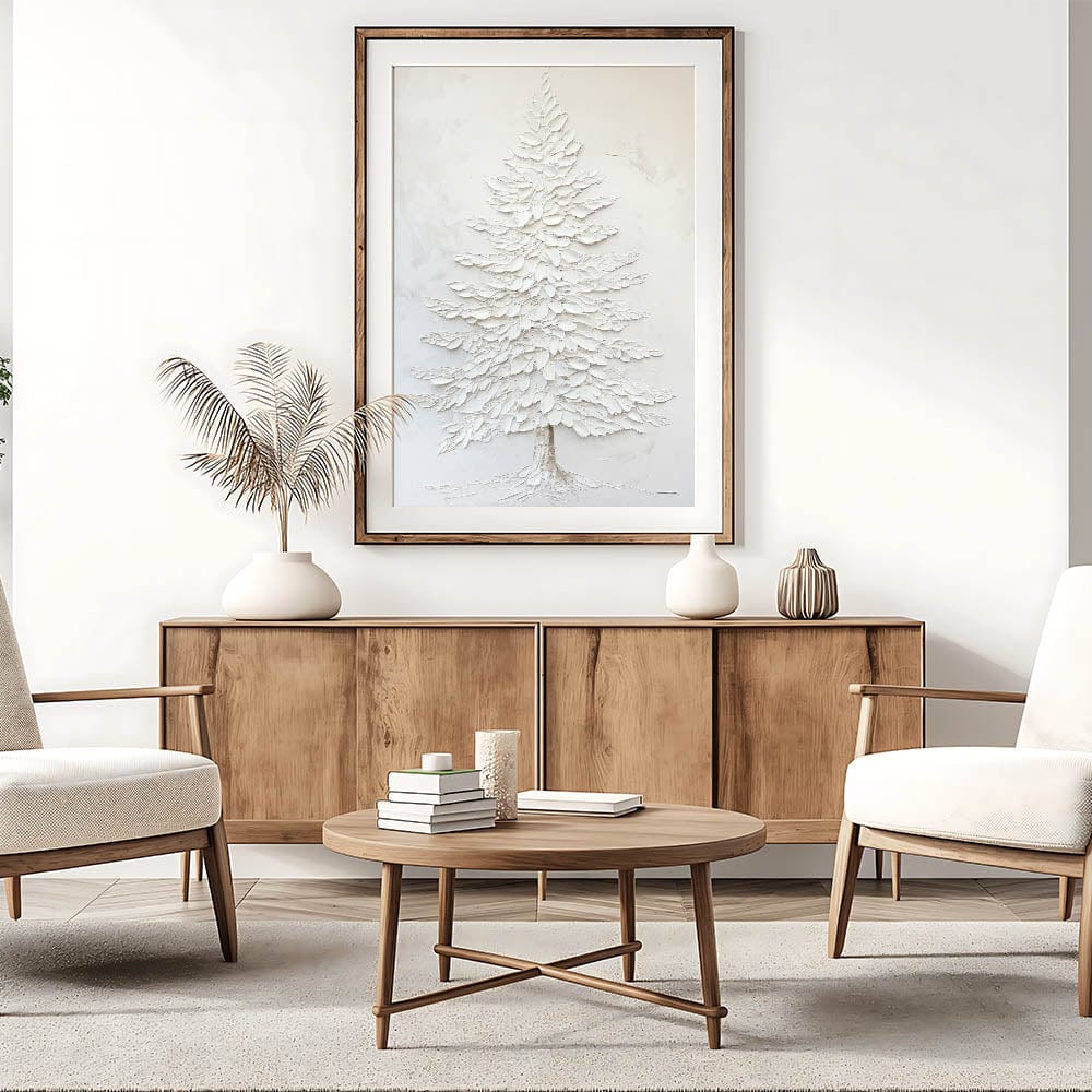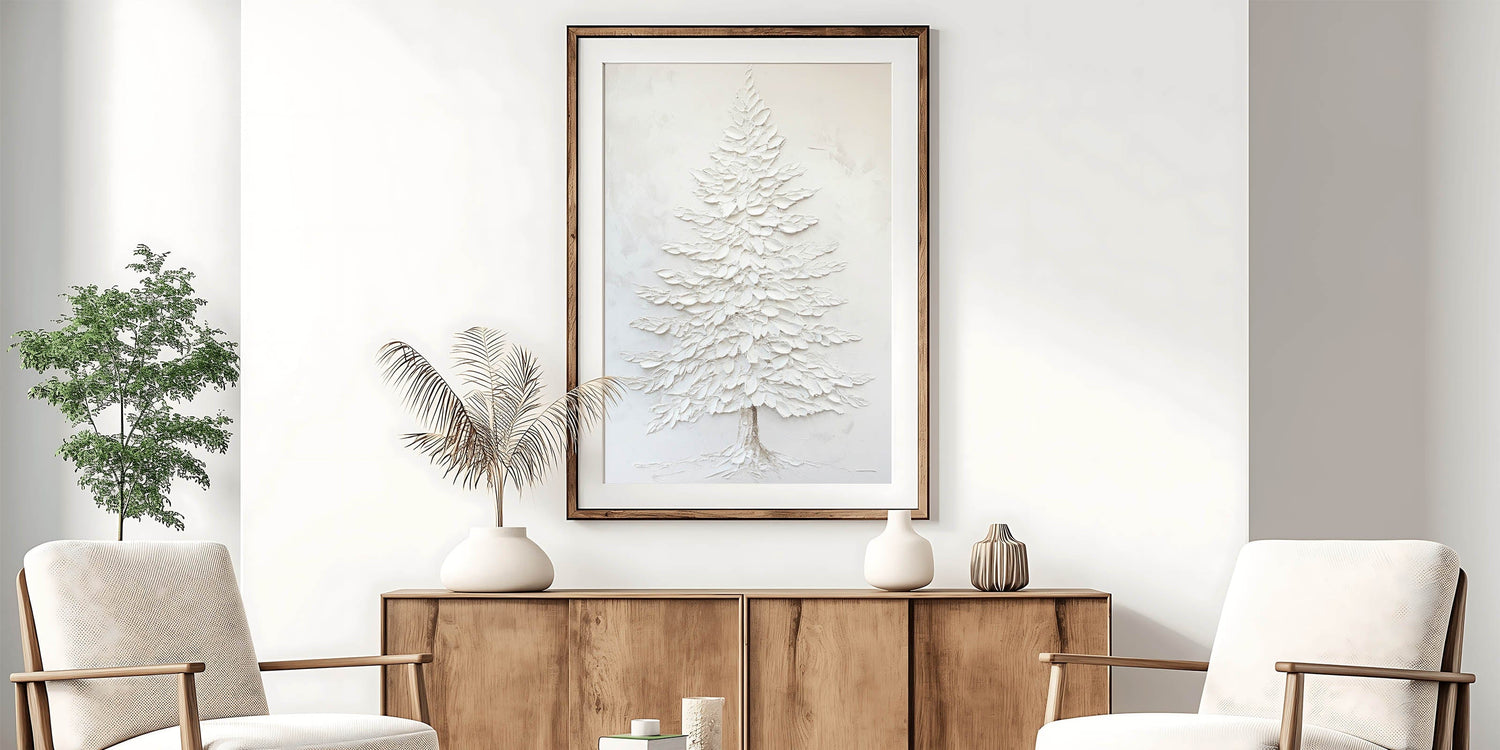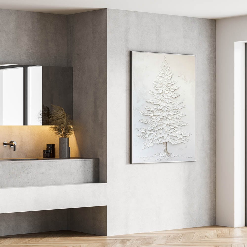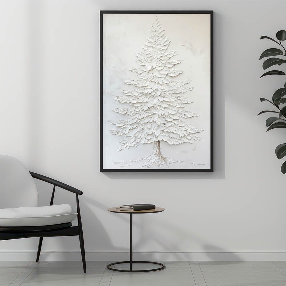Add elegance and texture to your space with this tree art print, featuring a sculpted white tree on a neutral background. The delicate, three-dimensional leaf design brings depth and sophistication, making this landscape art print a perfect addition to modern, minimalist, or Scandinavian-inspired interiors. This nature-inspired wall art exudes simplicity and grace, making it an eye-catching yet subtle statement piece.