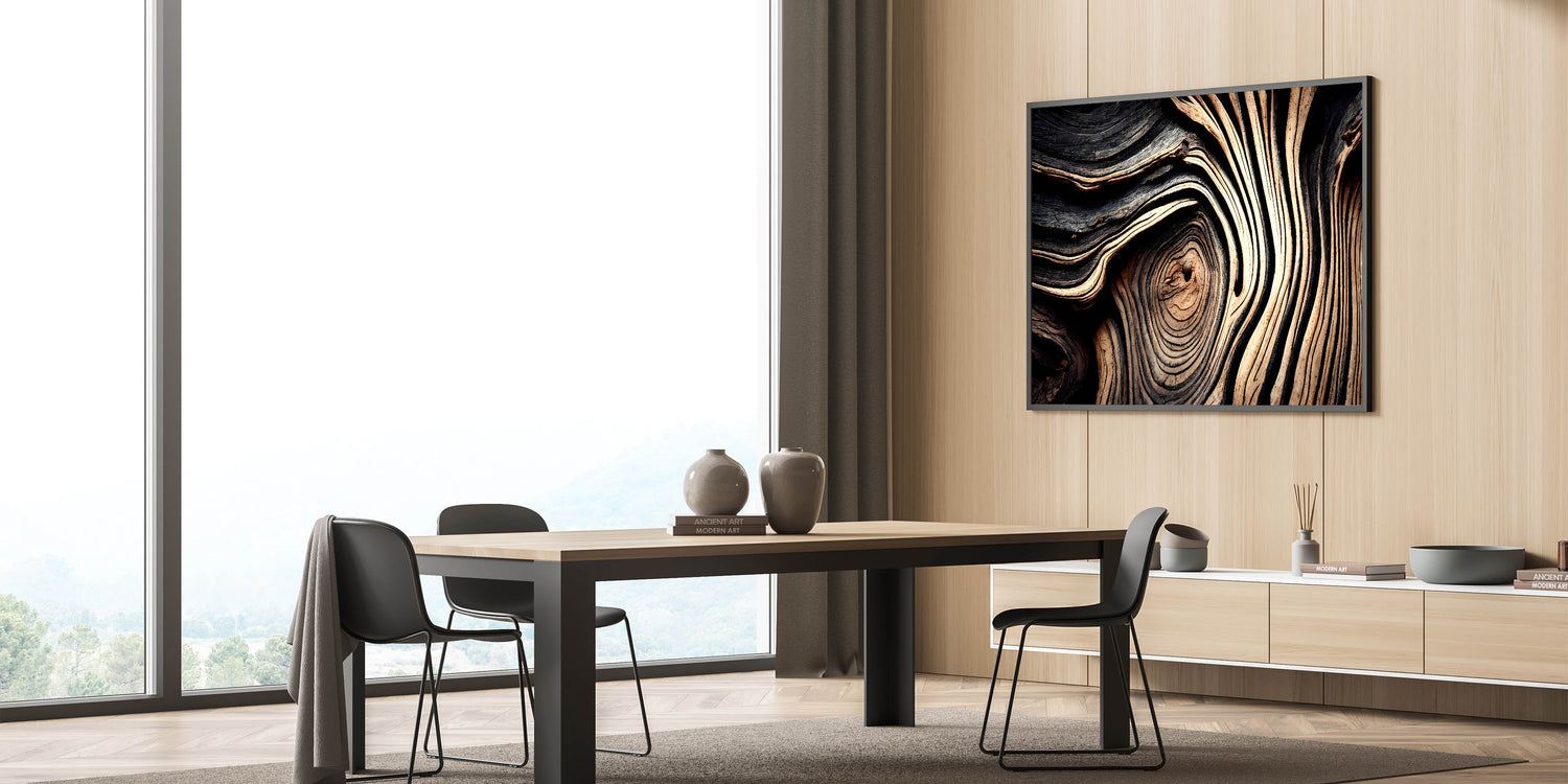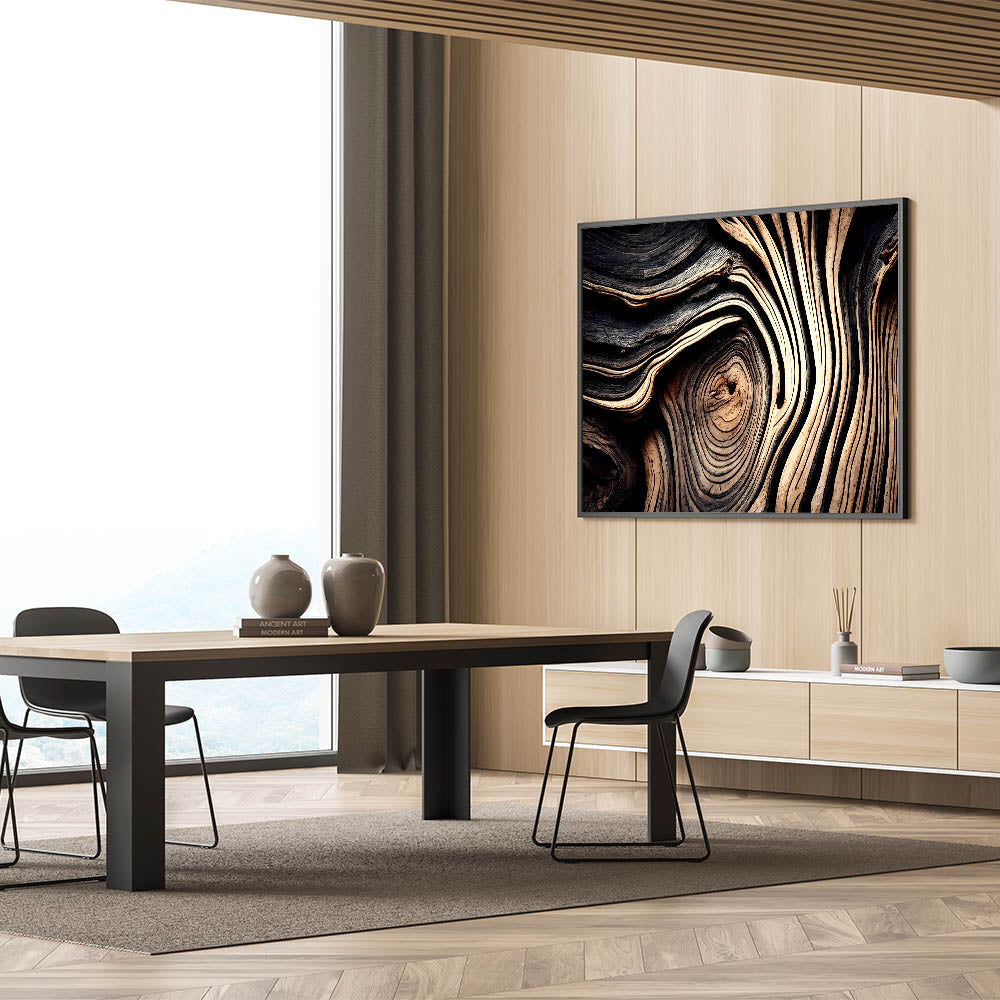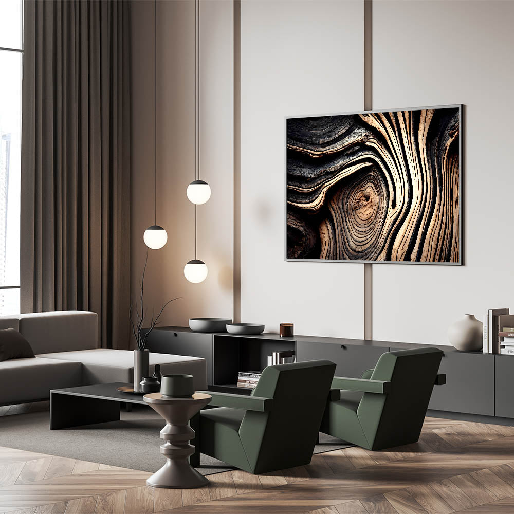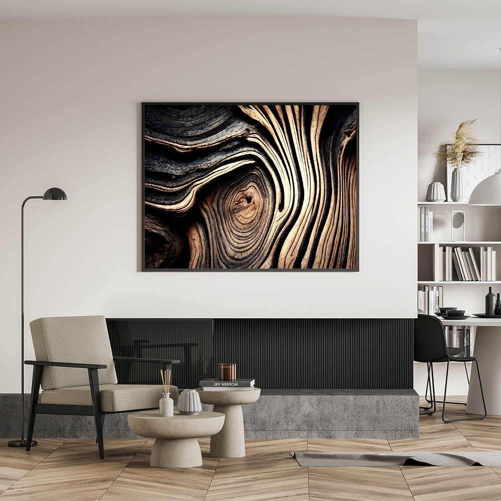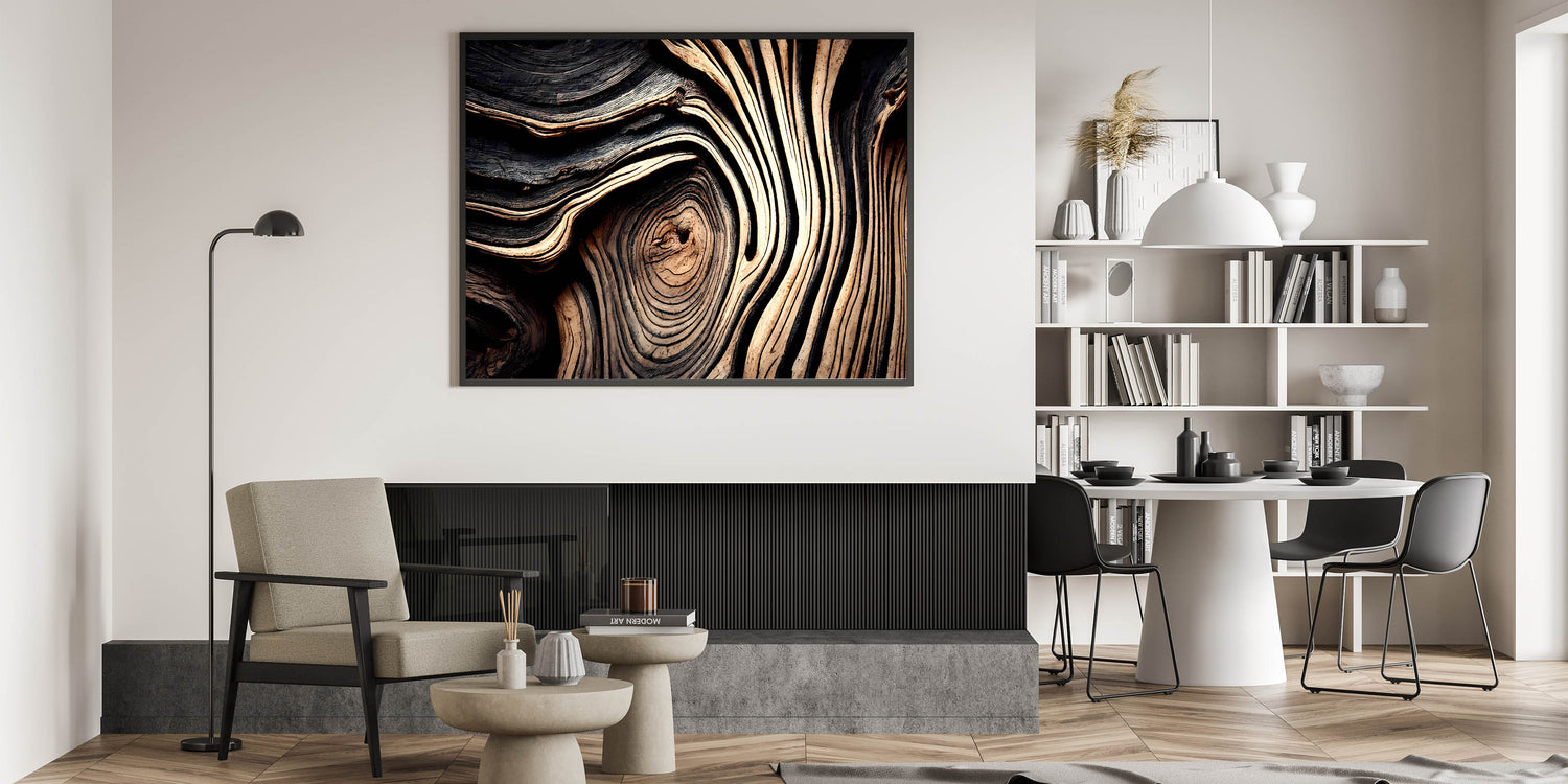 Add a touch of mystery and sophistication to your home with this beautiful tree wall art. Featuring a close-up of tree rings with dynamic patterns and rich textures, this artwork is an embodiment of nature's intricate beauty. The contrasting light and dark tones give the piece a unique depth, making it a perfect statement piece for modern and nature-inspired home decor. This striking tree photography brings the timeless beauty of the forest right into your living space.