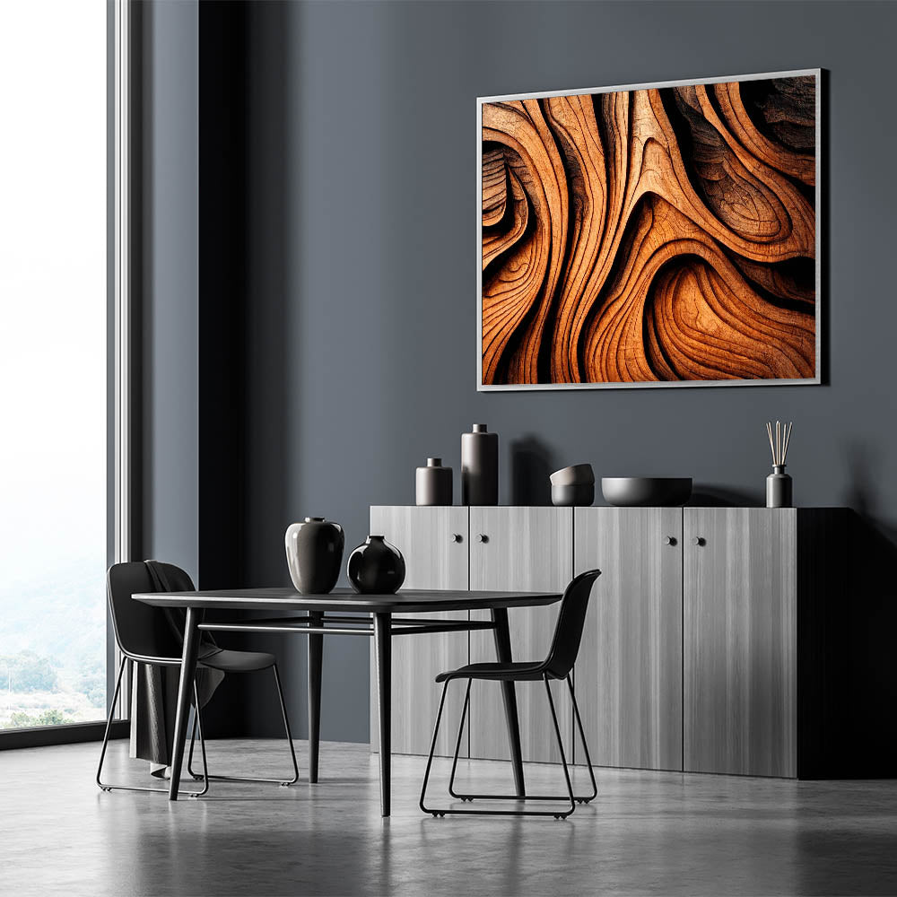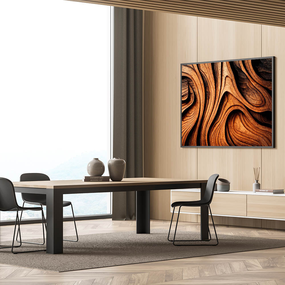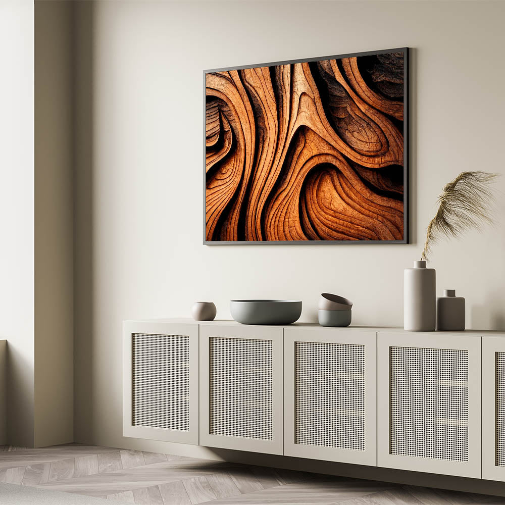 Transform your space with the captivating beauty of this stunning tree wall art, featuring a mesmerizing close-up of intricate tree patterns. The organic flow of woodgrain captured in this piece brings the natural elegance of trees indoors, creating a sense of harmony and warmth in any room. This beautiful nature close-up wall art is perfect for nature lovers looking to add a touch of modern sophistication to their home decor.