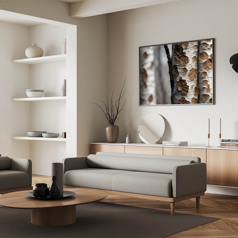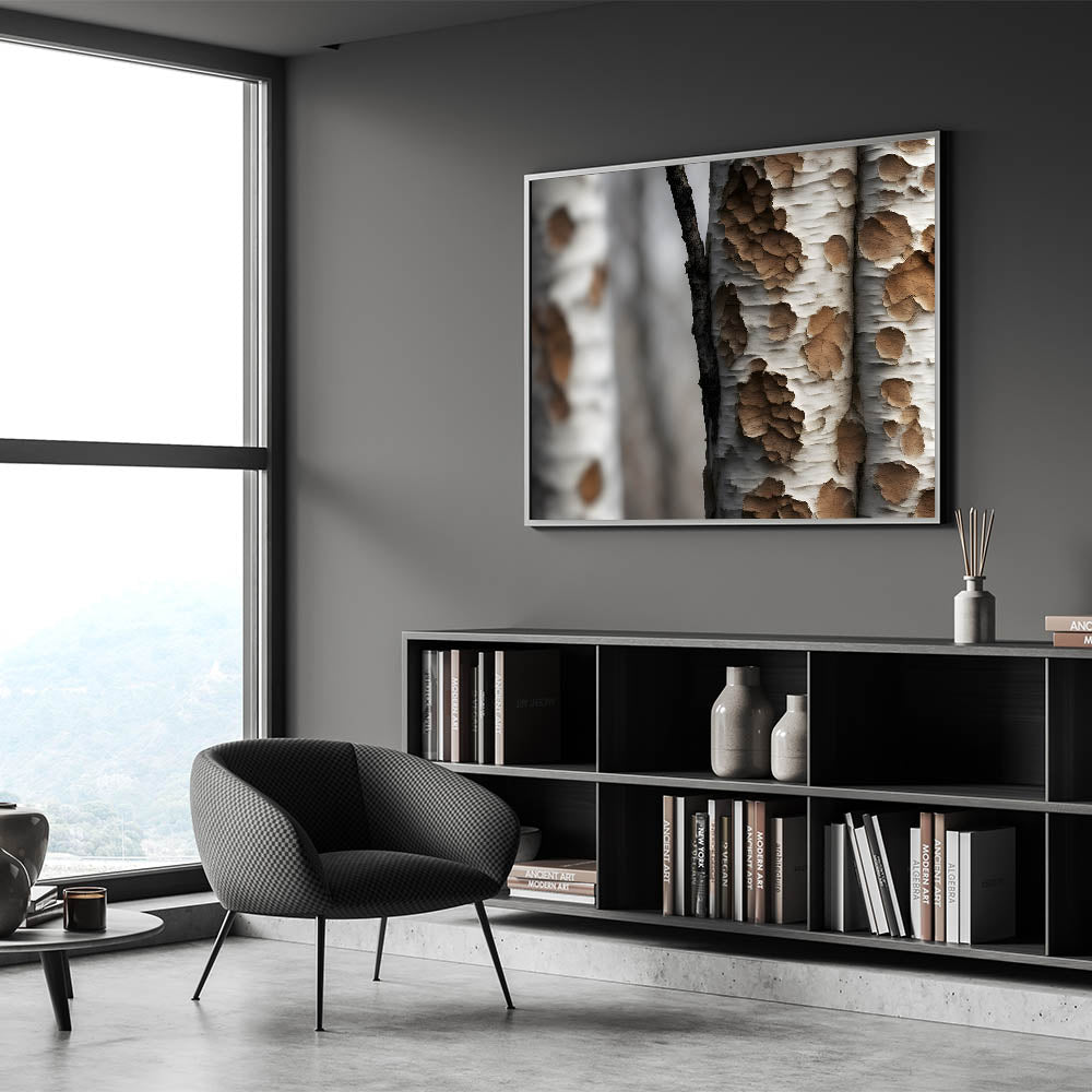 Peeling Birch Bark: Minimalist Tree Wall Art for Modern Home Decor