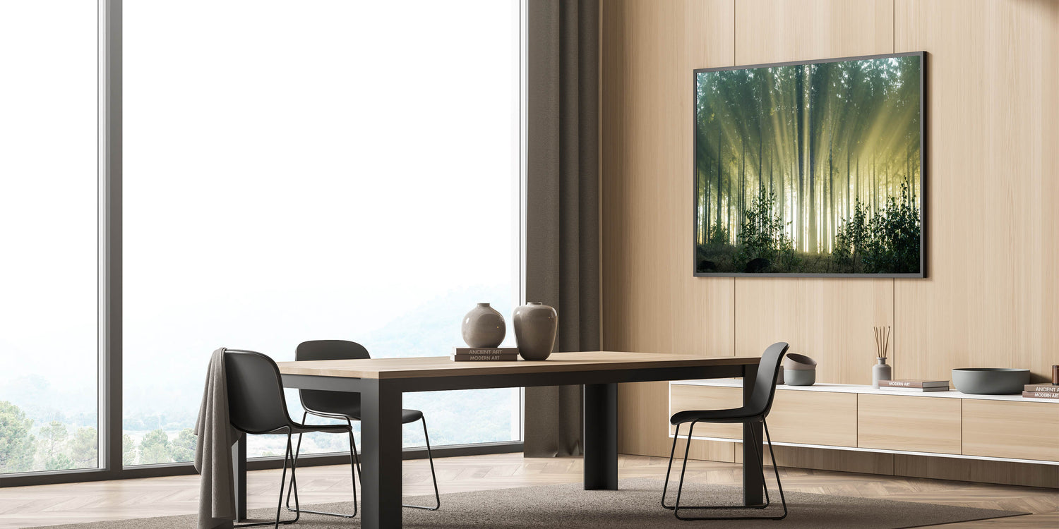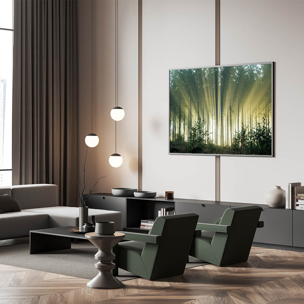 - Design: High-resolution print that beautifully captures the interplay of light and shadow, with intricate details of the trees and foliage creating a realistic and immersive scene.