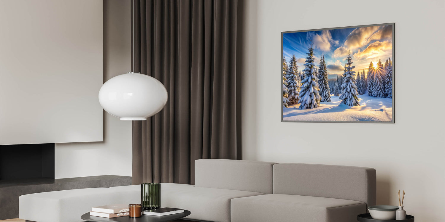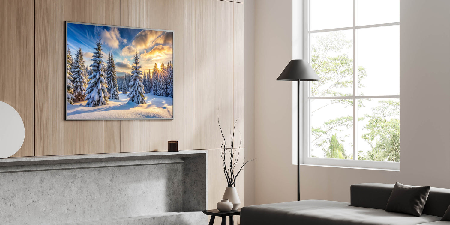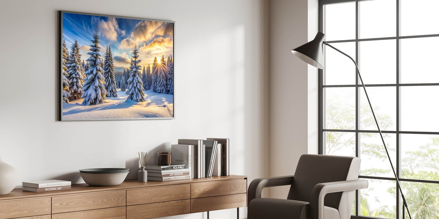 Sunrise Winter Pines Wall Art - Serene Snowy Landscape Canvas Prints