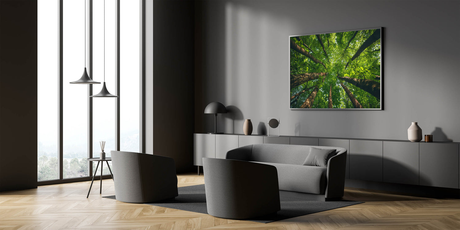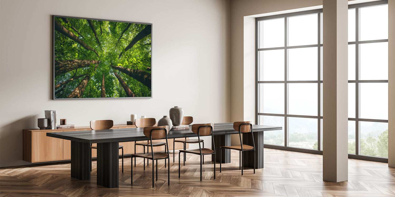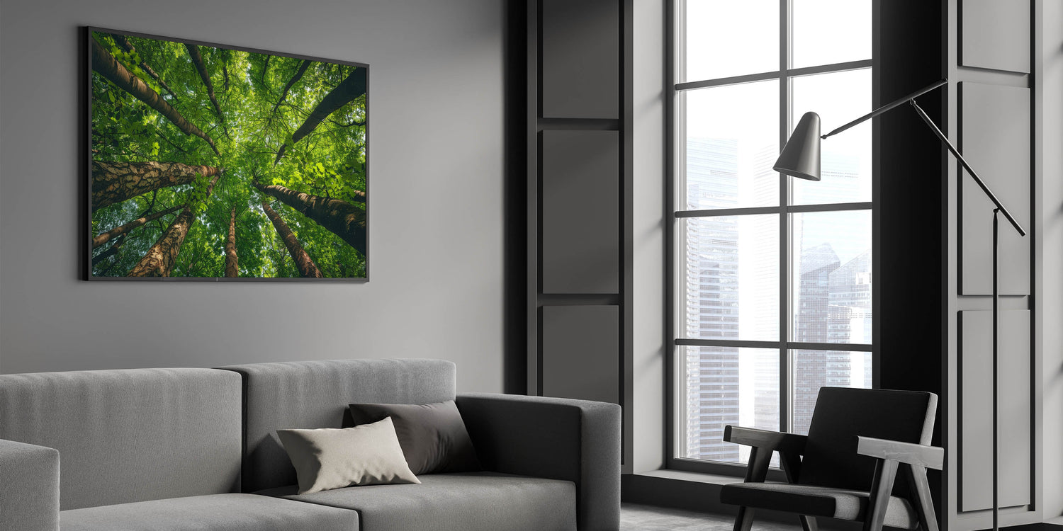 - Design: High-resolution print that beautifully captures the detailed textures of the tree trunks and the vibrant greens of the leaves, offering a refreshing perspective of nature.