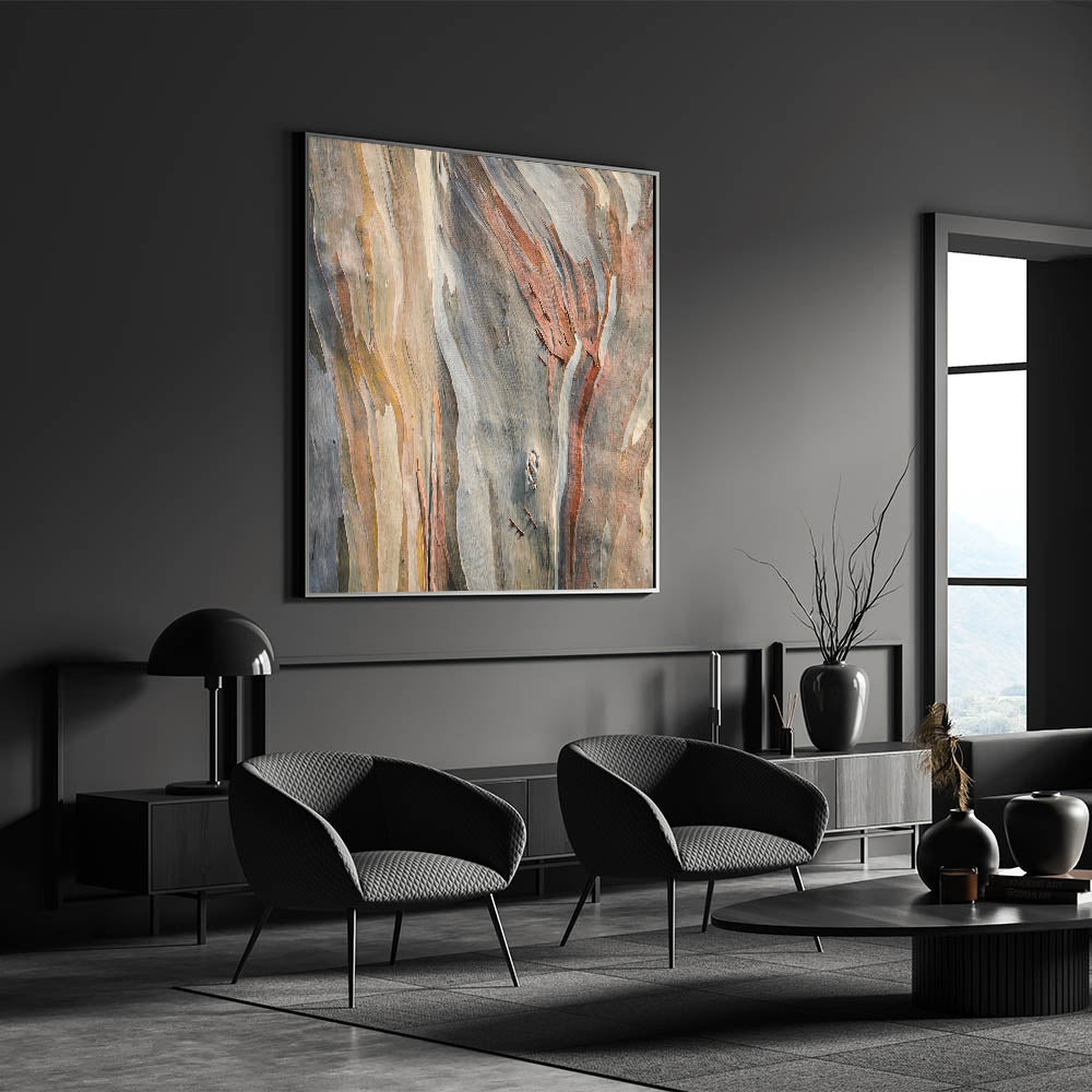 This tree bark artwork blends the organic beauty of nature with an abstract aesthetic, making it the perfect choice for those who appreciate both modern art and natural forms. Its soft color palette and flowing patterns will add a serene and sophisticated touch to any room.