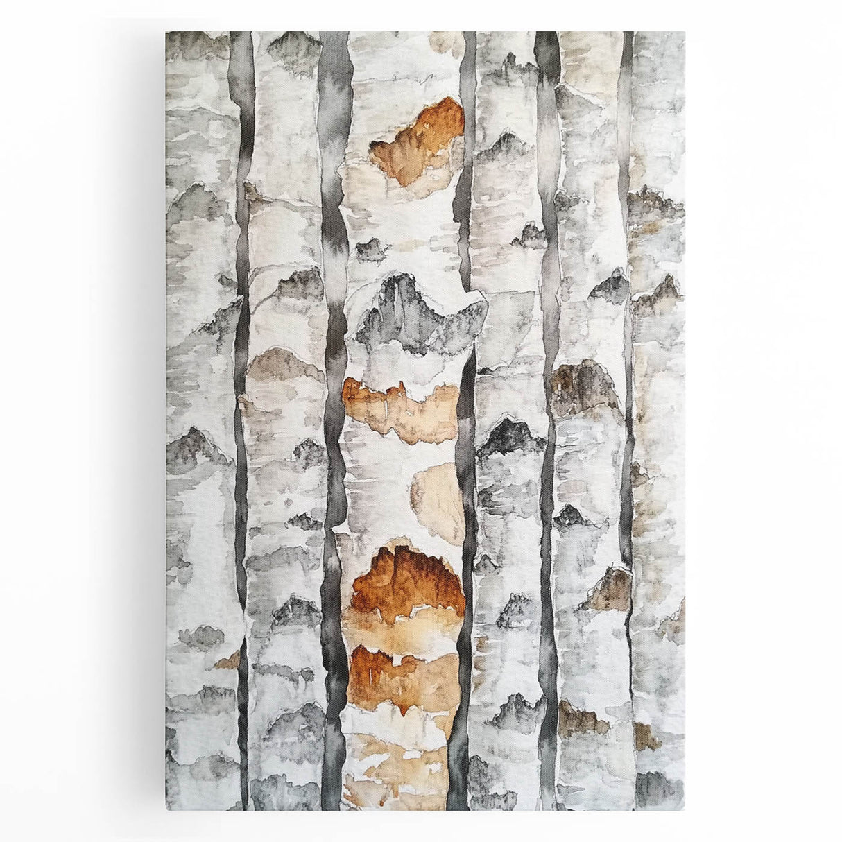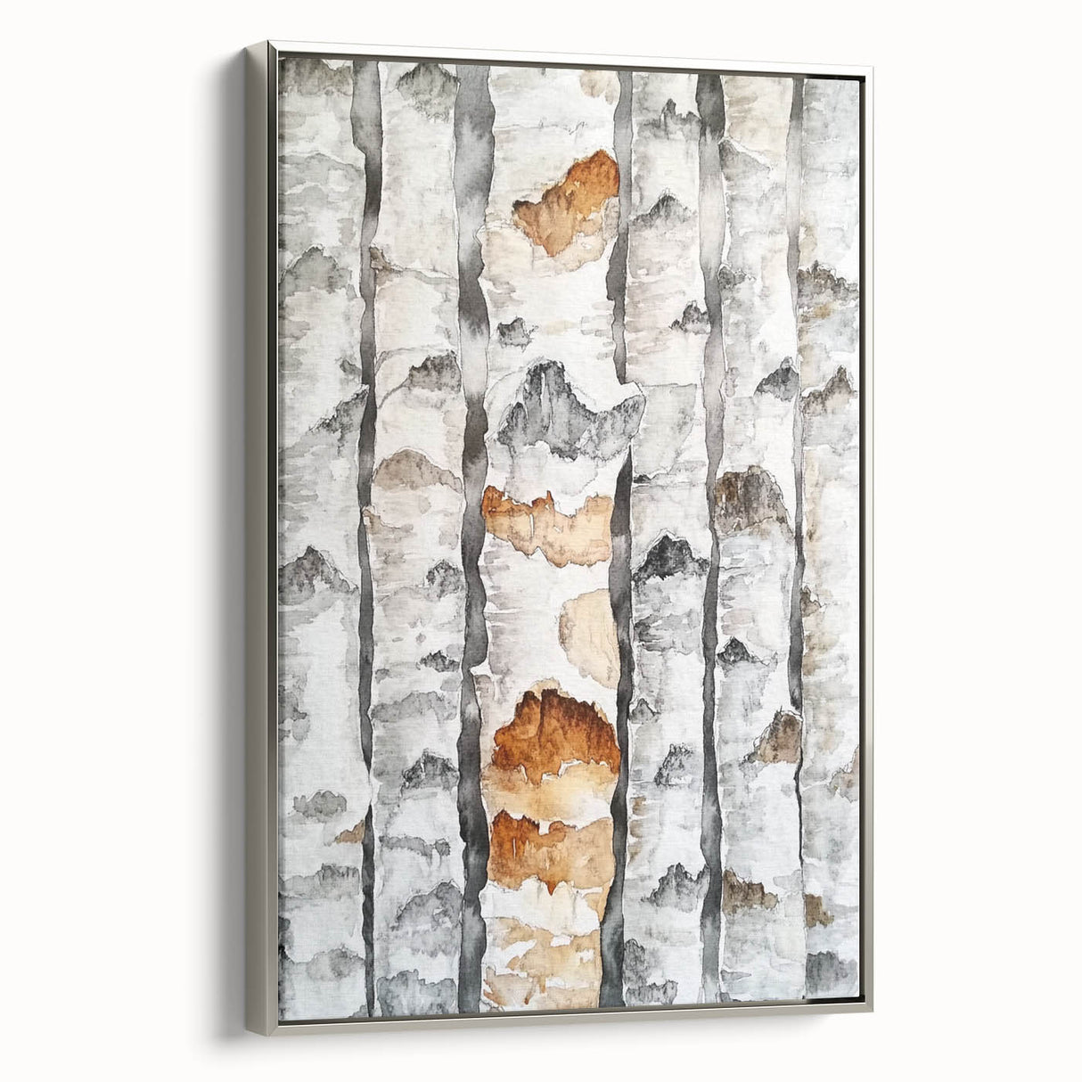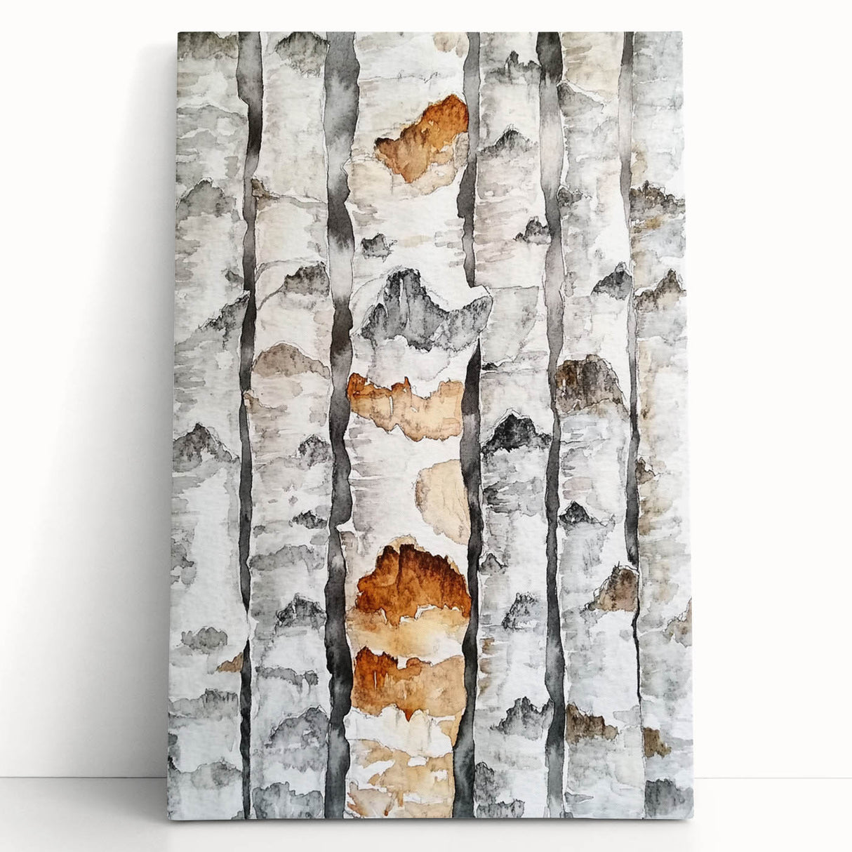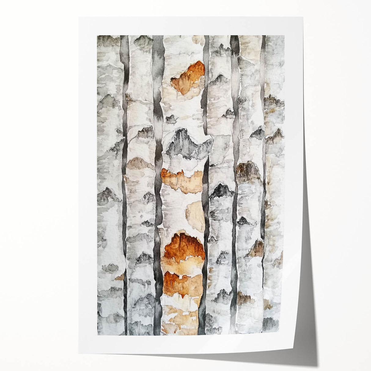Bring nature's delicate beauty into your home with this stunning Tree Art Print, featuring an intricate watercolor painting of birch trees. The textured bark, soft gray tones, and warm earthy browns create a serene and organic composition, making this Nature-Inspired Wall Art a perfect addition to any modern, rustic, or Scandinavian-style interior.