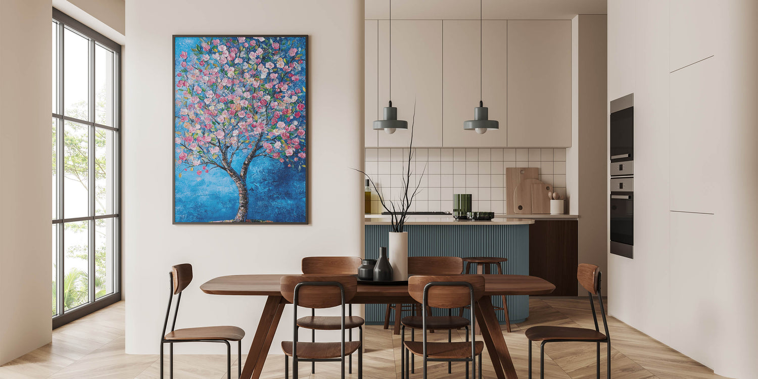 This botanical wall art embodies serenity, growth, and natural beauty, making it the ideal landscape art print for anyone who loves floral elegance. Add a touch of spring to your home with this enchanting tree canvas art.