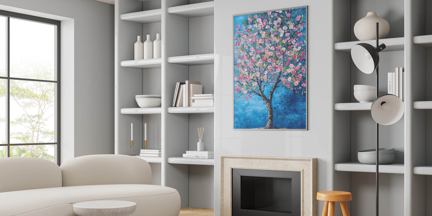- High-quality tree art prints for sale, available in stretched canvas, framed canvas, acrylic glass, and rolled prints.