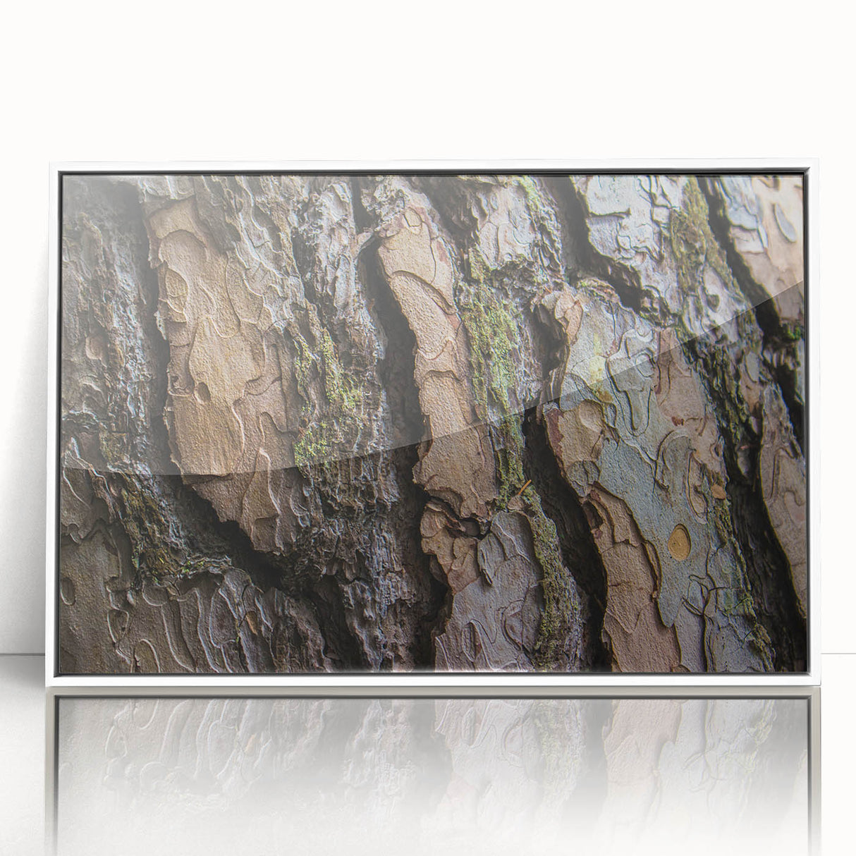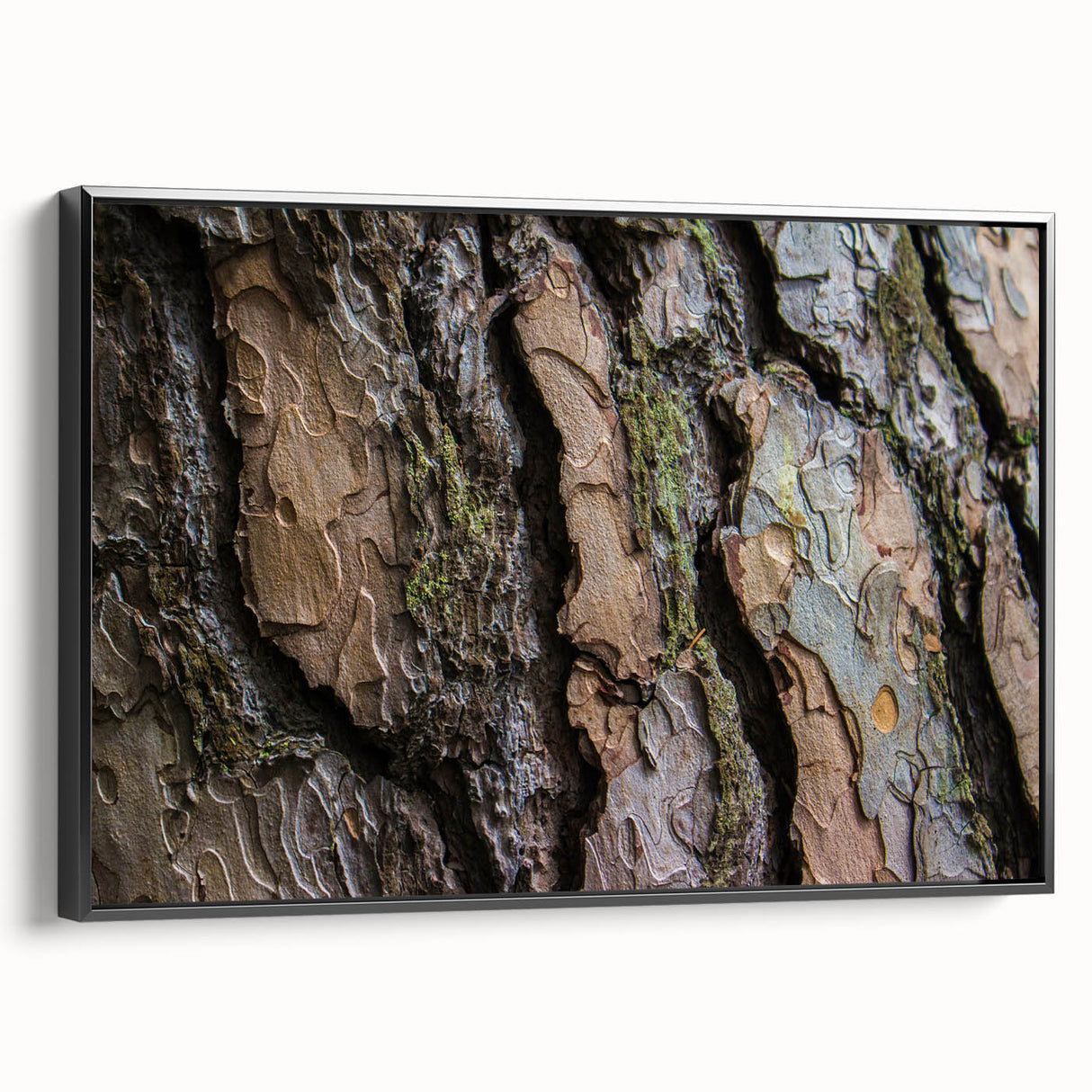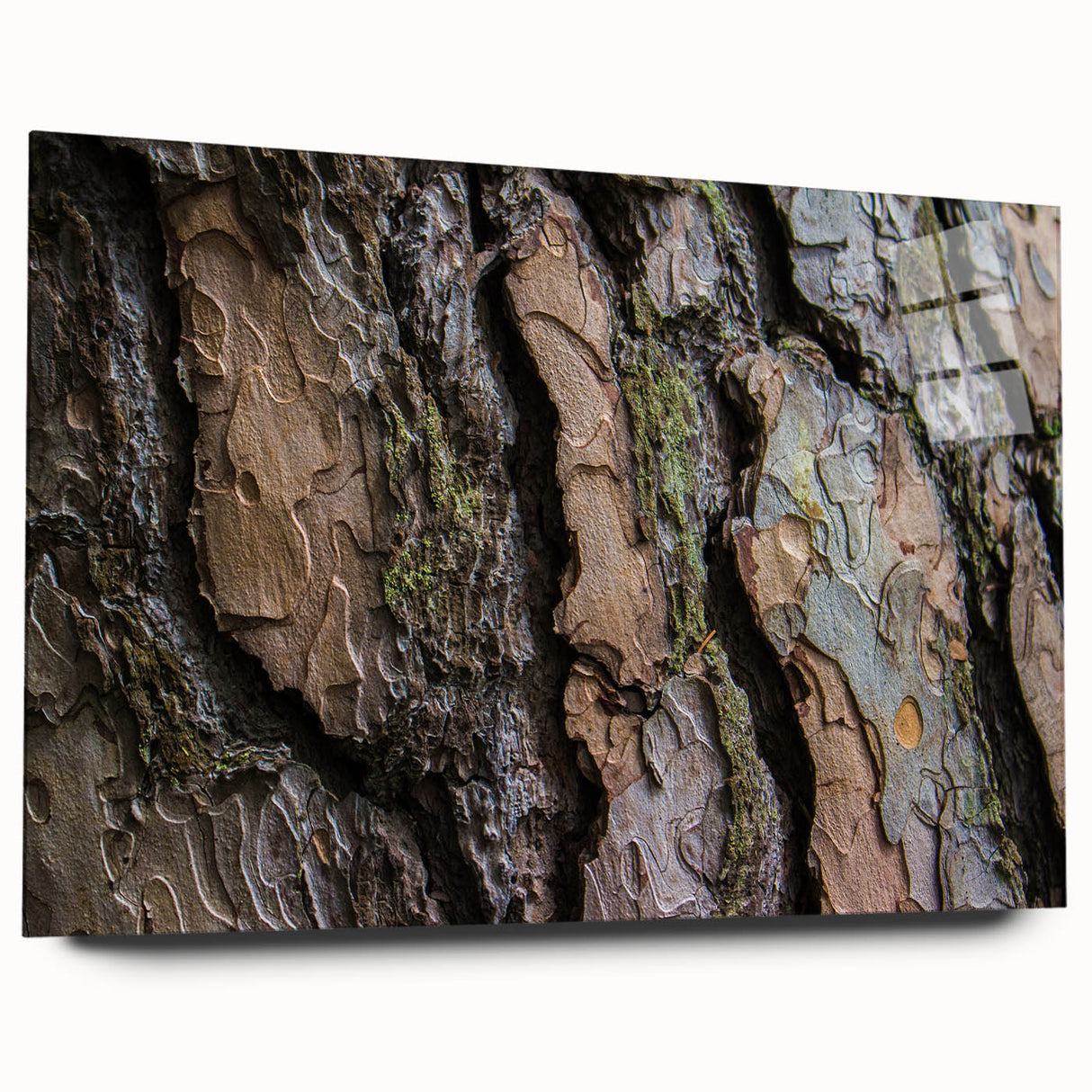 This tree bark close-up offers a striking visual experience, blending the beauty of nature with a contemporary design. Whether you’re looking to create a feature wall or add a subtle touch of nature to your home, this artwork will enhance the overall ambiance of any room with its earthy tones and textures.