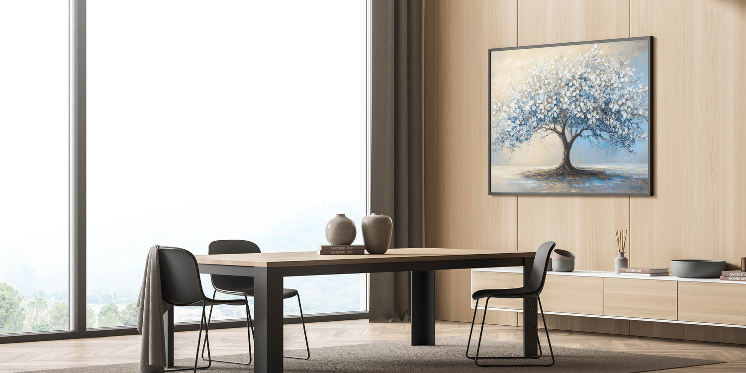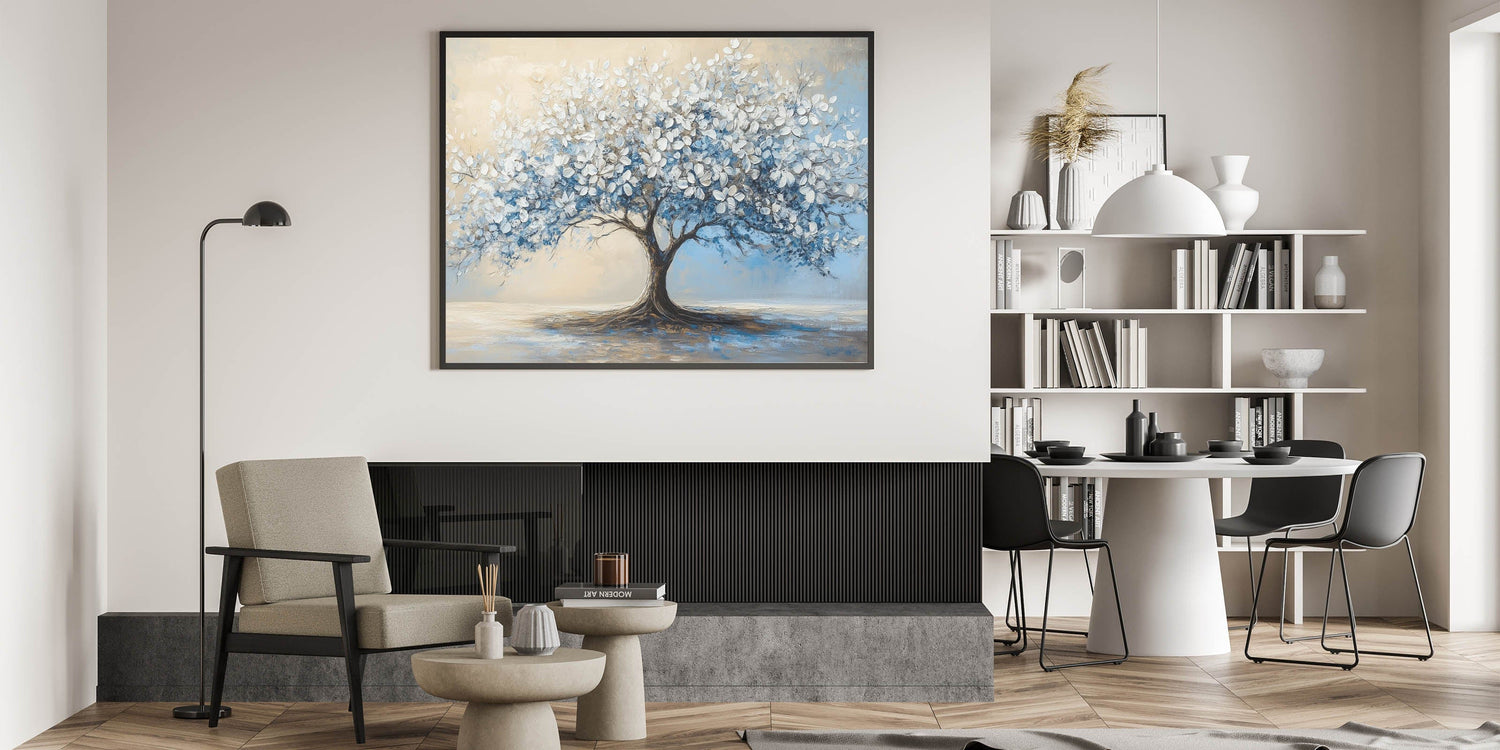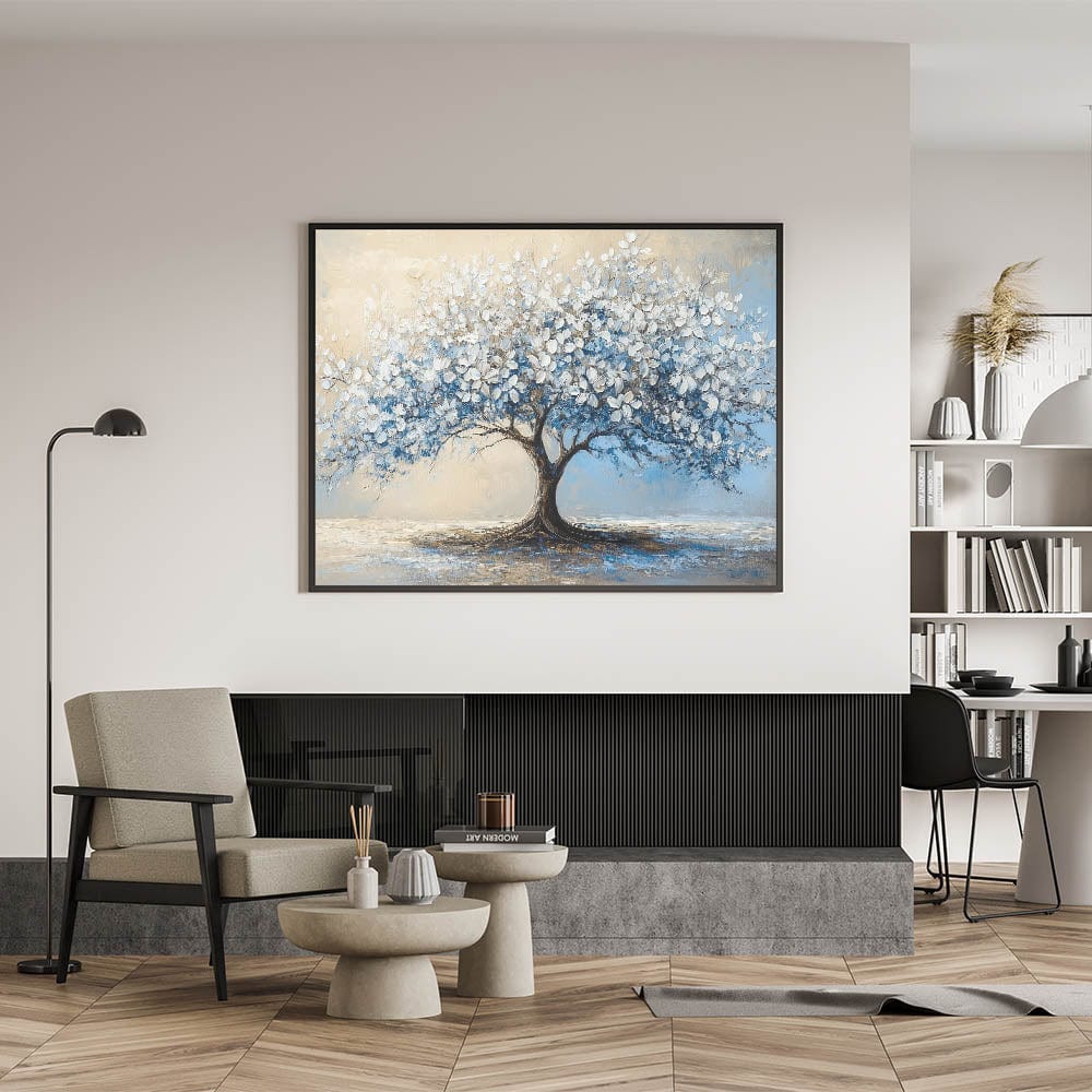 Transform your space with this breathtaking tree art print, a perfect blend of elegance and tranquility. Featuring a beautifully detailed tree with soft blue, white, and beige tones, this landscape art print brings a serene ambiance to any room. Whether you love nature-inspired wall art or seek a timeless forest art print, this piece is ideal for your home or office.