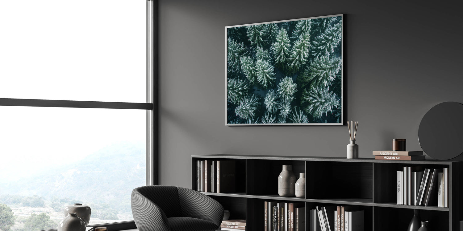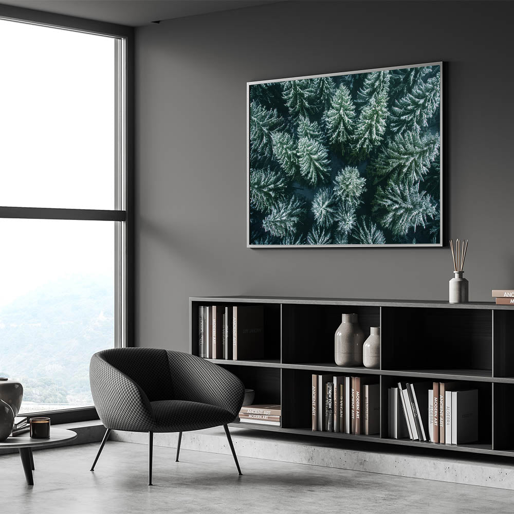 Frosted Evergreen Tree Wall Art - Aerial Winter Landscape Prints