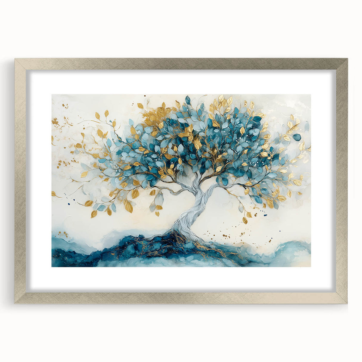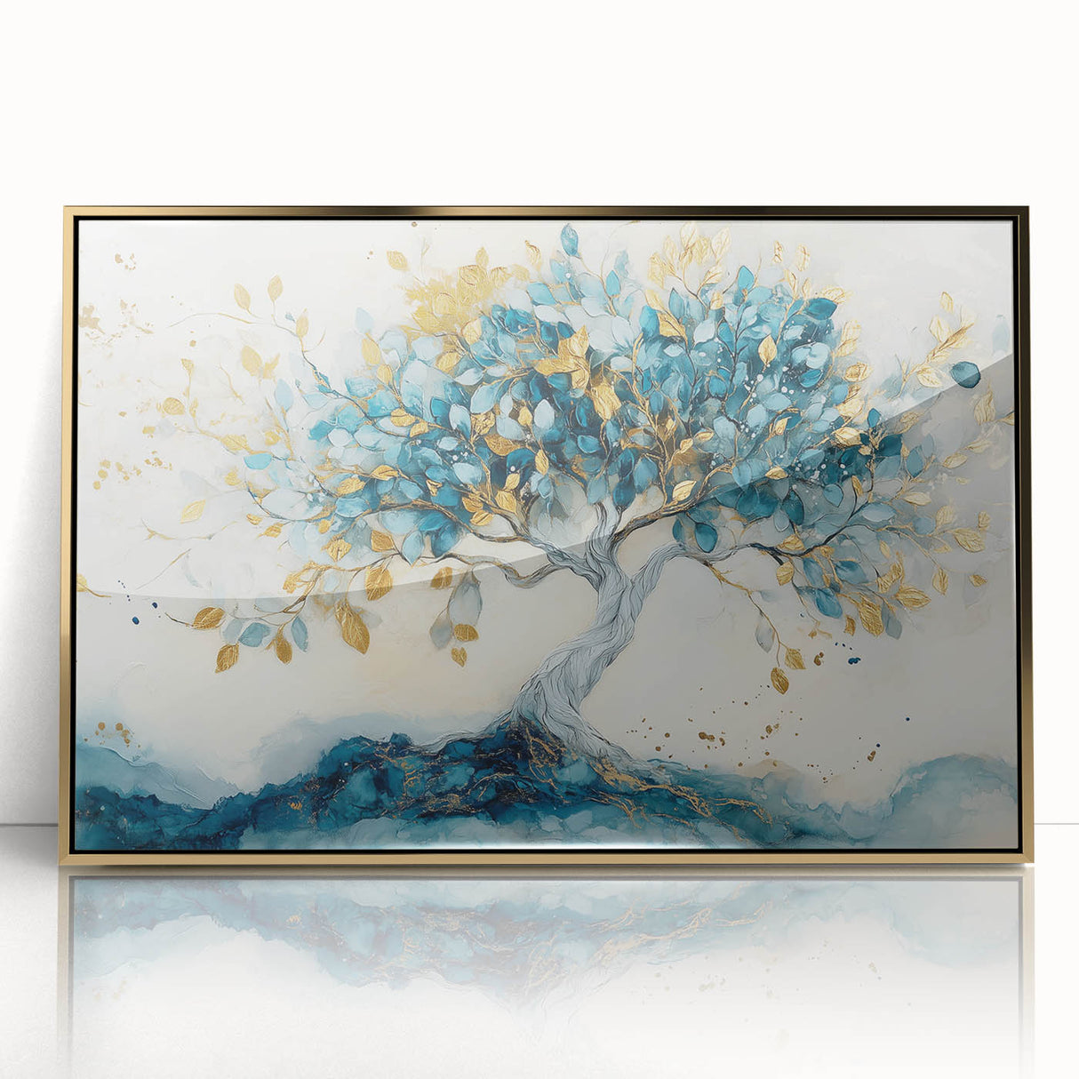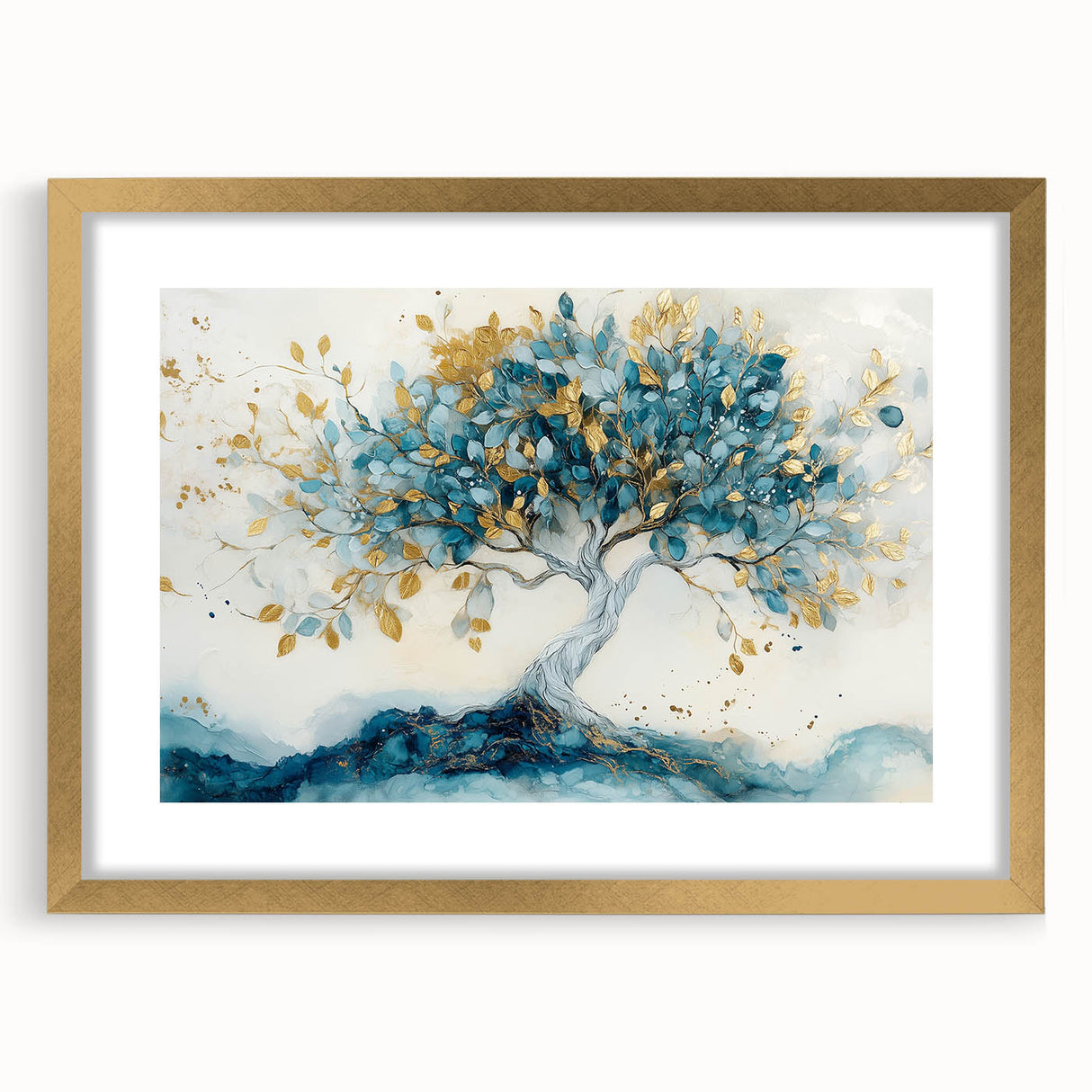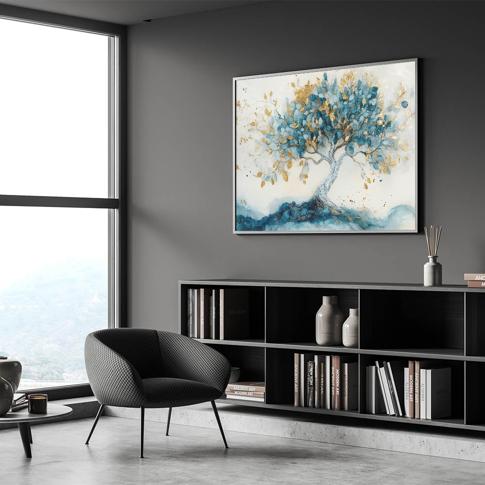 Golden Teal Tree – Elegant Abstract Tree Art Prints & Wall Decor
