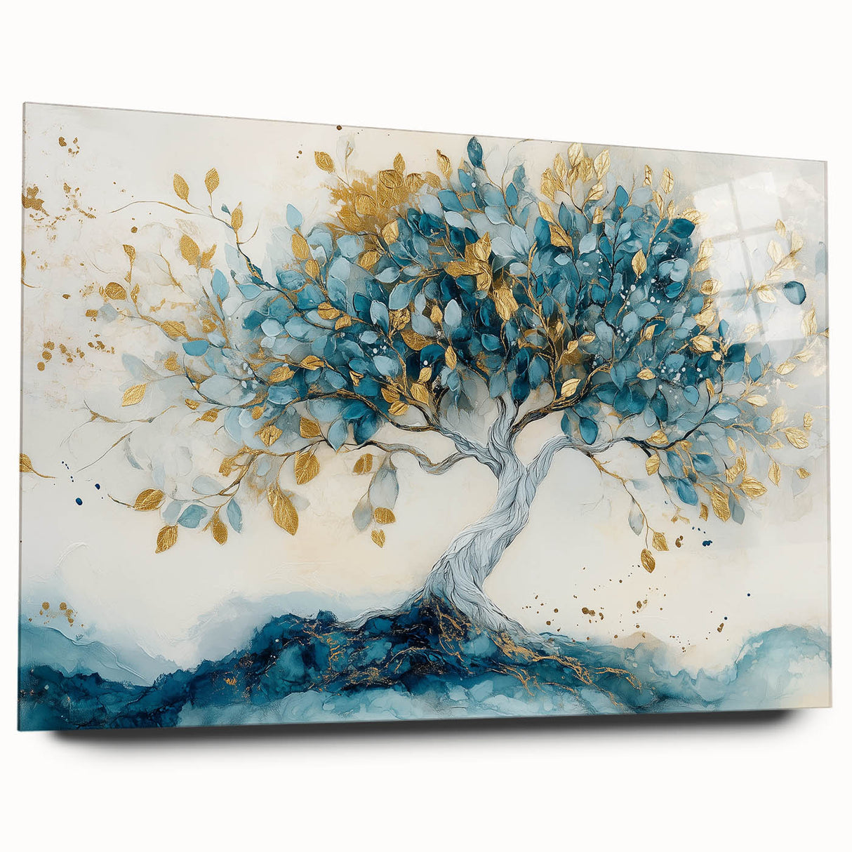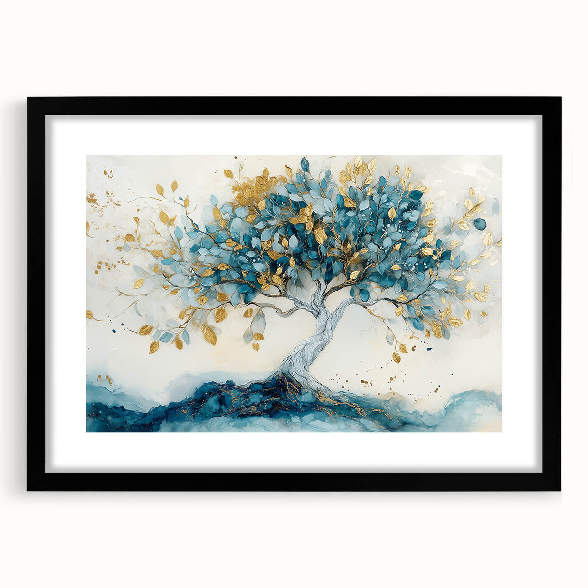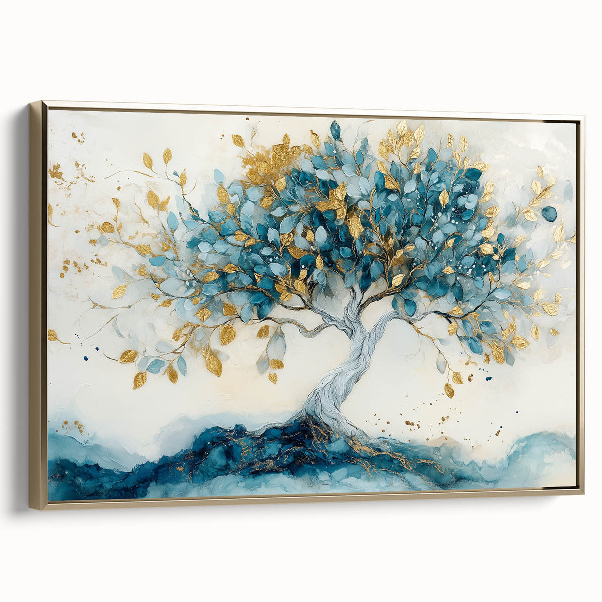 Golden Teal Tree – Elegant Abstract Tree Art Prints & Wall Decor