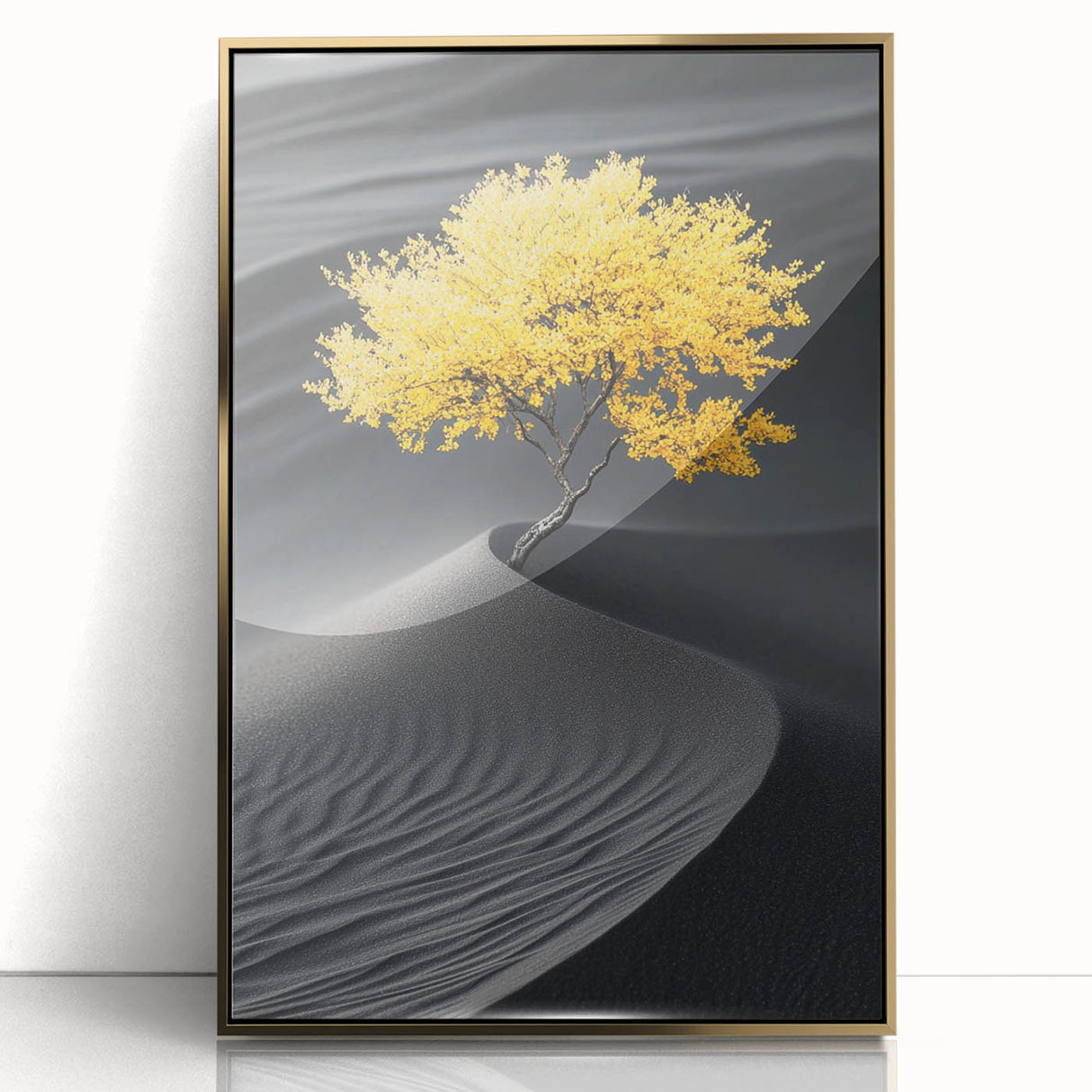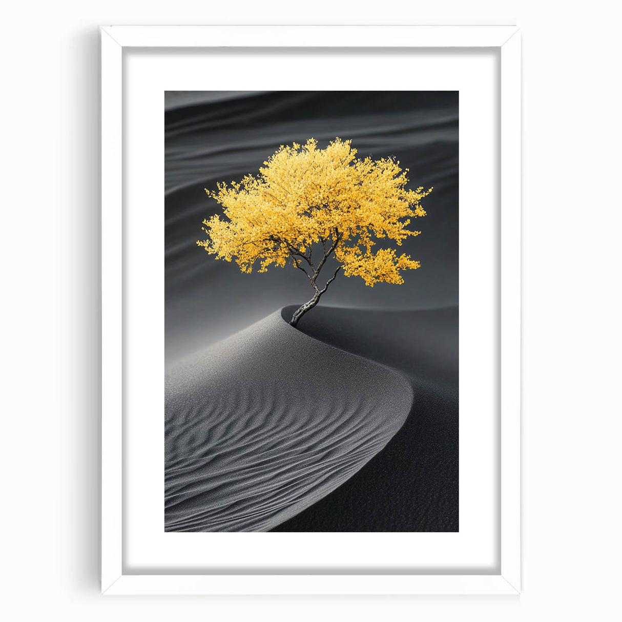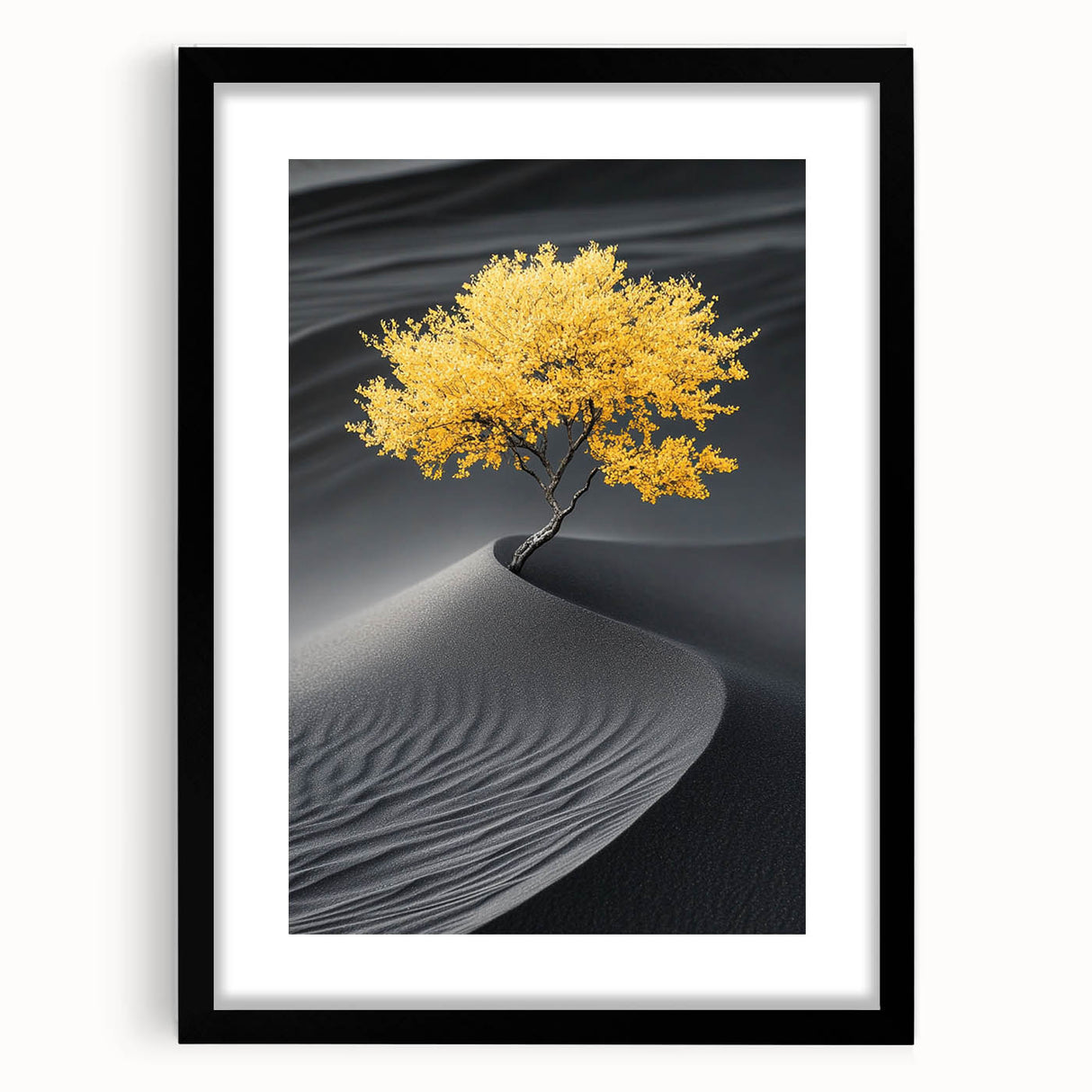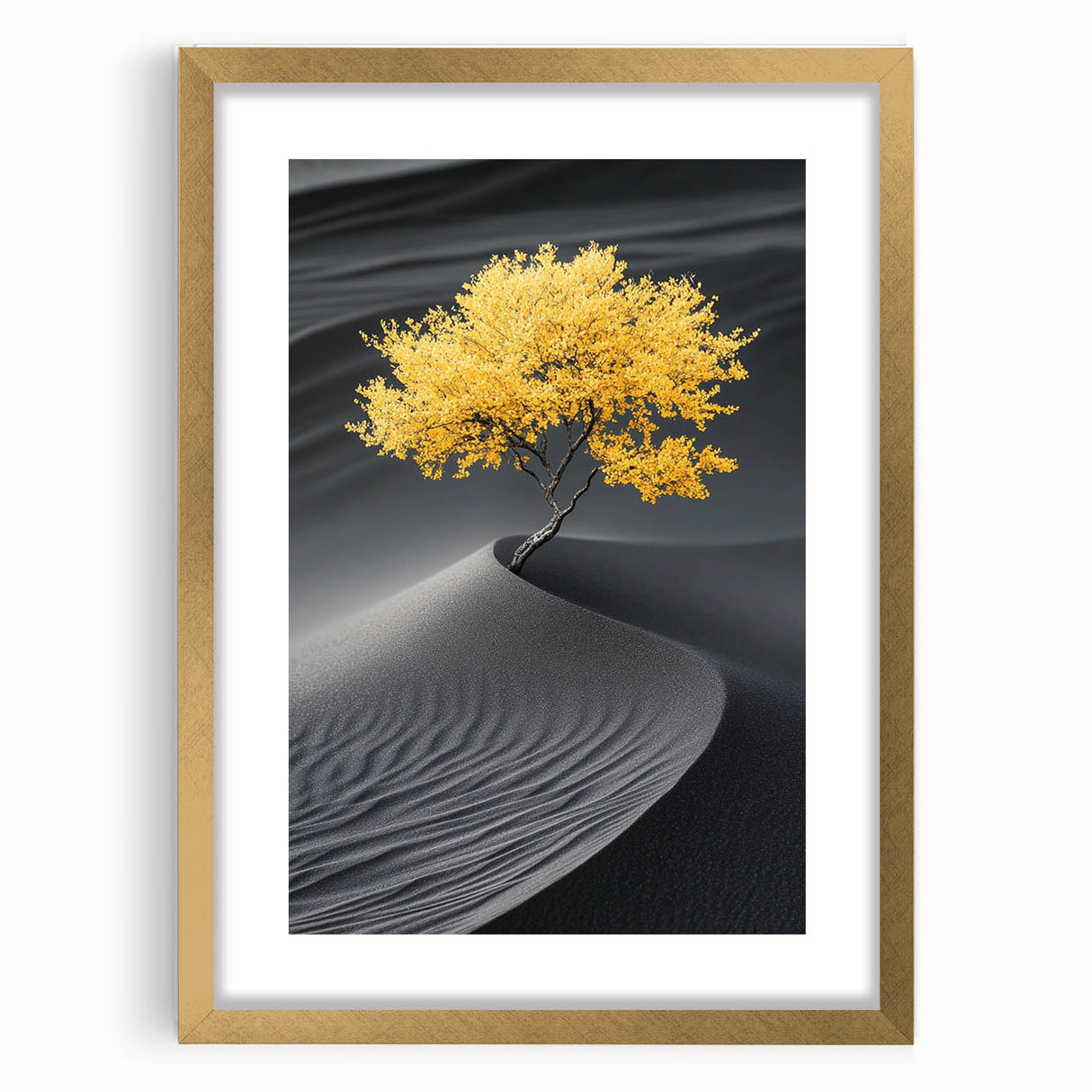 Golden Tree in Black Desert – Tree Art Prints & Nature Wall Art