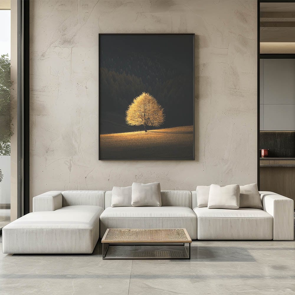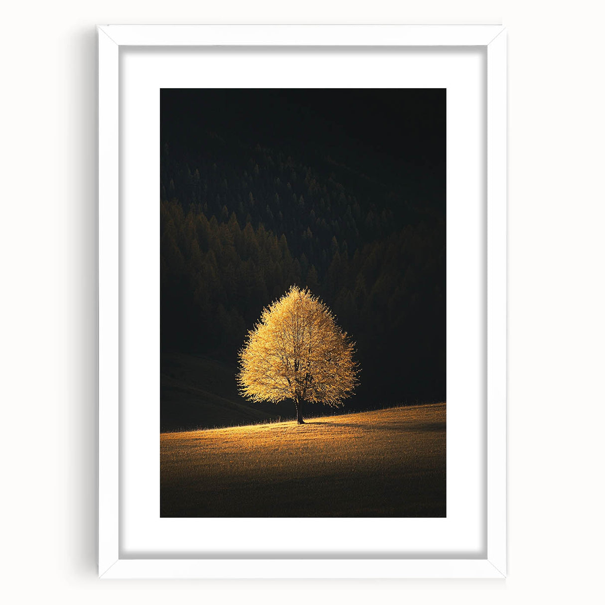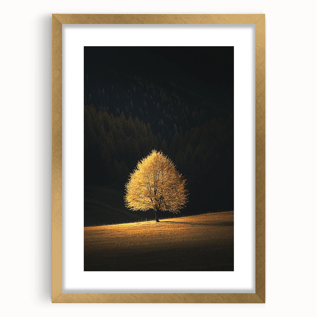 Golden Tree in Spotlight – Majestic Nature Art Print