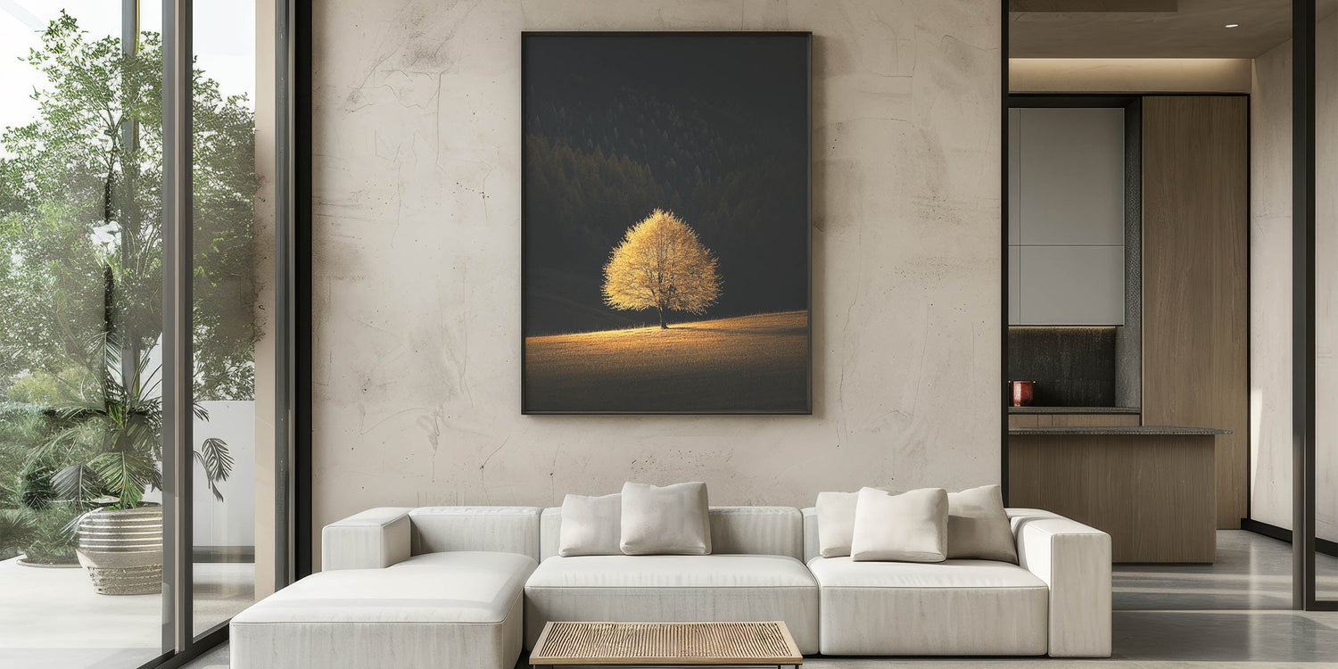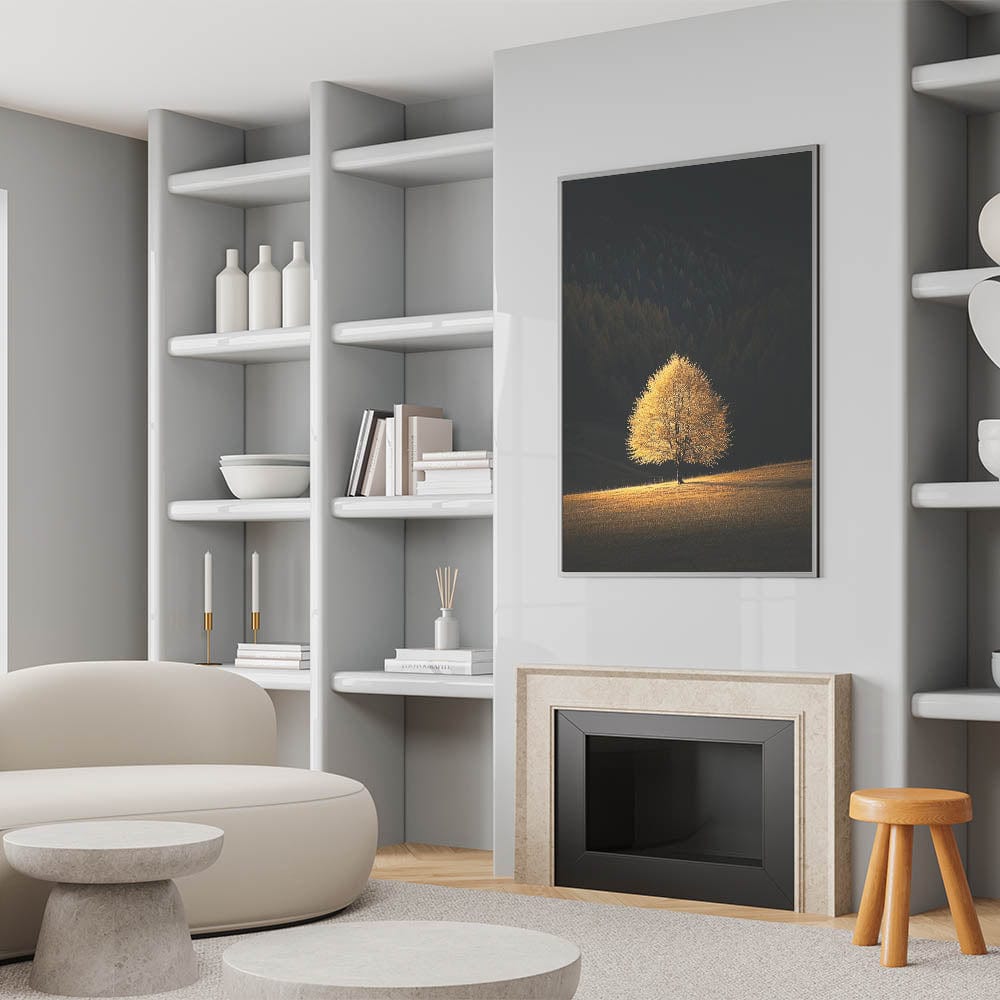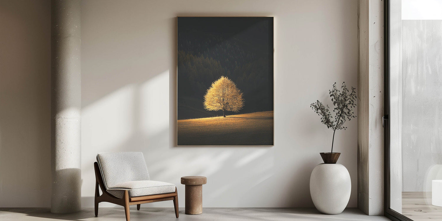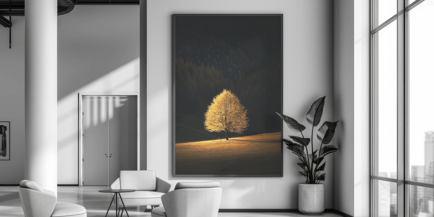 Golden Tree in Spotlight – Majestic Nature Art Print