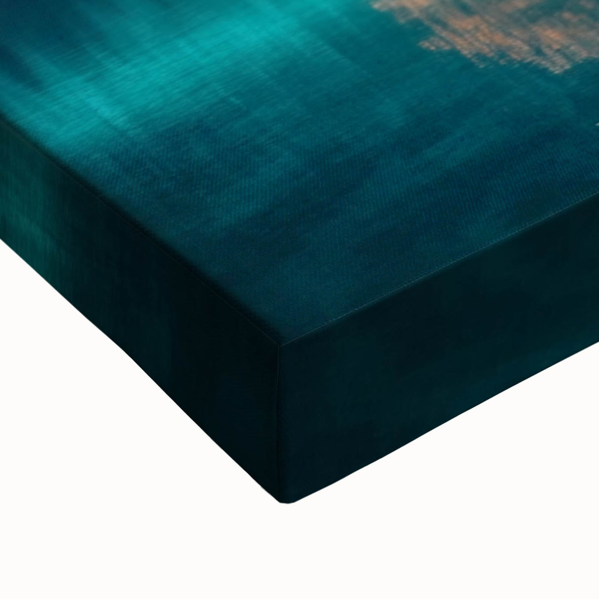 - Rich, golden hues contrast beautifully with deep teal and blue water, adding depth and emotion.
