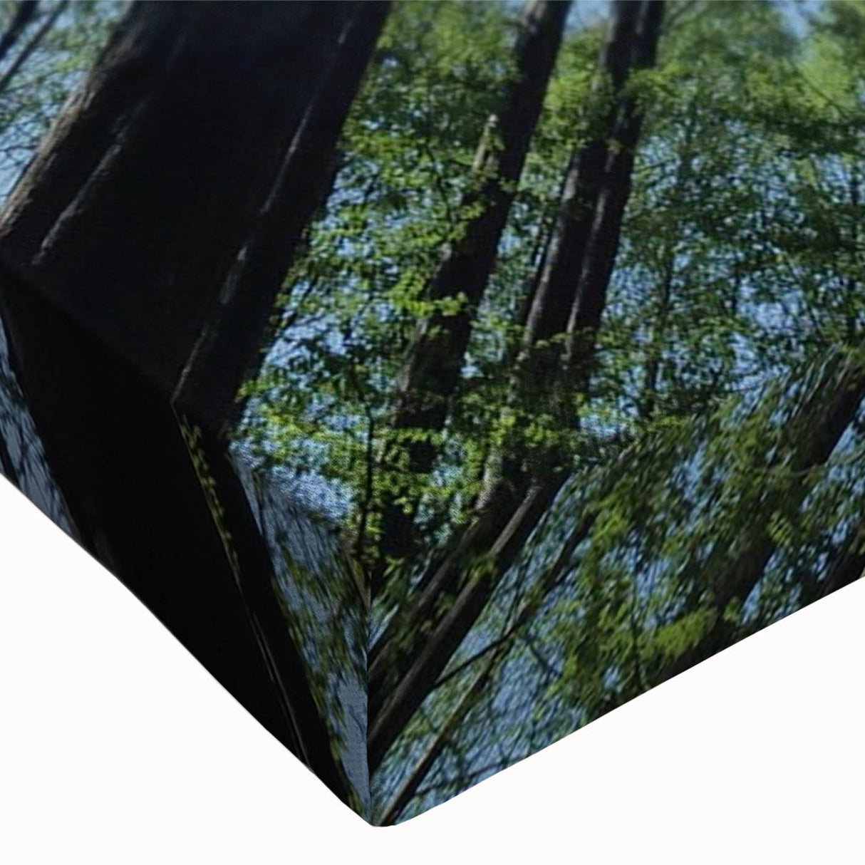 Elevate your home decor with this stunning Majestic Skyward Trees wall art, perfect for nature lovers. This unique tree wall art captures a towering perspective of tall, majestic trees reaching for the sky. The soothing blend of green foliage against a blue sky creates an atmosphere of calm and serenity, making it a perfect fit for any living room, office, or bedroom.