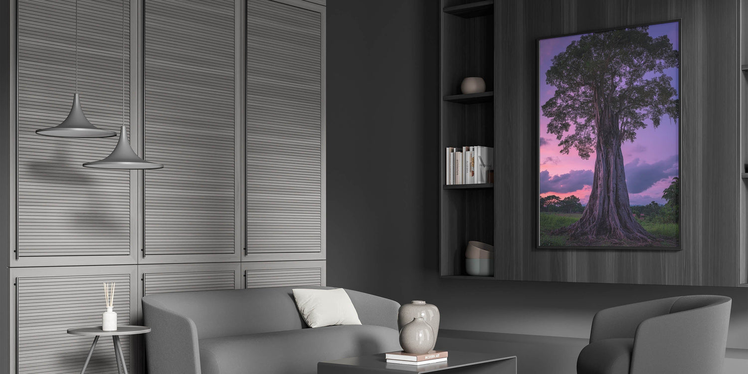 - High-quality tree art print available in stretched canvas, framed canvas, acrylic glass, and framed acrylic glass