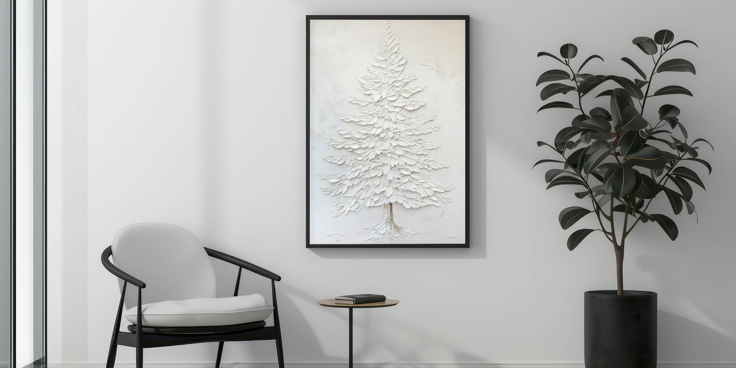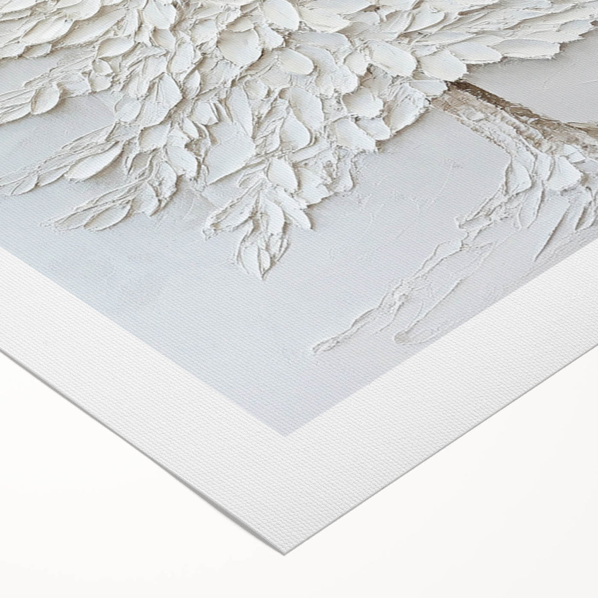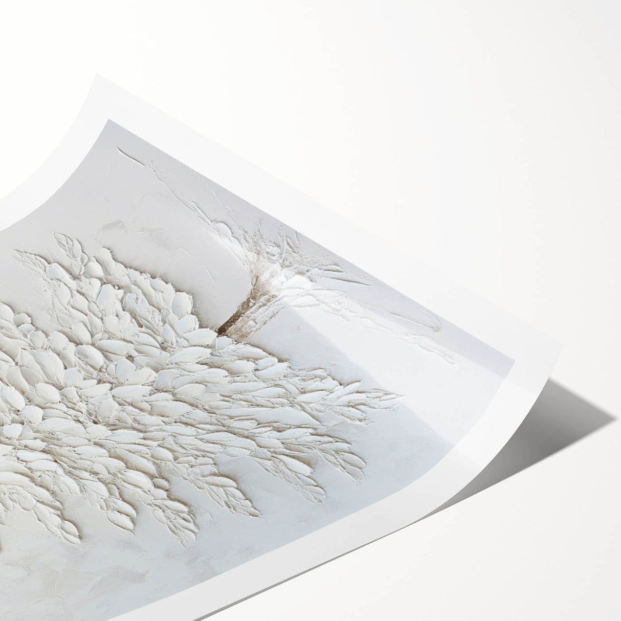 Add elegance and texture to your space with this tree art print, featuring a sculpted white tree on a neutral background. The delicate, three-dimensional leaf design brings depth and sophistication, making this landscape art print a perfect addition to modern, minimalist, or Scandinavian-inspired interiors. This nature-inspired wall art exudes simplicity and grace, making it an eye-catching yet subtle statement piece.