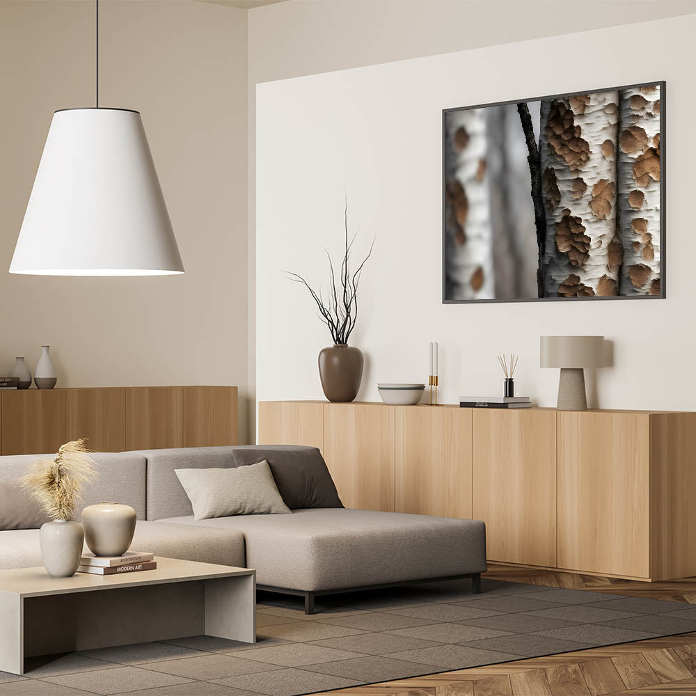 This minimalist birch tree wall art captures the elegance of nature with its striking close-up of peeling bark. The soft white tones of the birch bark, contrasted by the warm browns of the peeling layers, create a visually captivating yet calming piece. Ideal for modern, nature-inspired home decor, this artwork brings the simplicity and beauty of the natural world into your living space.