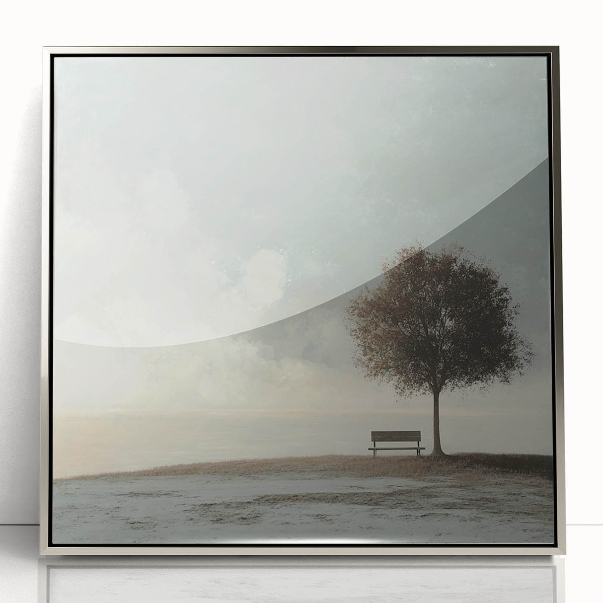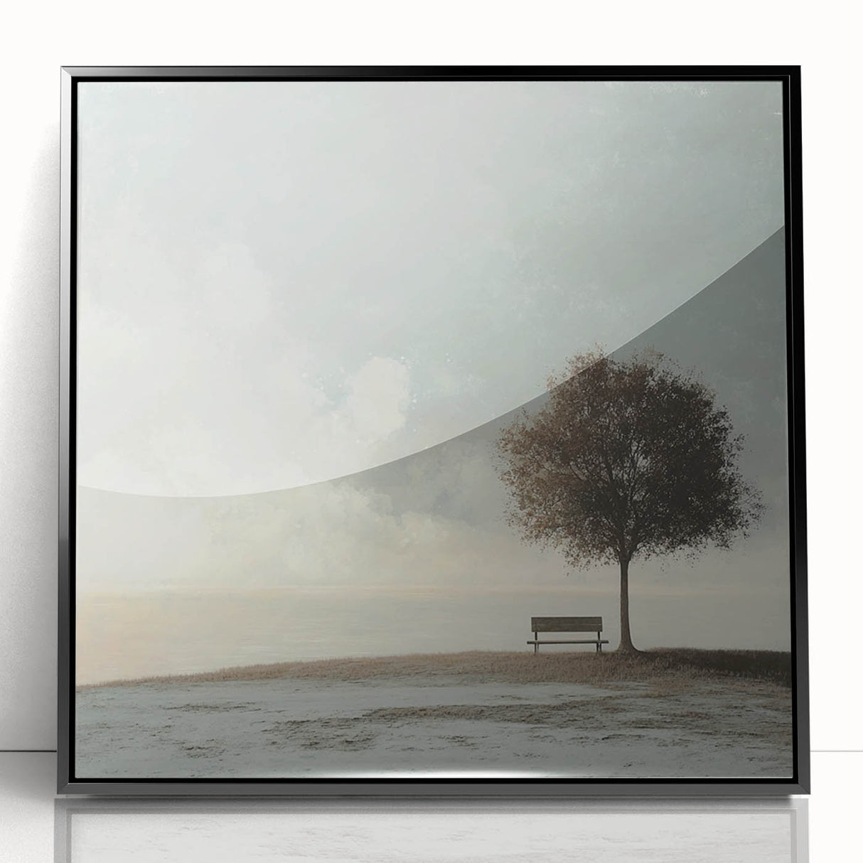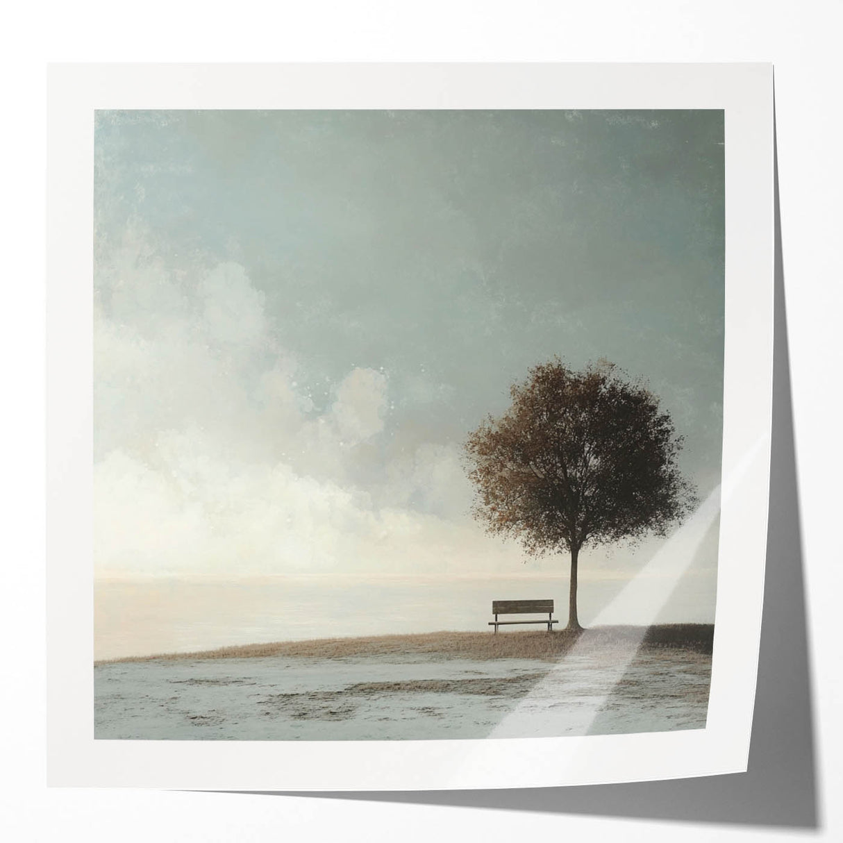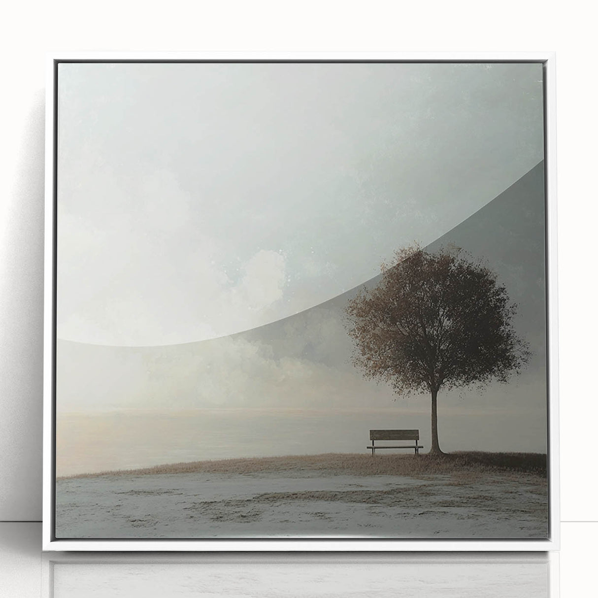 Create a peaceful atmosphere in your space with this Tree Art Print, featuring a lone tree standing beside a quiet bench, overlooking a misty body of water. The soft, muted color palette and delicate textures evoke a sense of solitude and reflection, making this Nature-Inspired Wall Art perfect for contemporary, minimalist, or rustic interiors. The subtle interplay of light and shadows enhances the dreamlike ambiance, offering a moment of tranquility in any room.