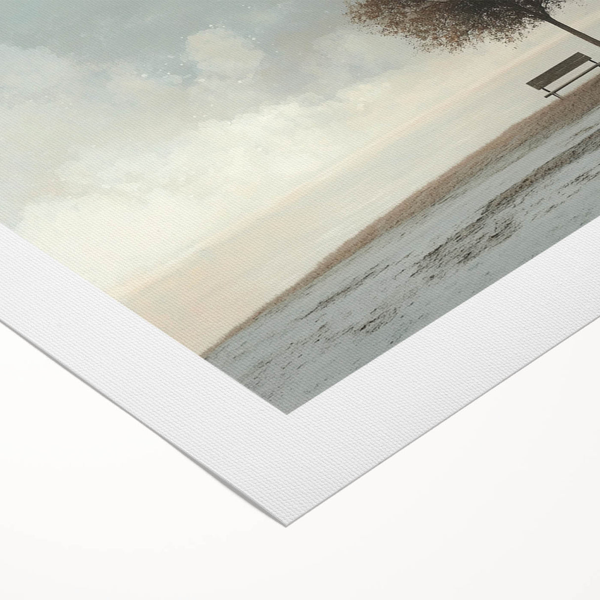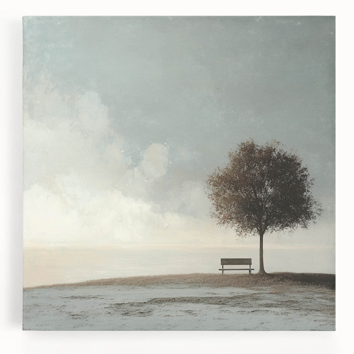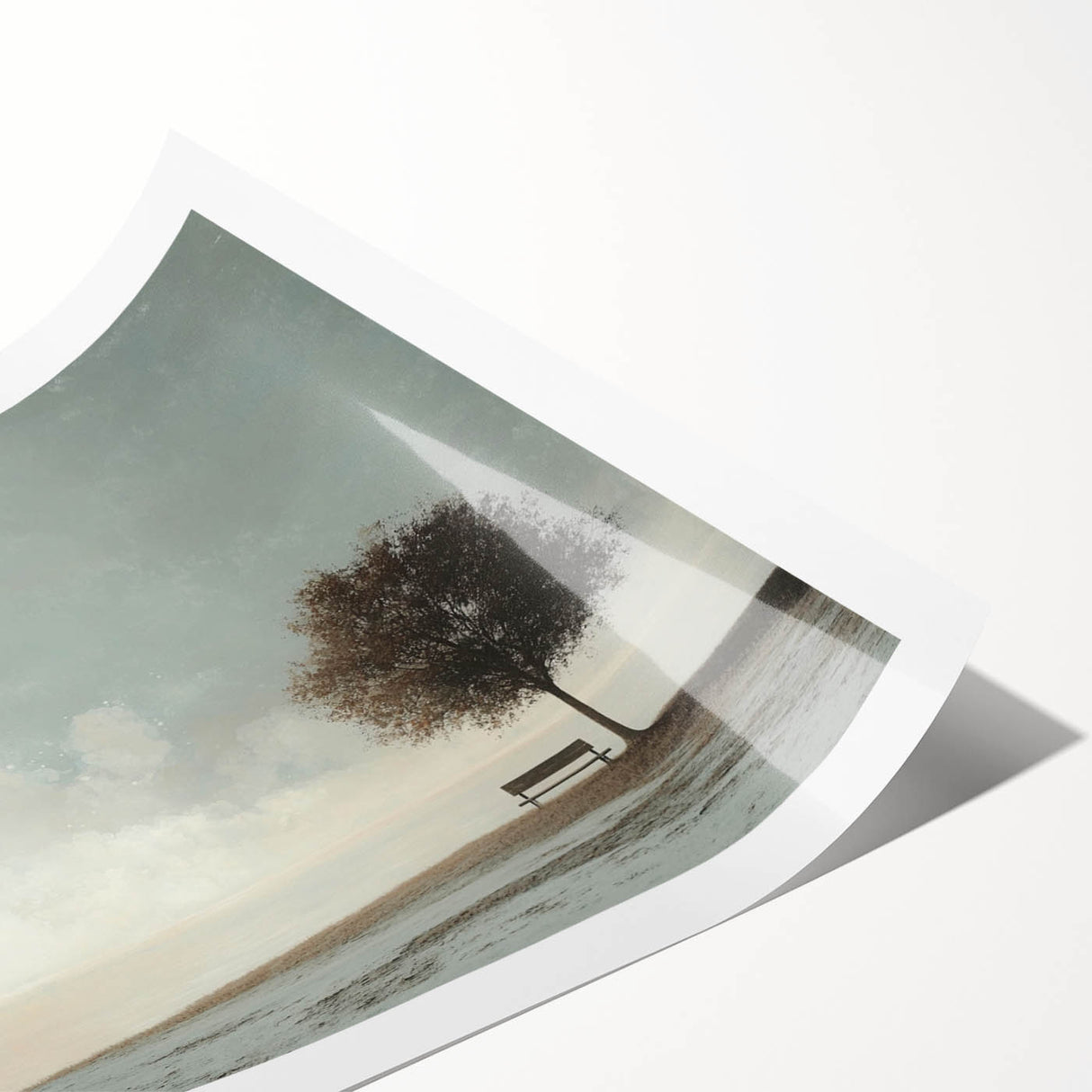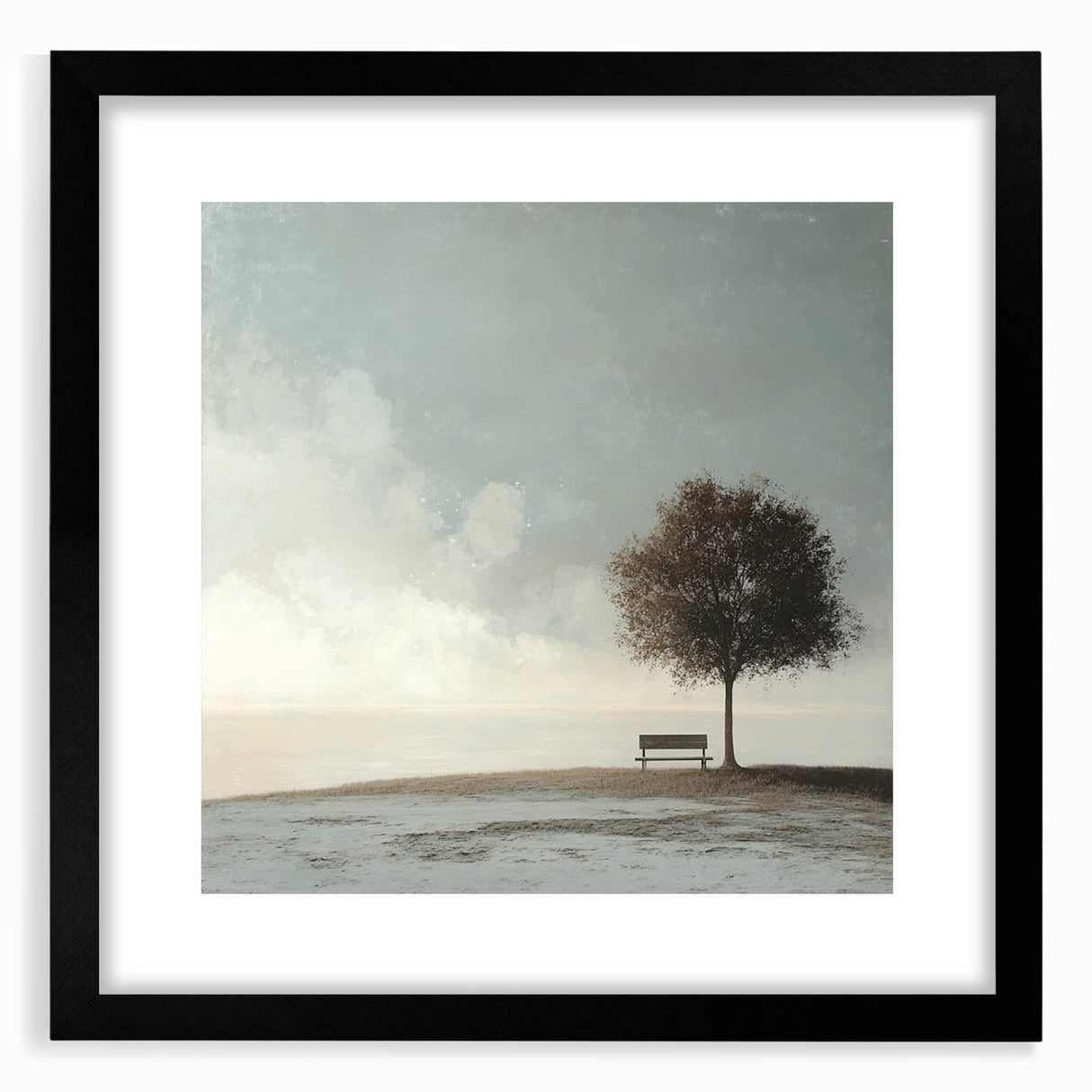 Create a peaceful atmosphere in your space with this Tree Art Print, featuring a lone tree standing beside a quiet bench, overlooking a misty body of water. The soft, muted color palette and delicate textures evoke a sense of solitude and reflection, making this Nature-Inspired Wall Art perfect for contemporary, minimalist, or rustic interiors. The subtle interplay of light and shadows enhances the dreamlike ambiance, offering a moment of tranquility in any room.